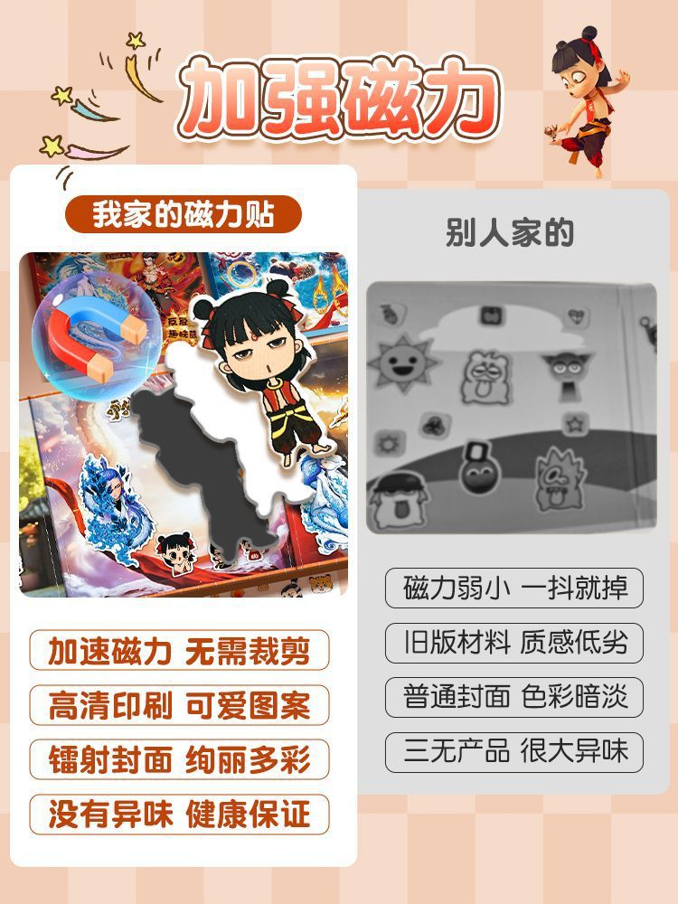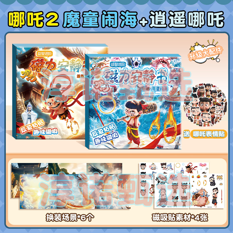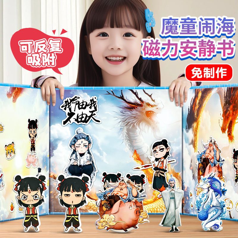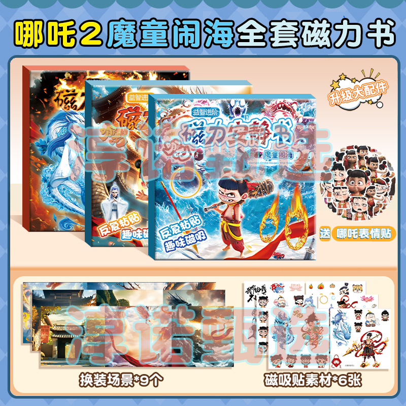 • 인터넷 전체에서 추천 [네자 2: 바다의 악마 소년] 초대형 자석 책 - 자석 버전 [네자 2: 천당관의 불] + 이모티콘 스티커 60개
