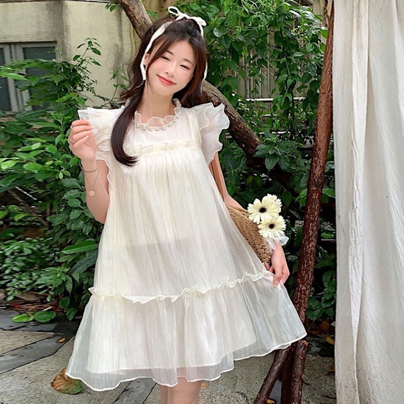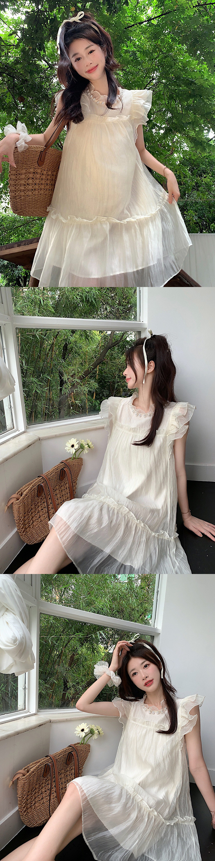 임산부 원피스 패션 슬리밍 연령 감소 경량 통기성 텐셀 달콤한 구슬 작은 신선한 원피스스토어 가기