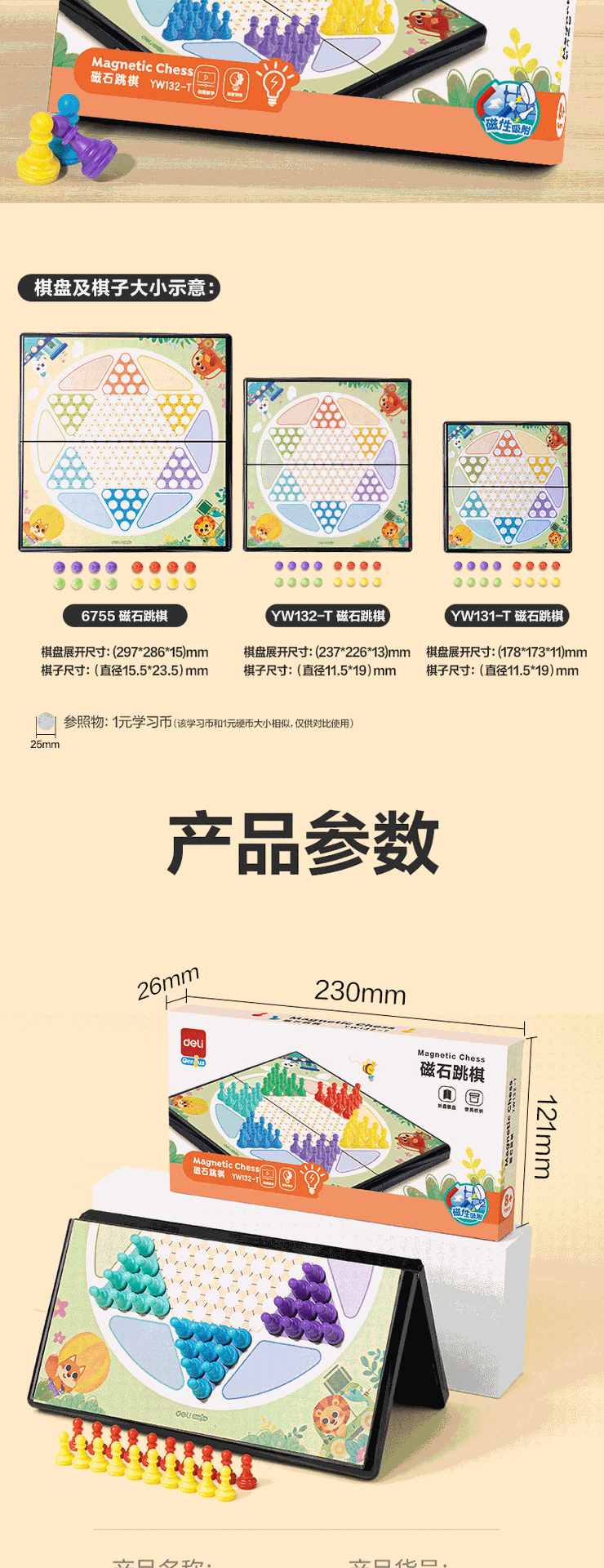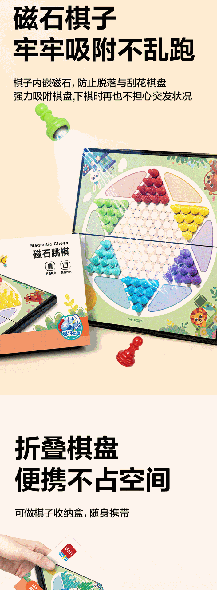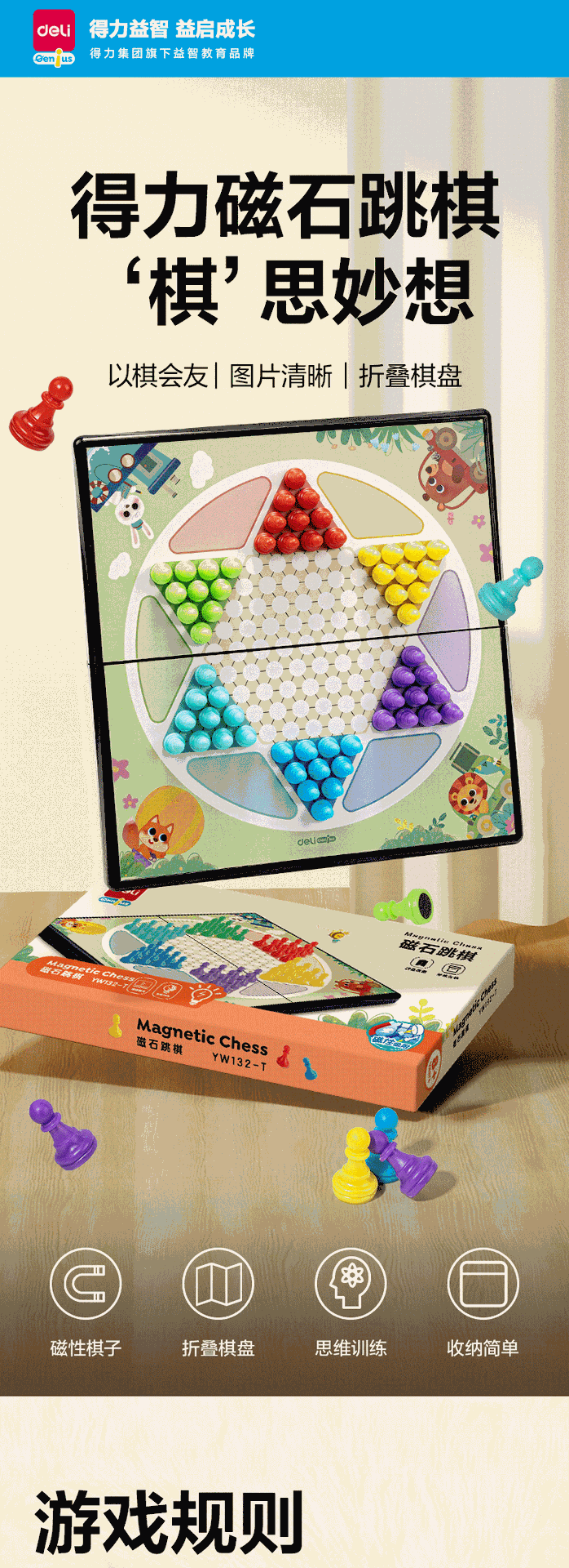 델리 YW132-T 트럼펫 자석 체커 어린이 교육 장난감 접는 체스 판스토어 가기