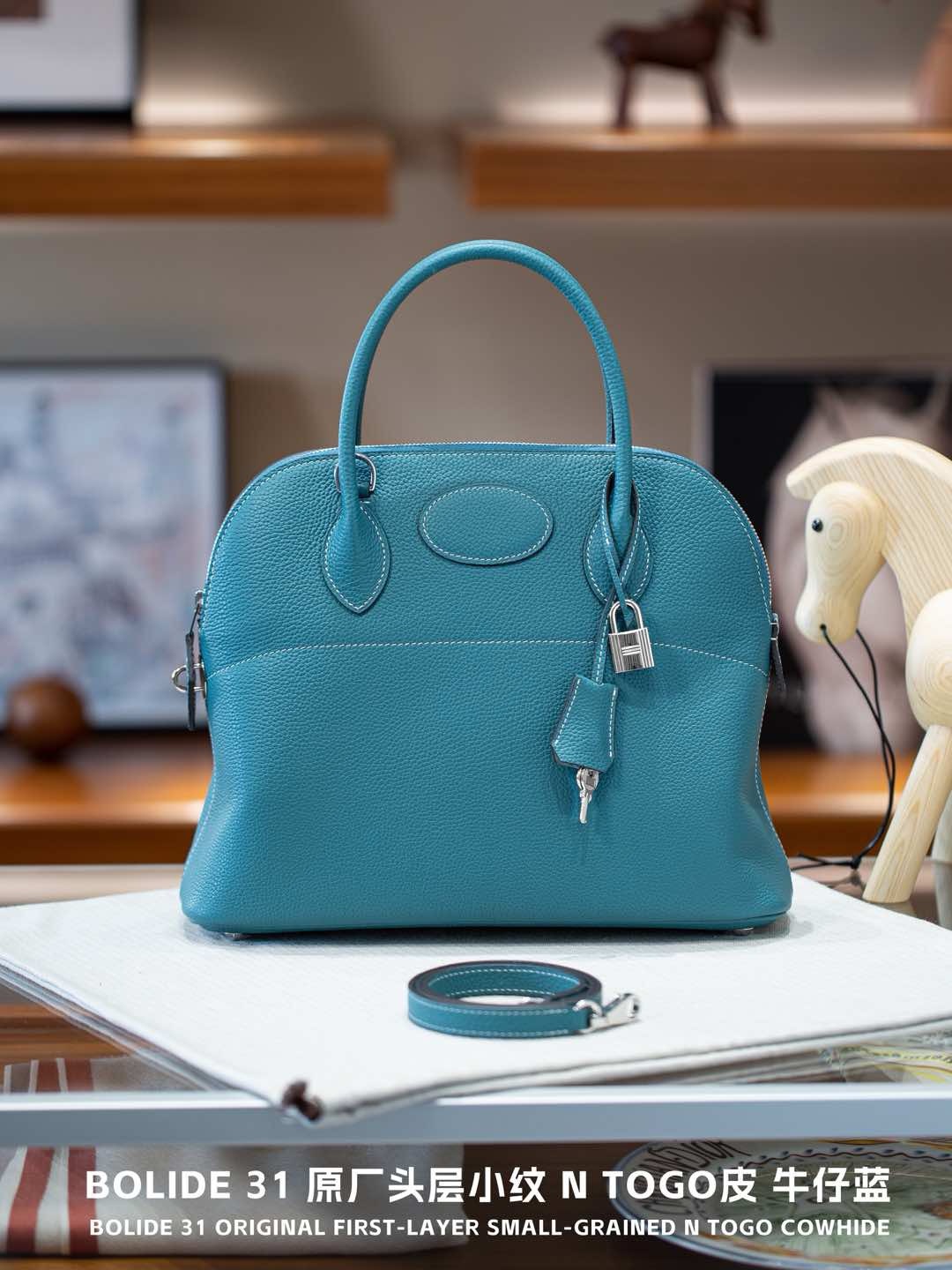 Bolide 정품 가죽 쉘 바오터우 레이어 소 가죽 팜 프린트 볼링 가방 togo 라이트 럭셔리 휴대용 크로스 바디 여성용 가방 new스토어 가기