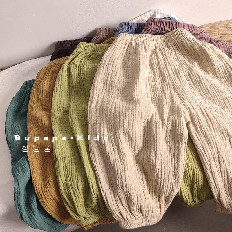어린이 및 아기의 모기 방지 바지 여름 소년과 소녀 아이스 실크 얇은 느슨한 블루머 바지 에어컨 외부 착용 트렌디 한 바지
