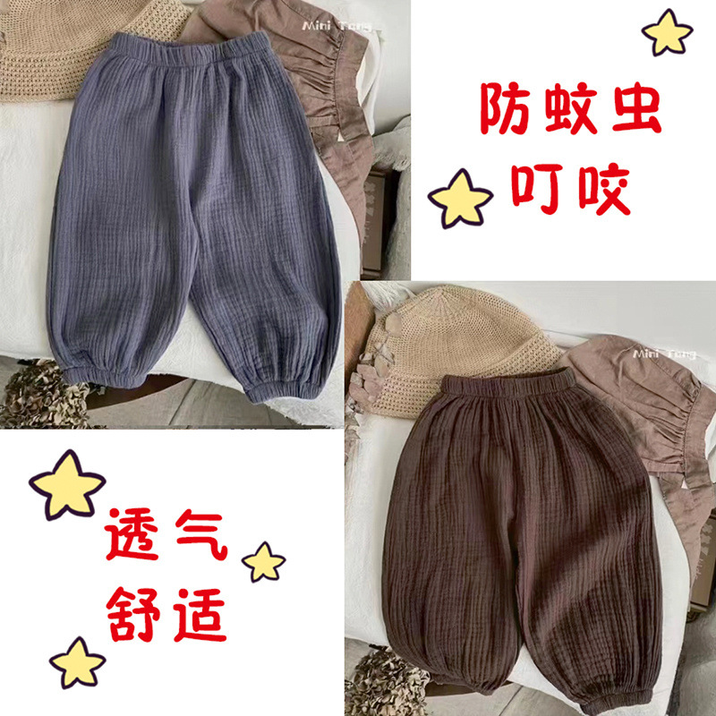 어린이 및 아기의 모기 방지 바지 여름 소년과 소녀 아이스 실크 얇은 느슨한 블루머 바지 에어컨 외부 착용 트렌디 한 바지스토어 가기