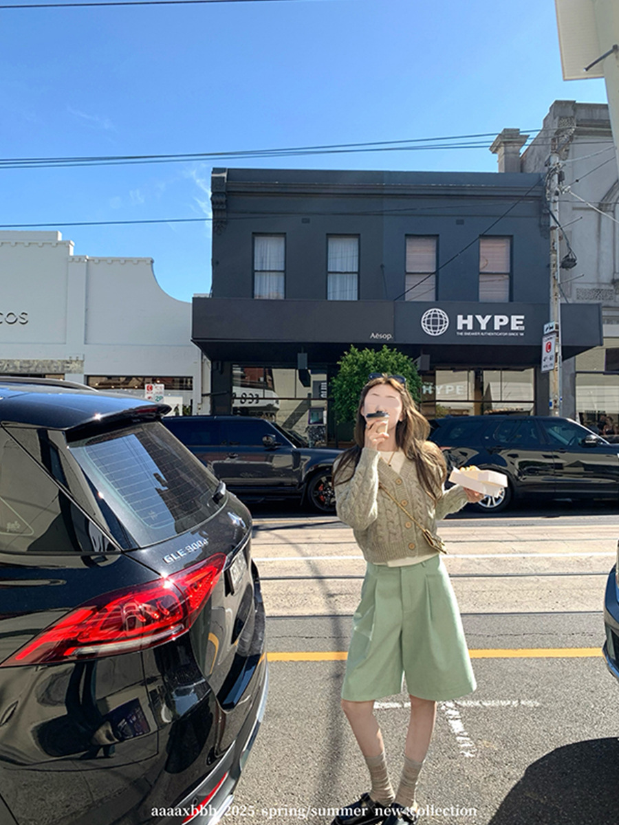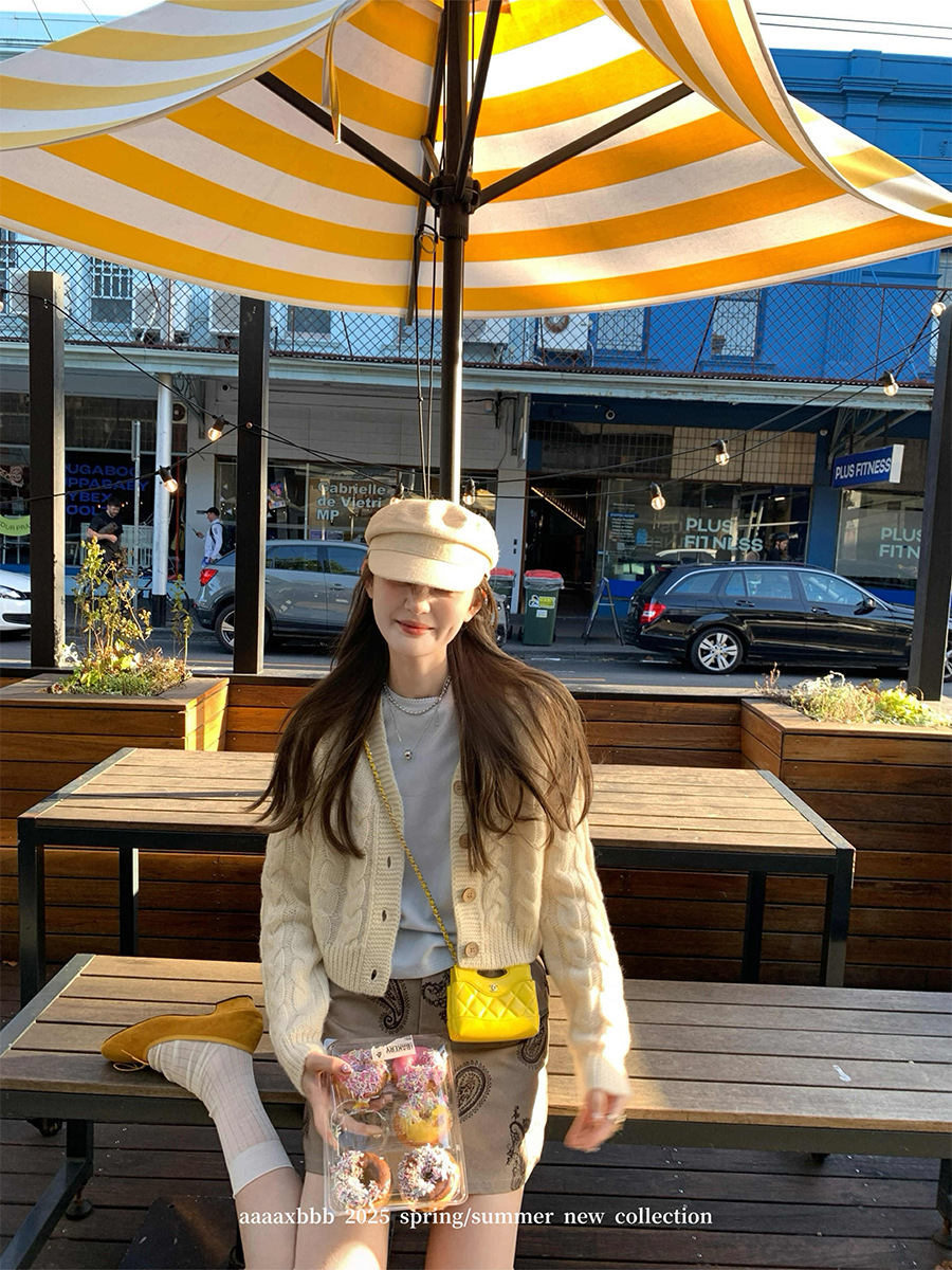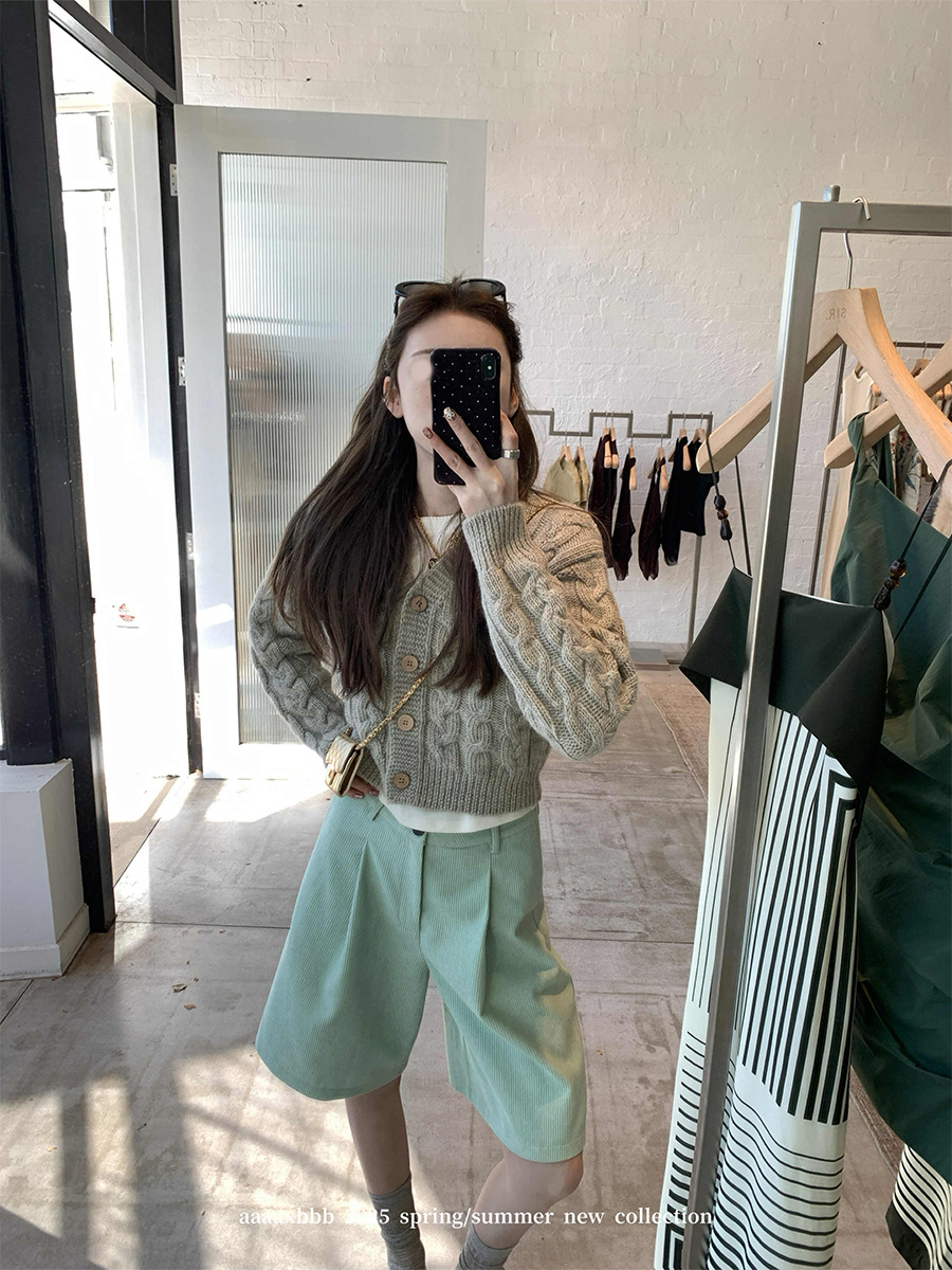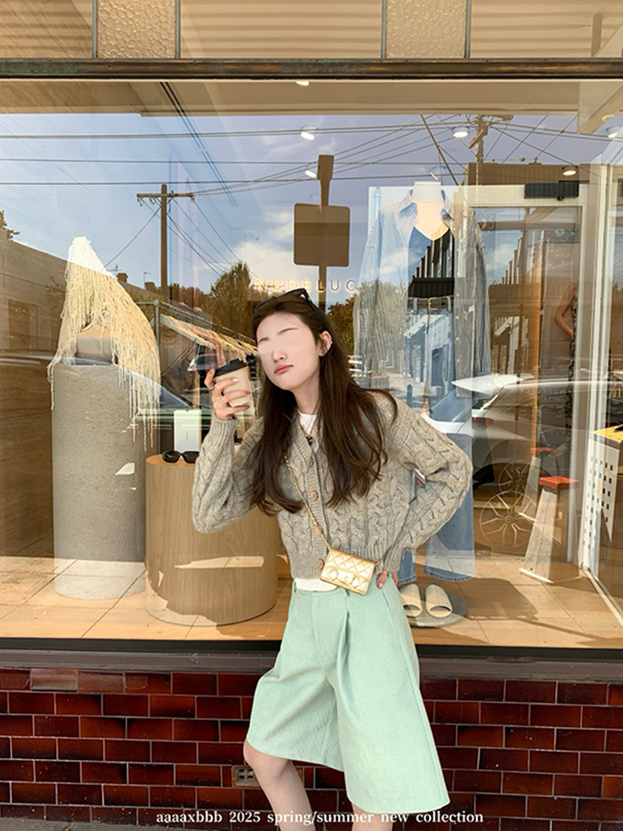 Aaaaxbbb 파리 아침 속삭이는 모방 양모 니트 탑 쇼트 V 넥 슬리밍 긴팔 카디건 재킷스토어 가기