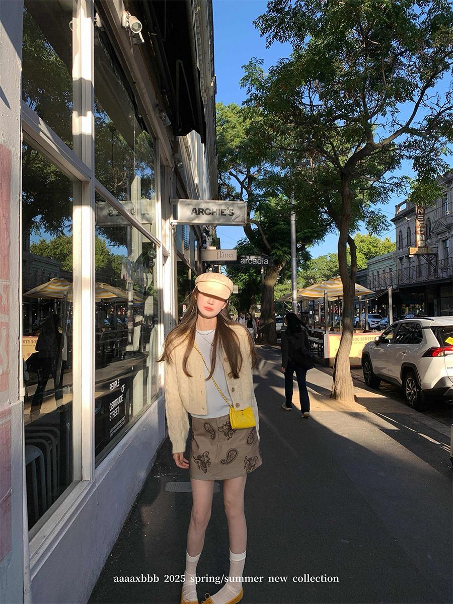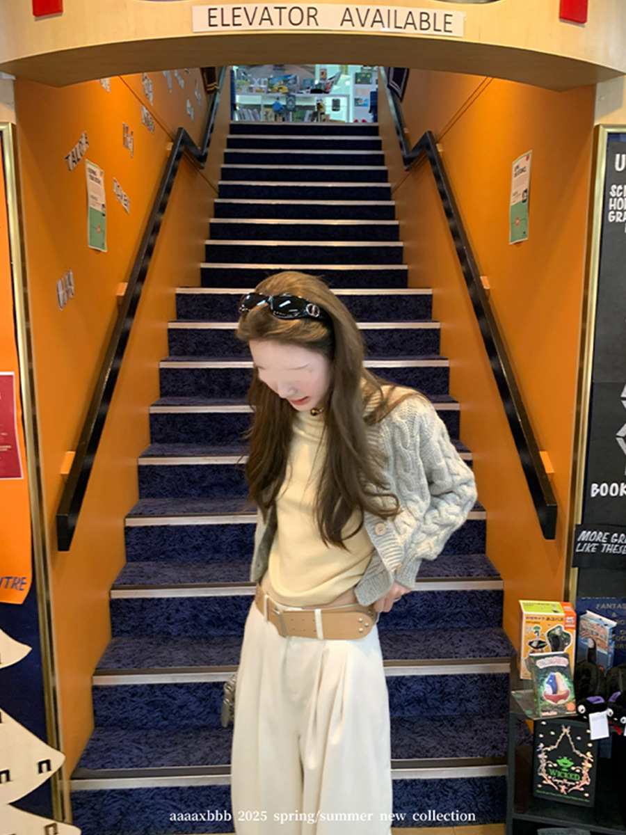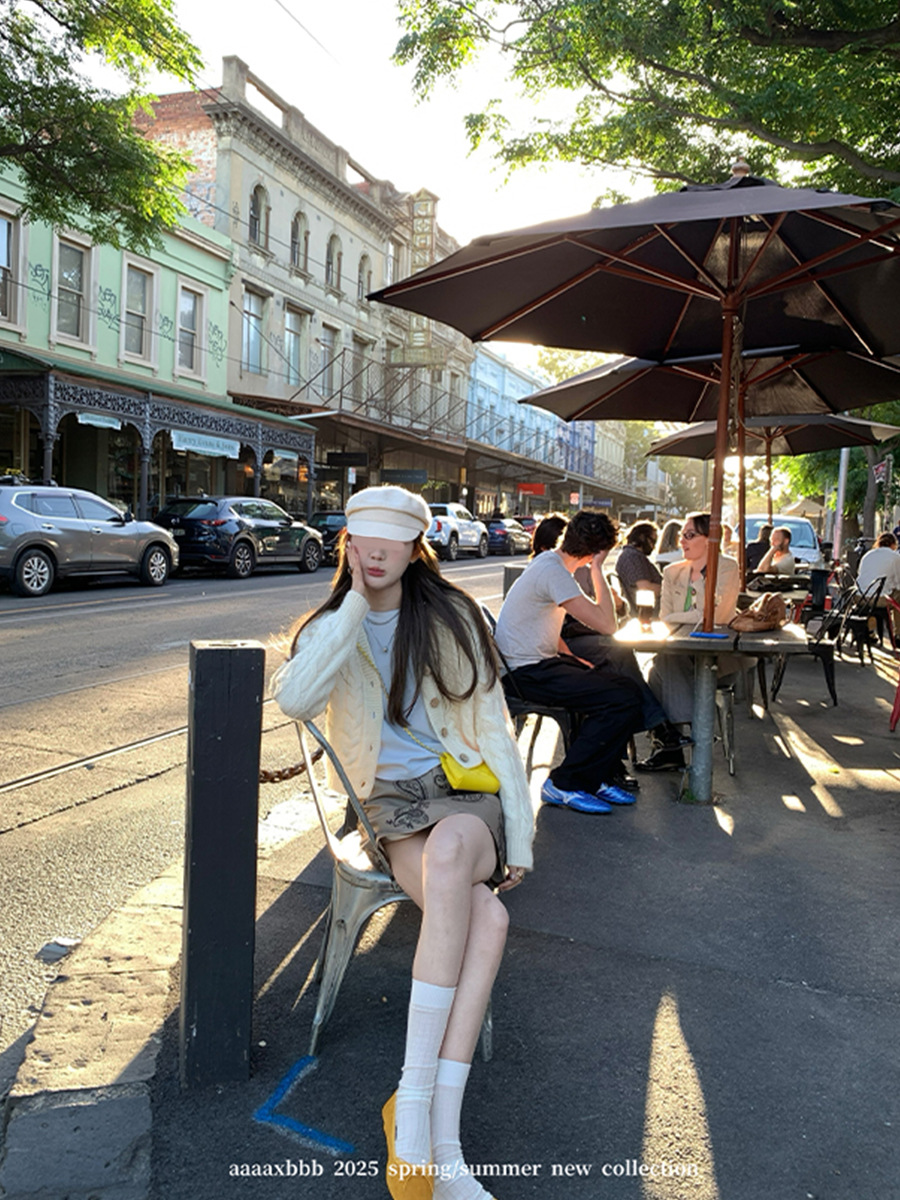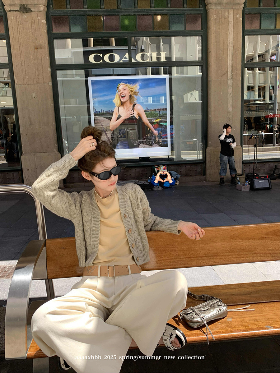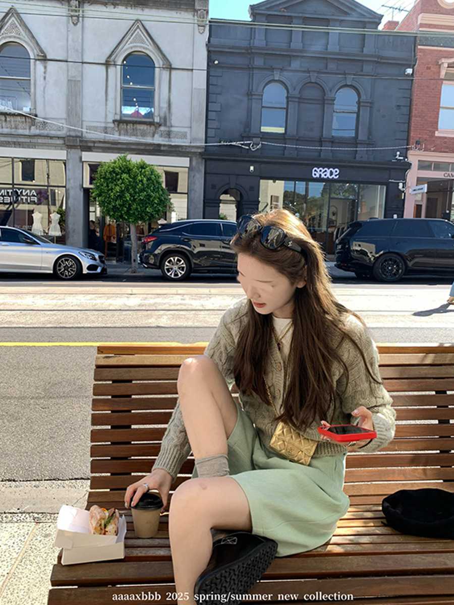 Aaaaxbbb 파리 아침 속삭이는 모방 양모 니트 탑 쇼트 V 넥 슬리밍 긴팔 카디건 재킷스토어 가기