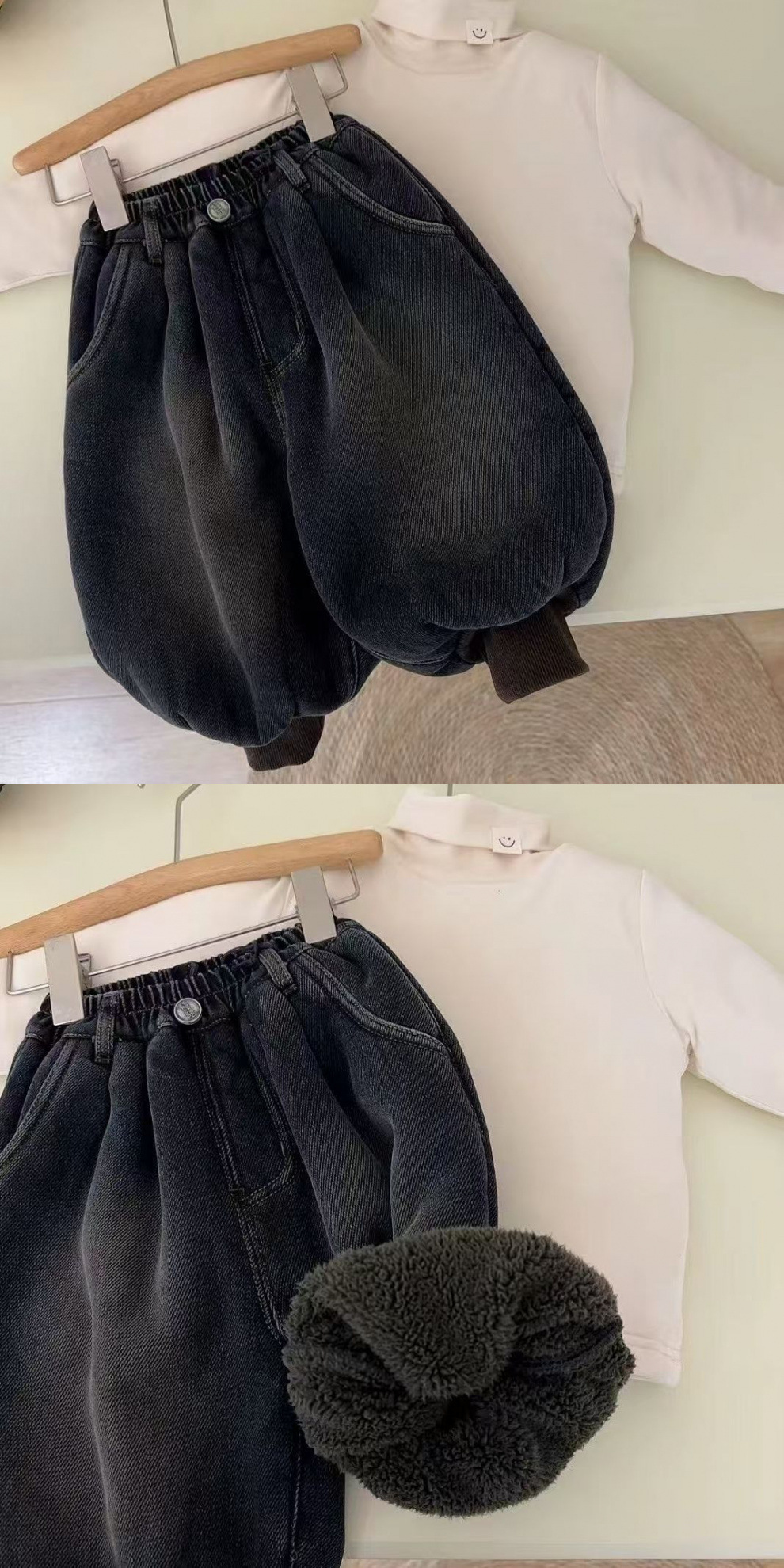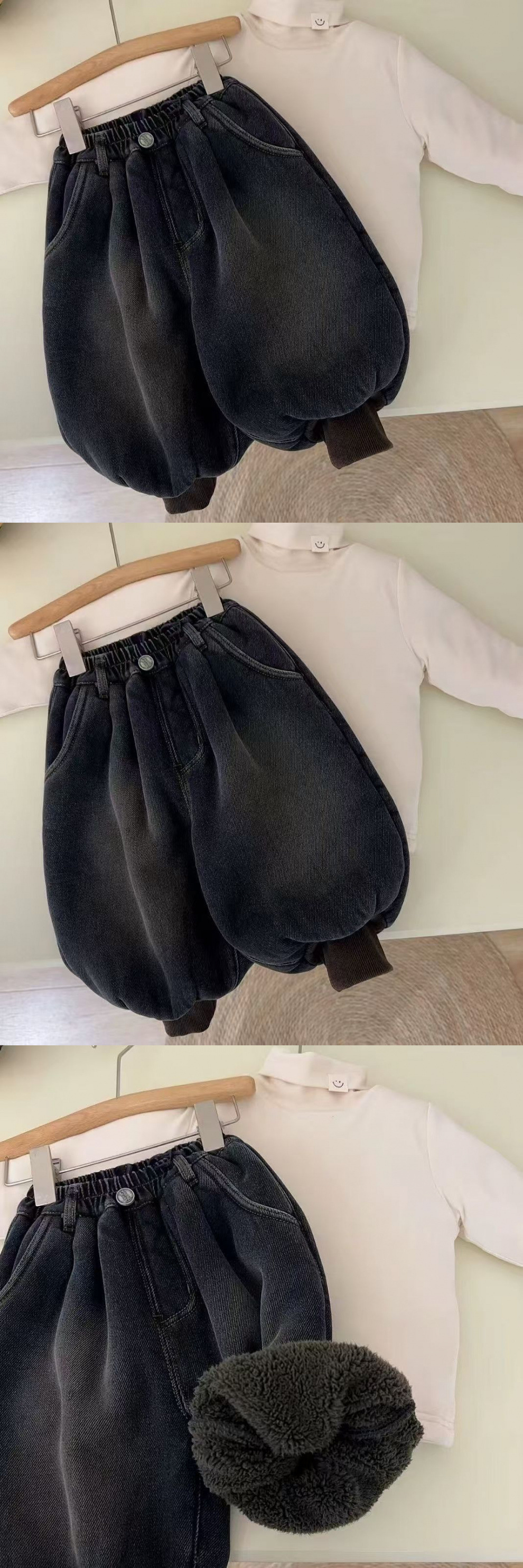 어린이 기모 청바지 원피스 벨벳 2025 가을과 겨울 남성과 여성을위한 새로운 베이비 블루머스토어 가기