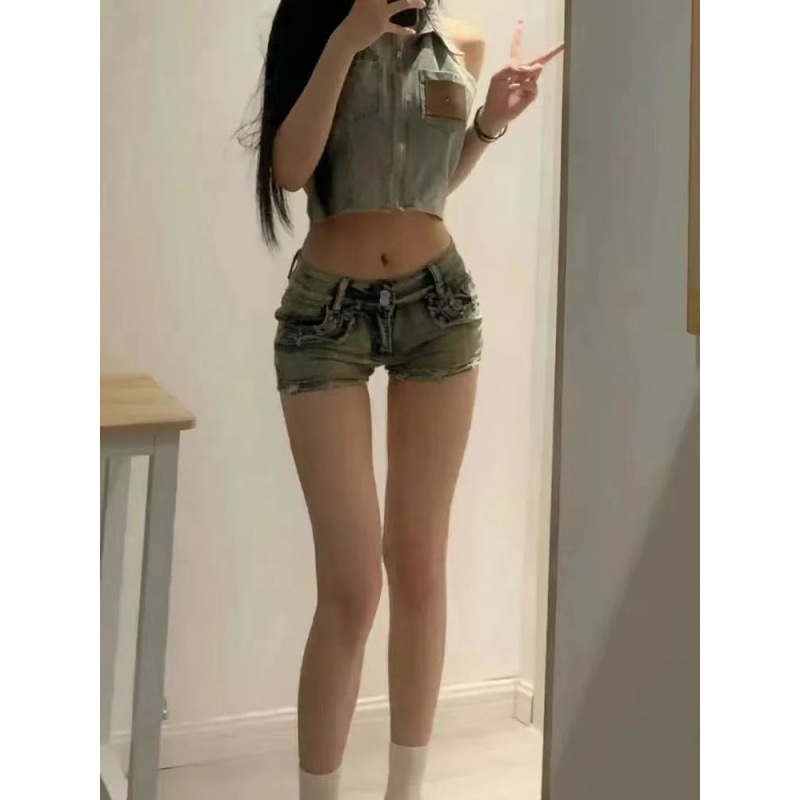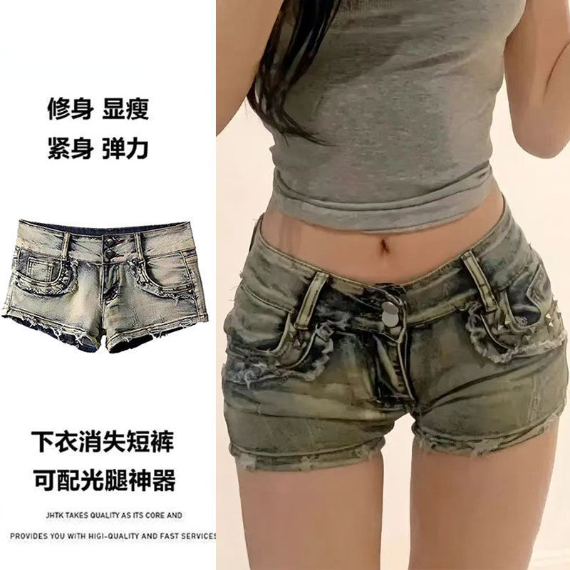 Liu Ding 낮은 허리 데님 아메리칸 스타일 핫 걸스 슈퍼 반바지 여성 2025 년 여름 새로운 슬림 핏 슬리밍 백 엉덩이 와이드 레그 핫 팬츠