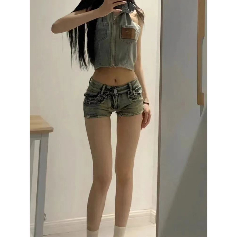 Liu Ding 낮은 허리 데님 아메리칸 스타일 핫 걸스 슈퍼 반바지 여성 2025 년 여름 새로운 슬림 핏 슬리밍 백 엉덩이 와이드 레그 핫 팬츠스토어 가기