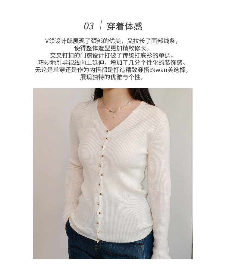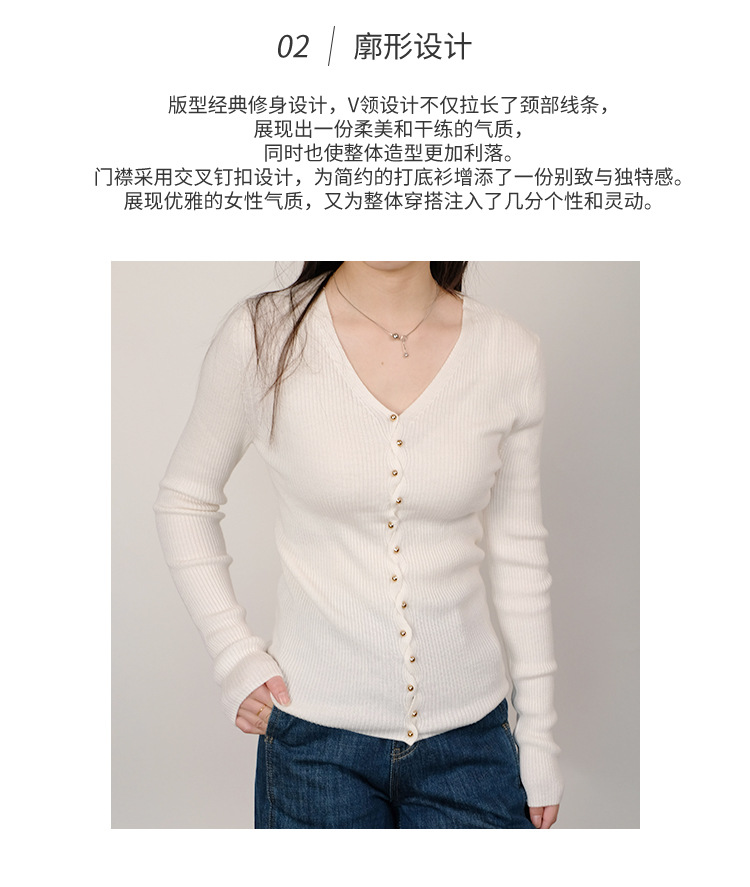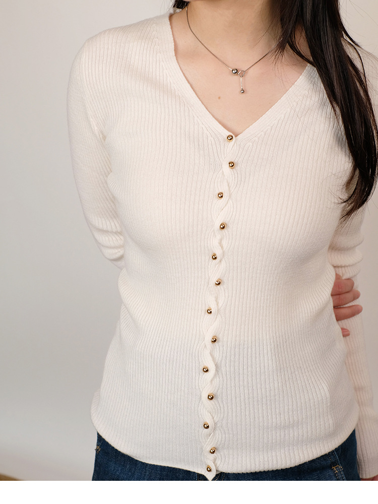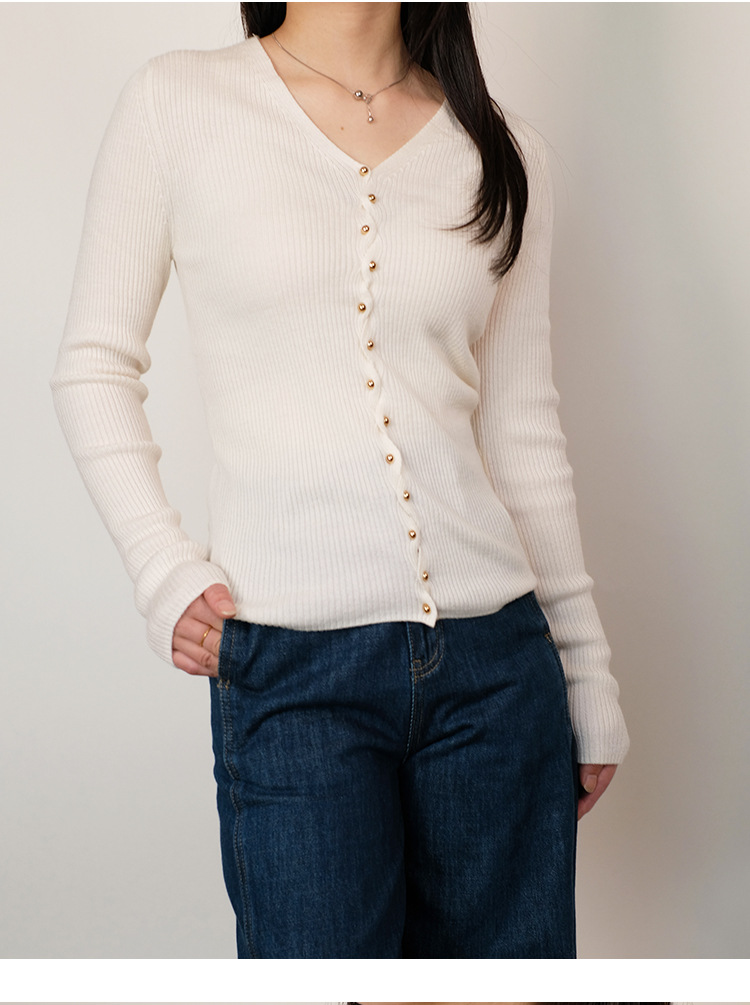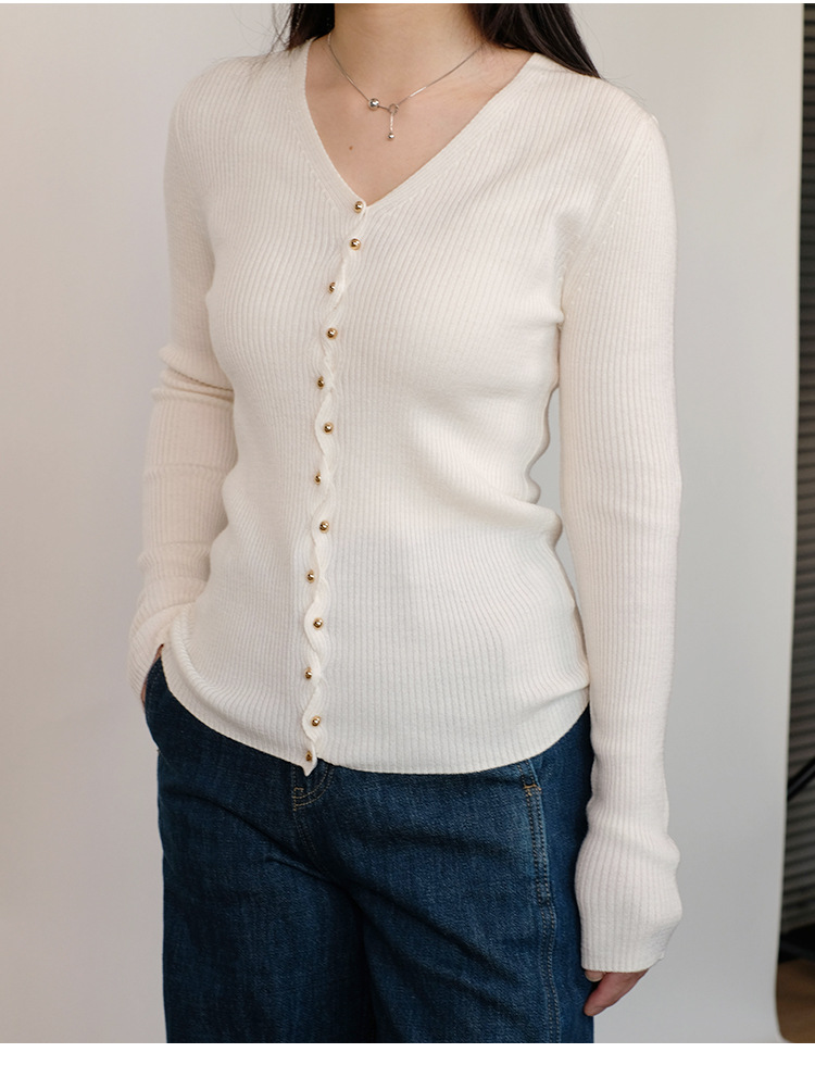 25 봄 클래식 슬림 올 매치 V 넥 디자인 크로스 비드 니트 탑 우아하고 짜임새베이스 셔츠