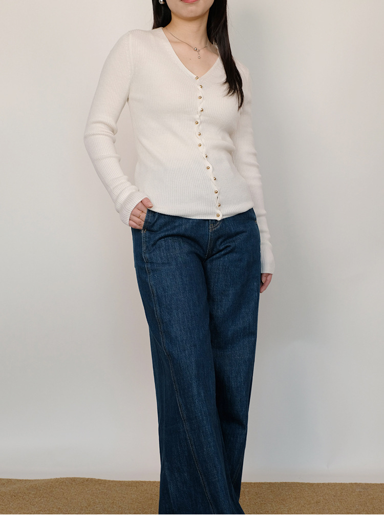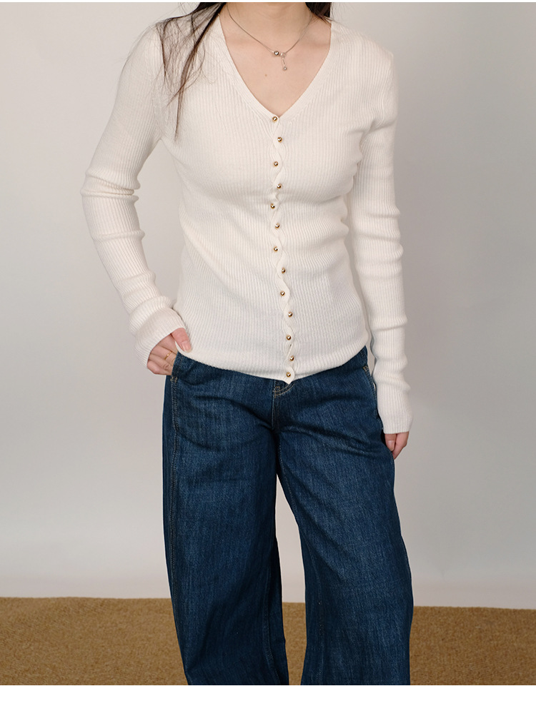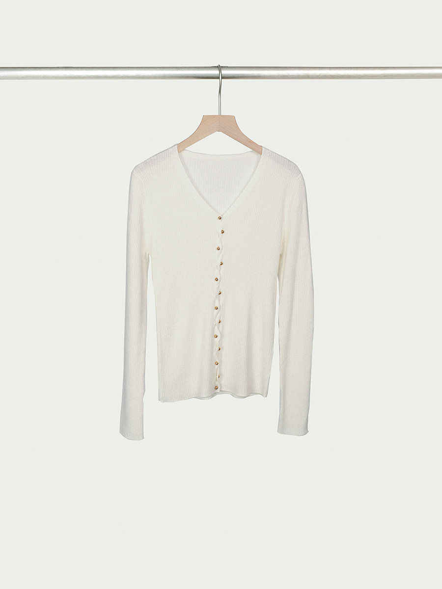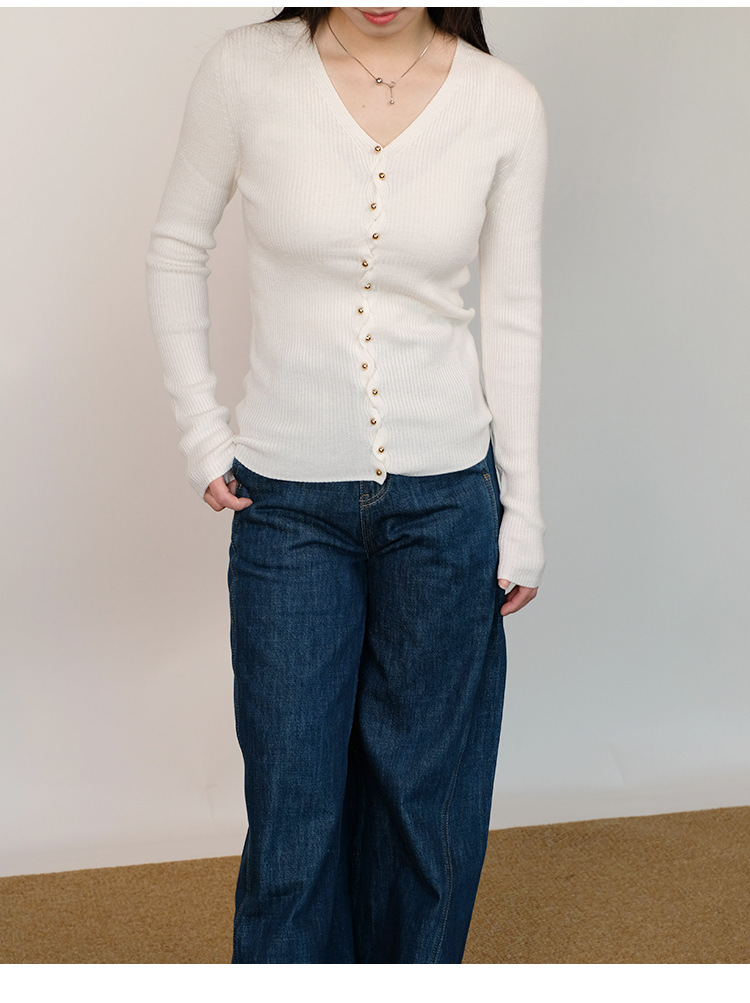 25 봄 클래식 슬림 올 매치 V 넥 디자인 크로스 비드 니트 탑 우아하고 짜임새베이스 셔츠