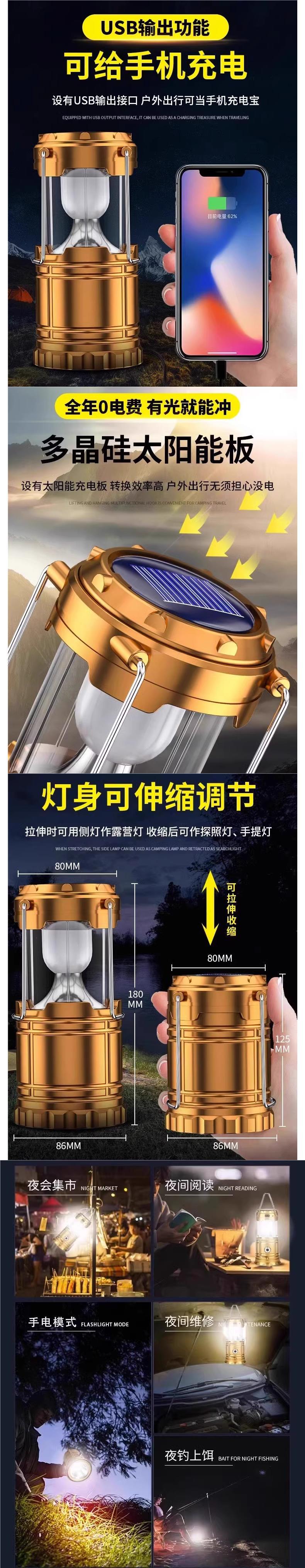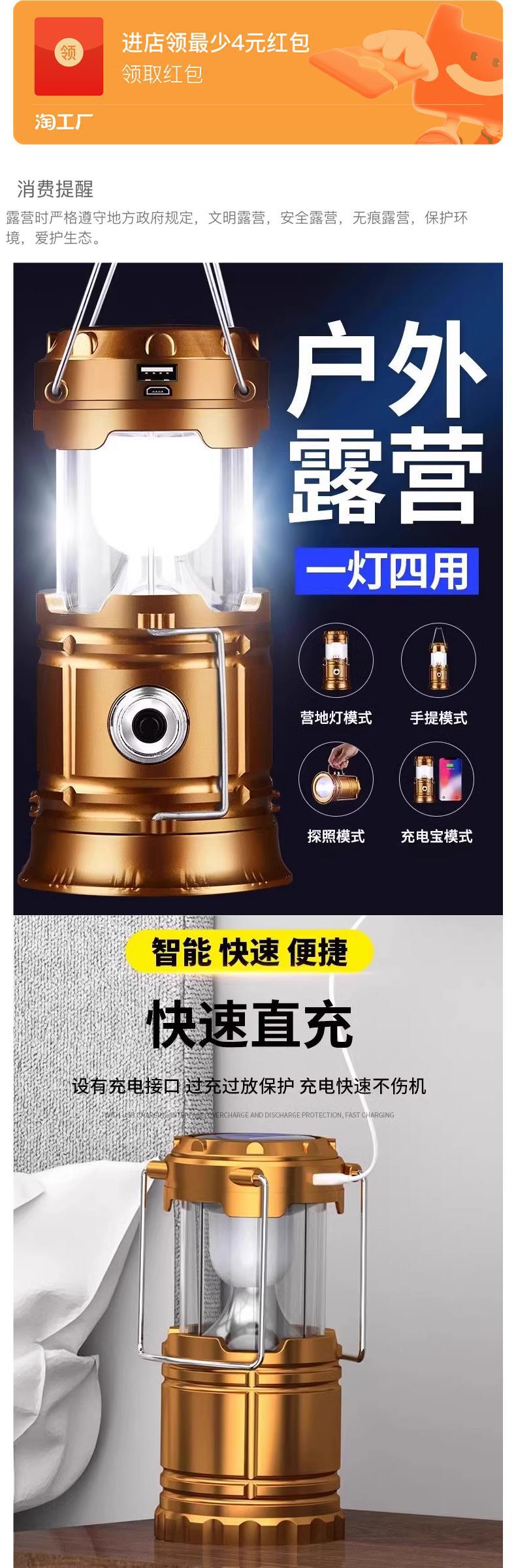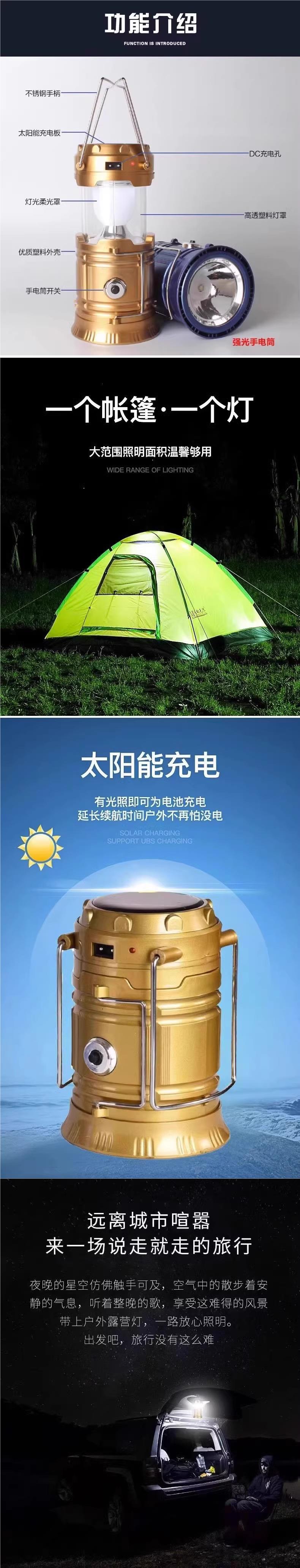 태양 캠핑 조명 비상 조명 손전등 야외 등불 긴 배터리 수명 충전 분위기 조명 텐트 조명