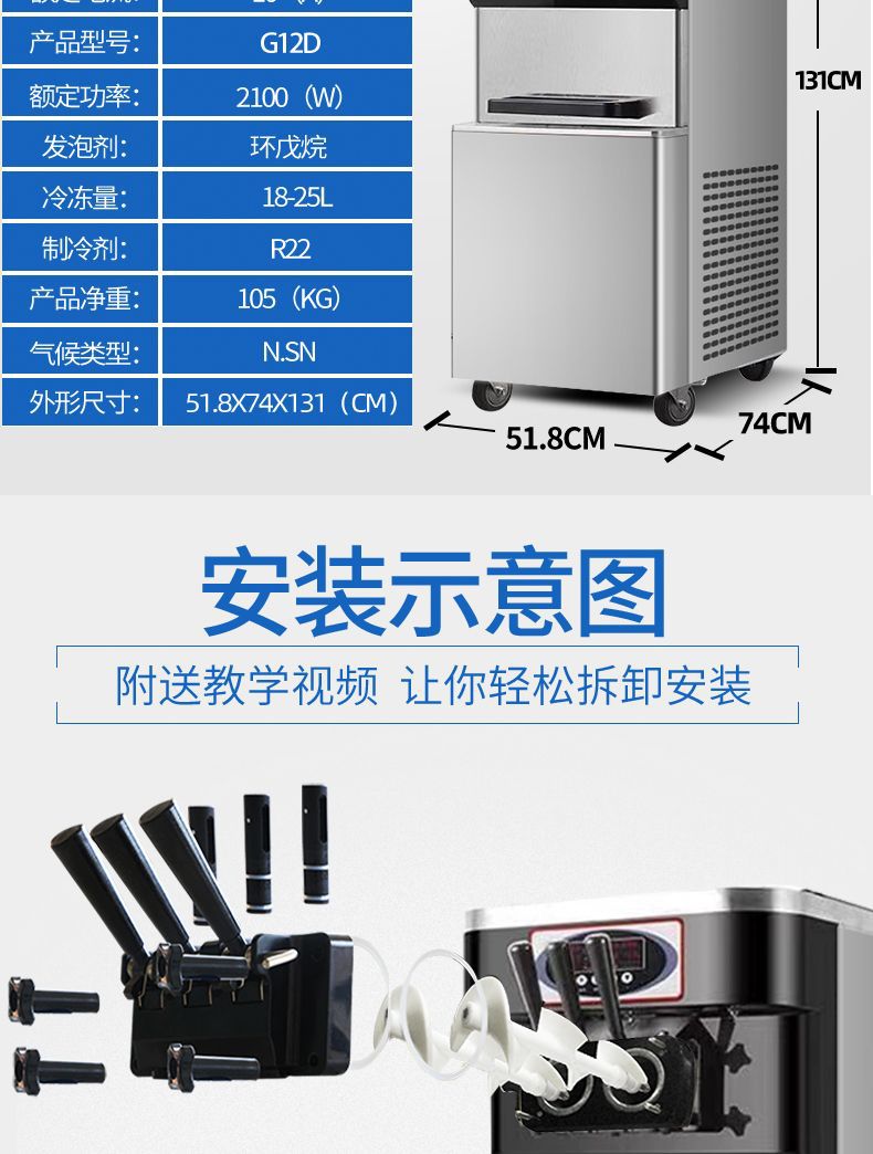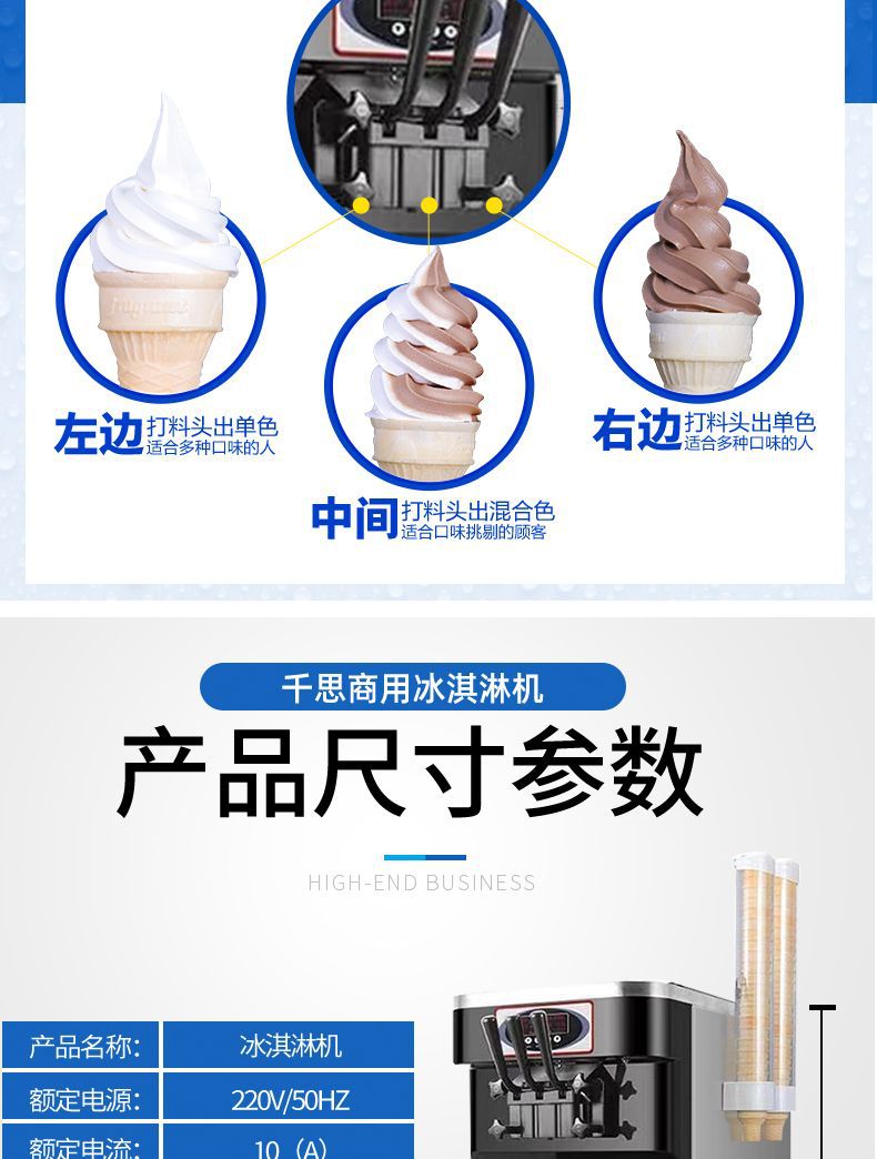 Qiansi 아이스크림 기계 상업 자동 소프트 아이스크림 기계 아이스크림 기계 순대 달콤한 콘 기계 우유 차 가게스토어 가기