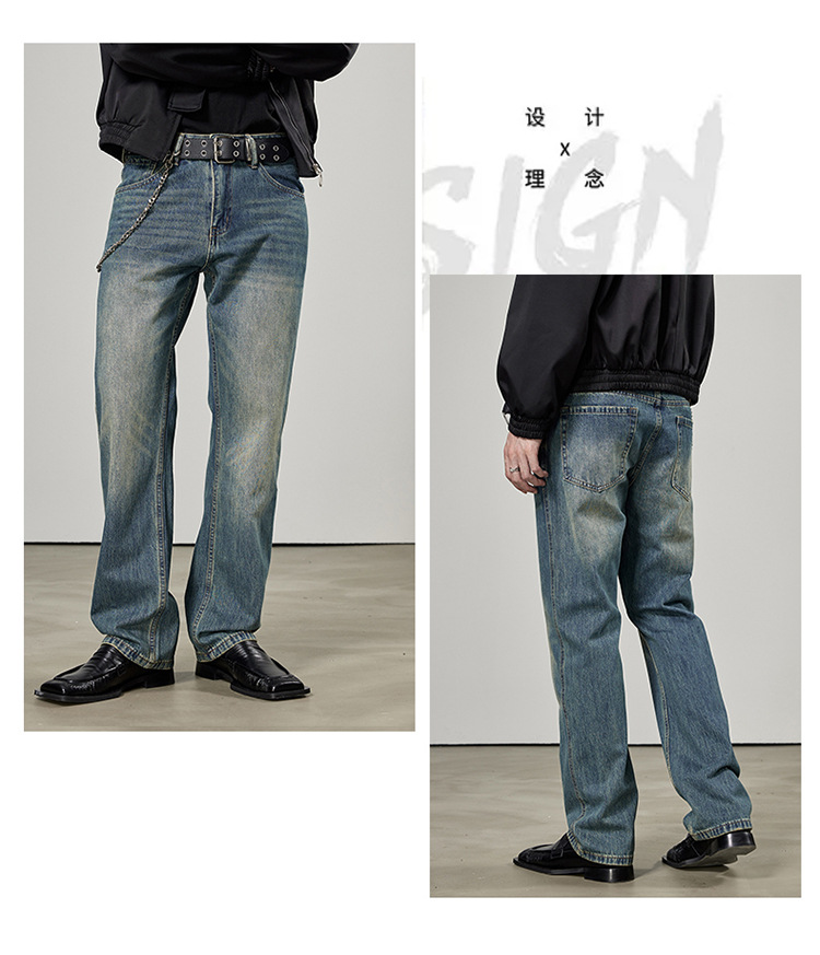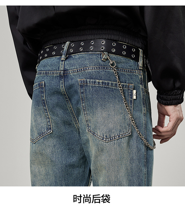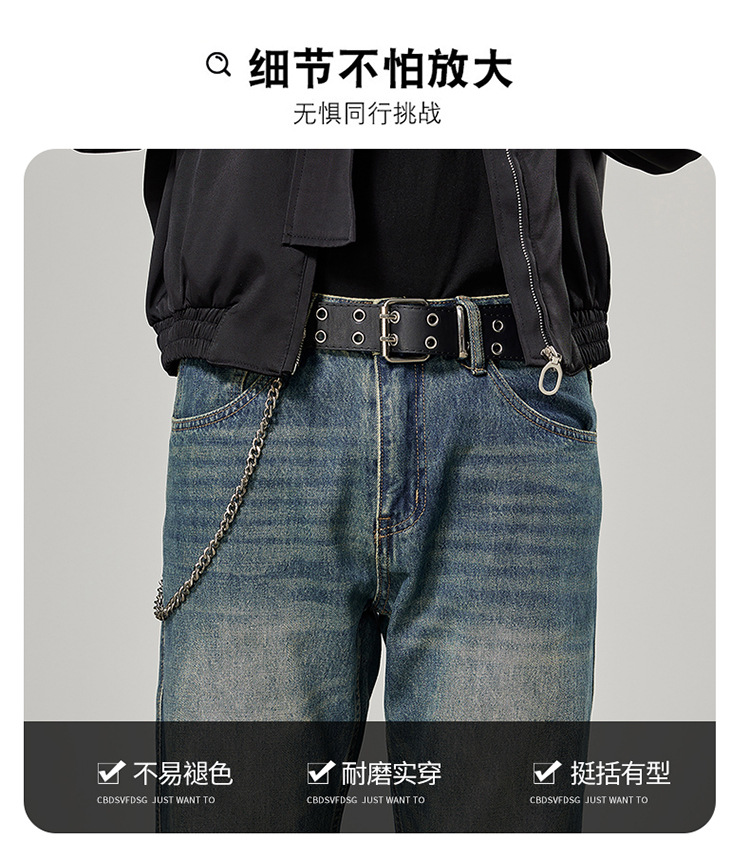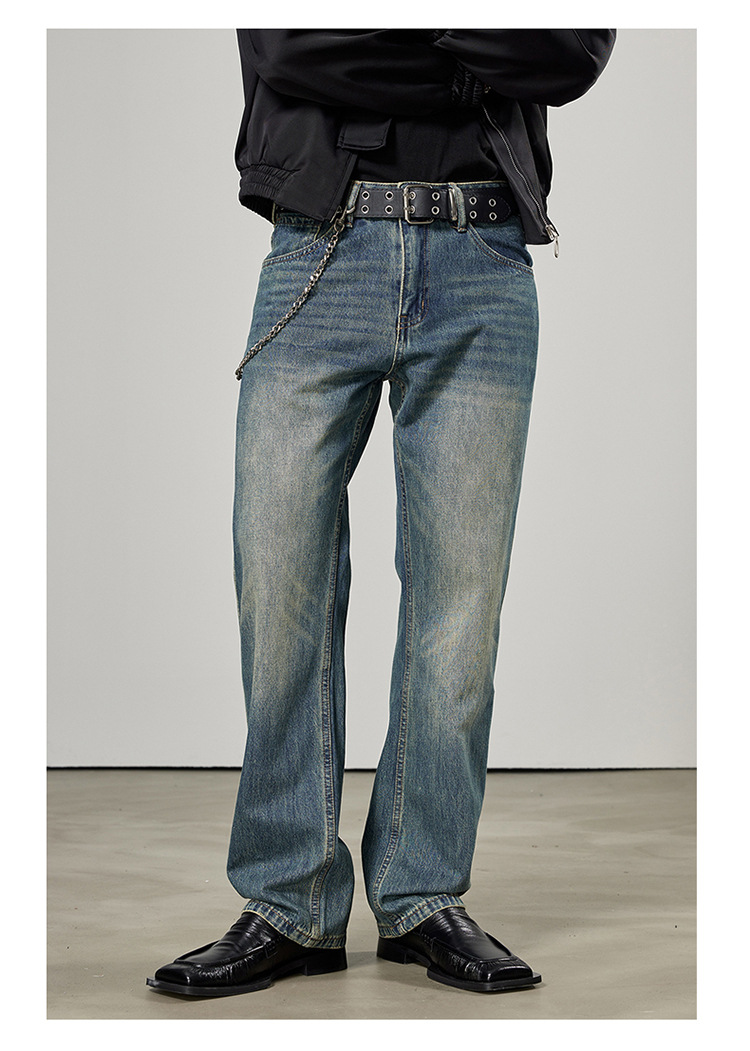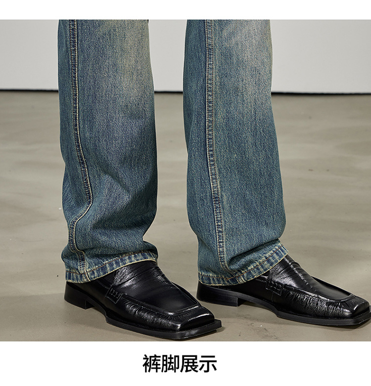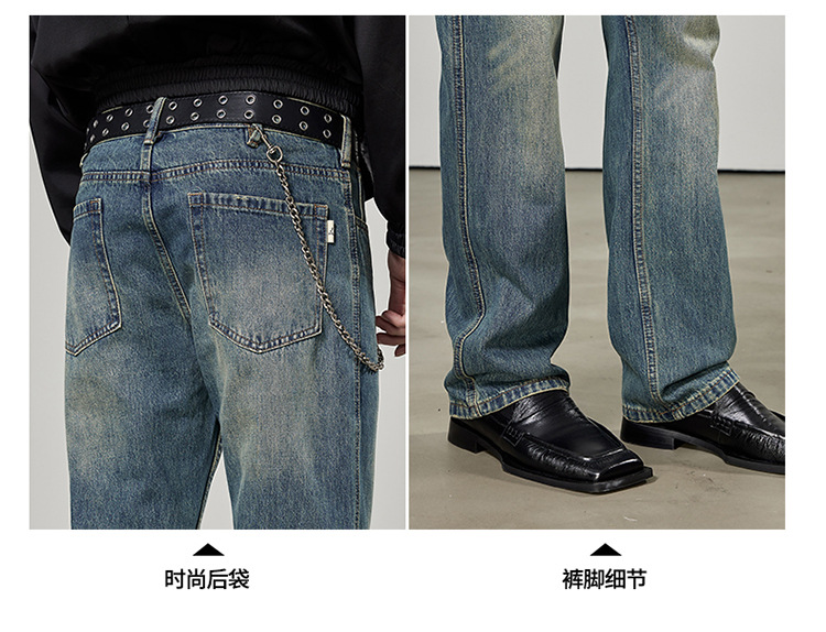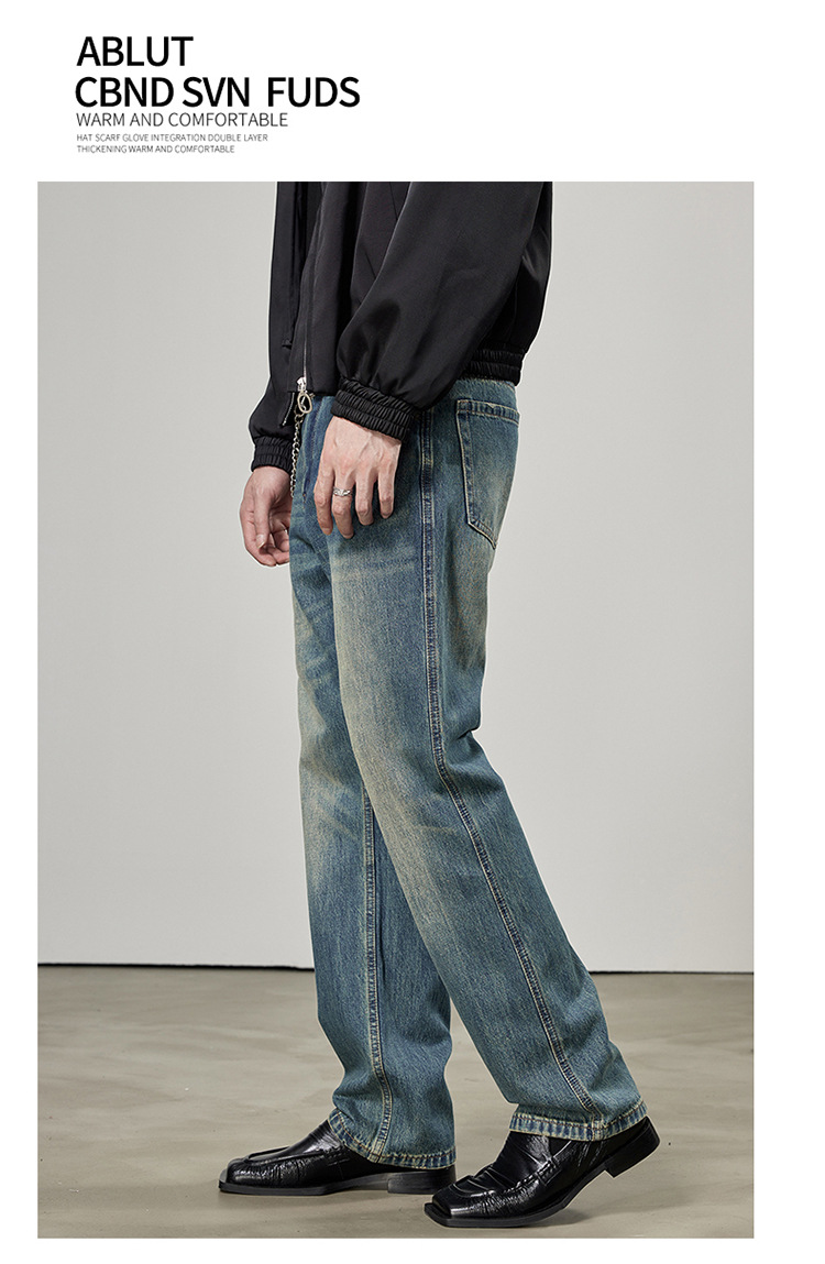 아메리칸 스타일 와이드 레그 청바지 남성용 2025 빈티지 스트레이트 루즈 바느질 세탁 사용 바지스토어 가기