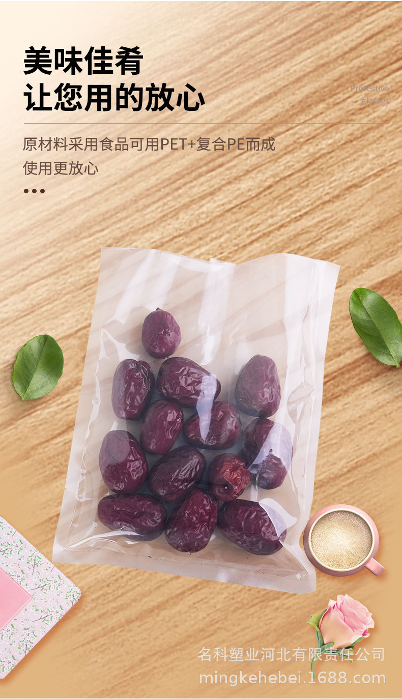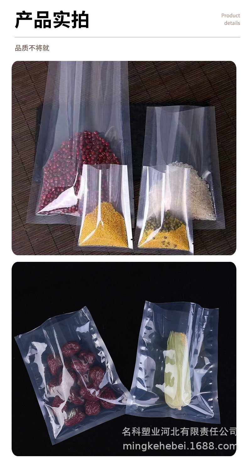 재고 폴리 에스테르 진공 가방 복합 16 실크 부드러운 투명 3 면 씰 식품 포장