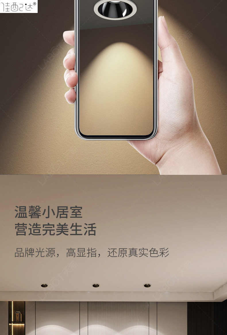 깊은 숨겨진 눈부심 방지 스포트라이트 Cob 가정용 거실 임베디드 라이트 다운 라이트 조명 힐 벽 세탁기 조명