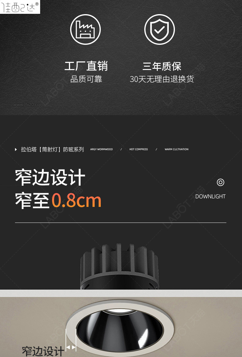 • Hill-12W 검정색 컵 업그레이드 [개방 75-80mm] 6000k 백색광