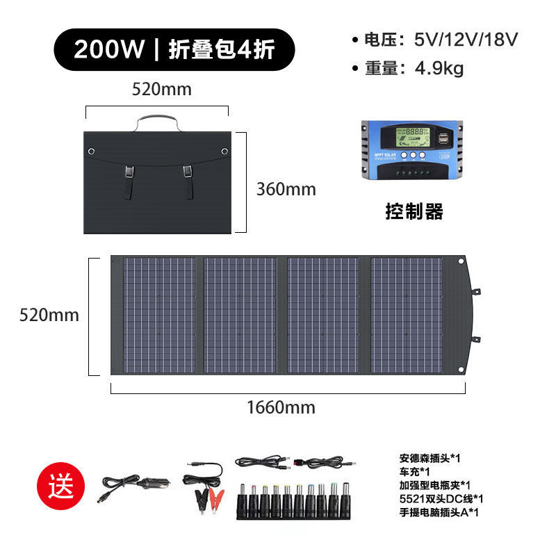 300W 태양 접는 가방 야외 RV 높은 전원 충전 보물 200W18V 태양 전지판 다른 율리스토어 가기