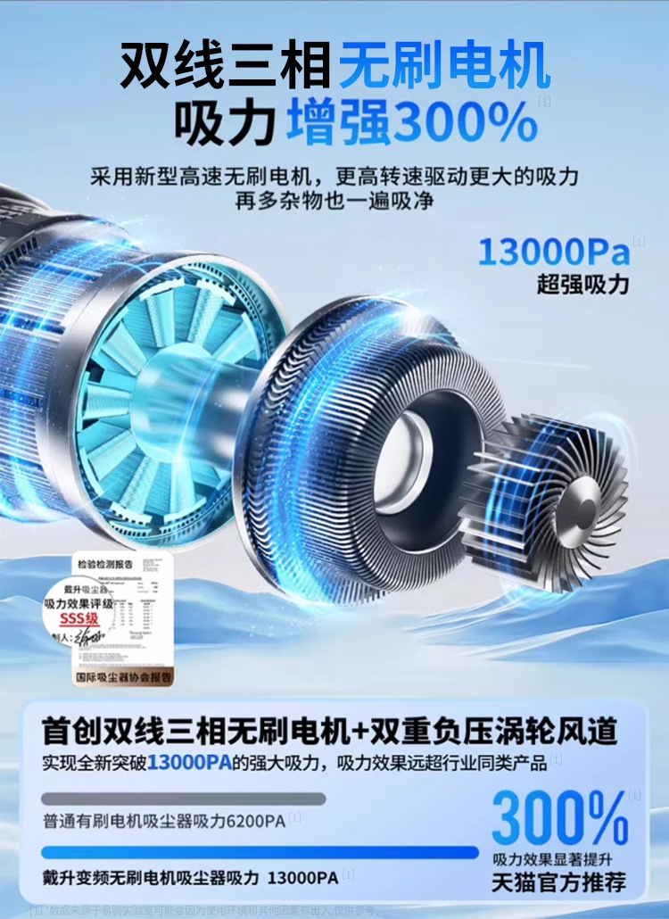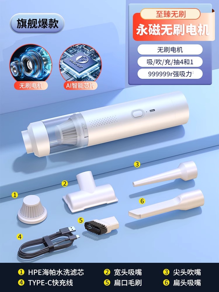 • 백색 영구 자석 브러시리스 고속 충전, 흡입, 송풍, 충전 및 펌핑 4-in-1 0.05kg단 조절 AI 칩