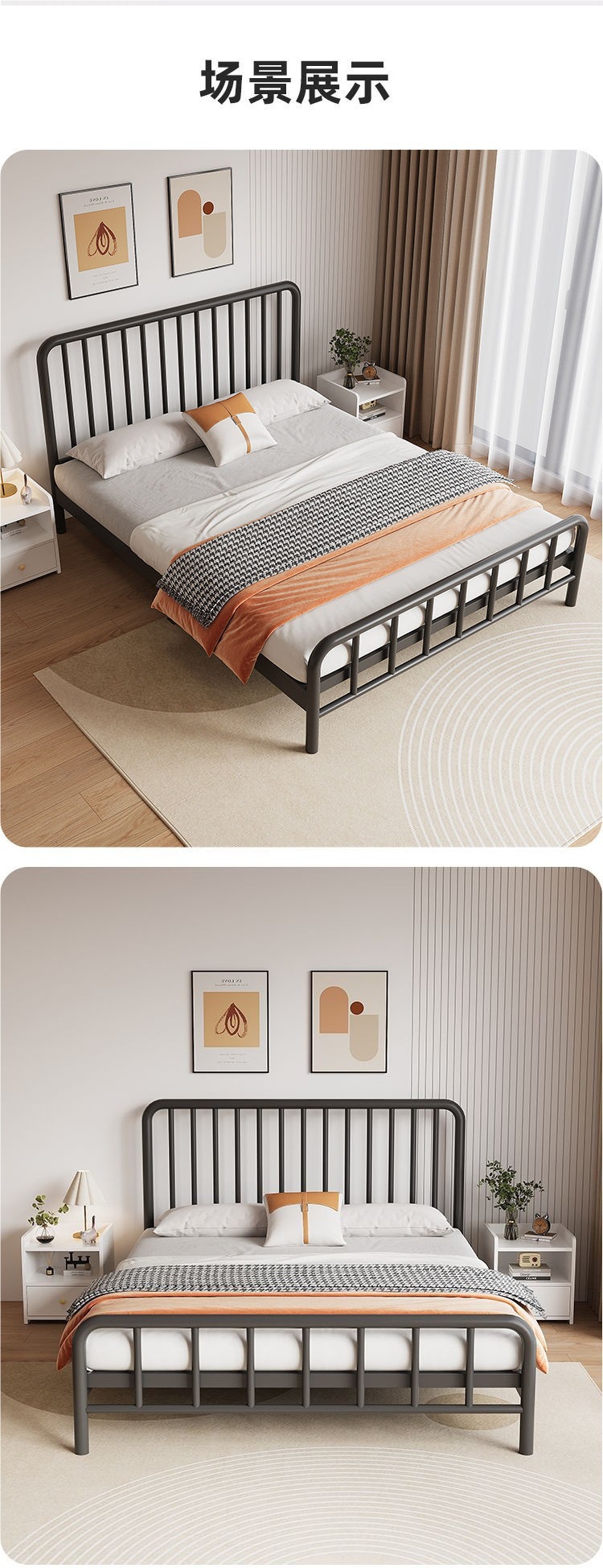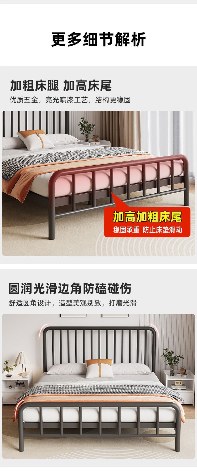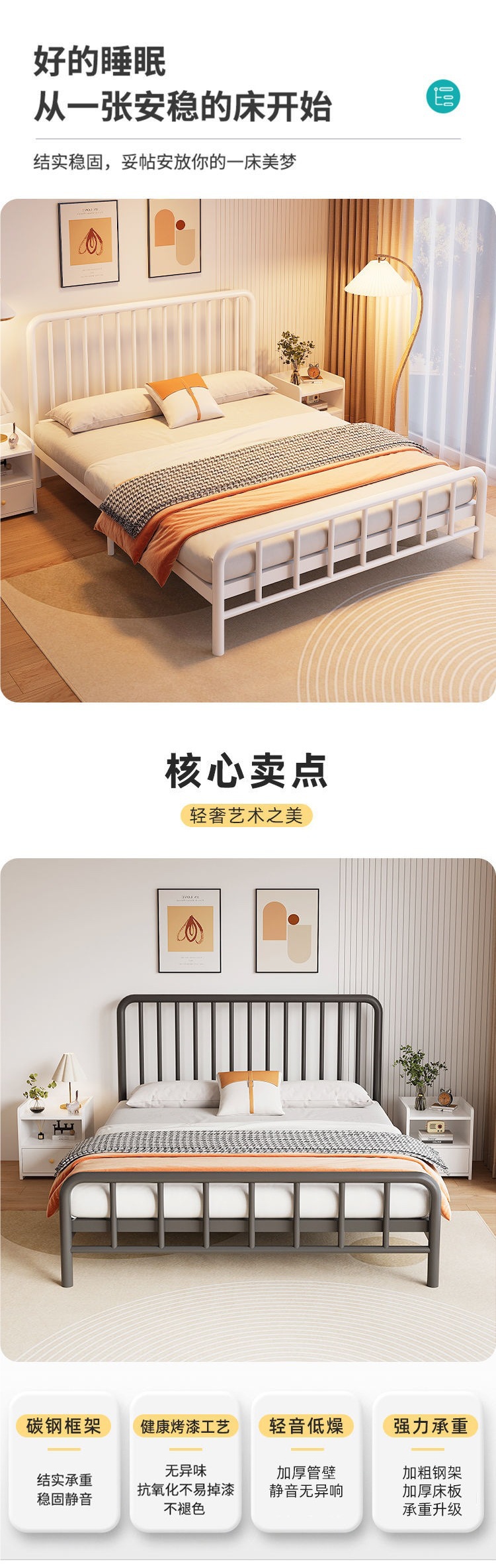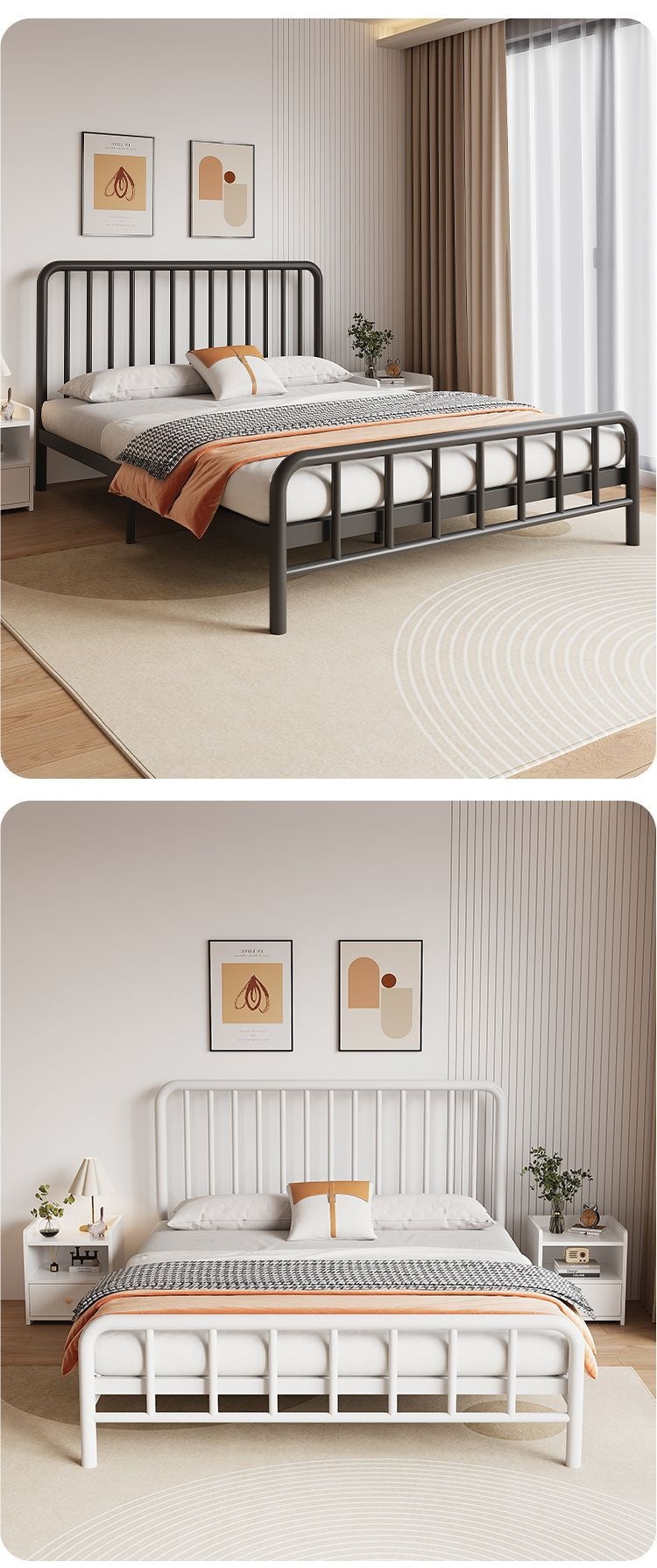 강화 된 두꺼운 철 침대 경제적 인 임대 룸 1.0/1.5/1.8 m 싱글 더블 침대 북유럽 단순스토어 가기