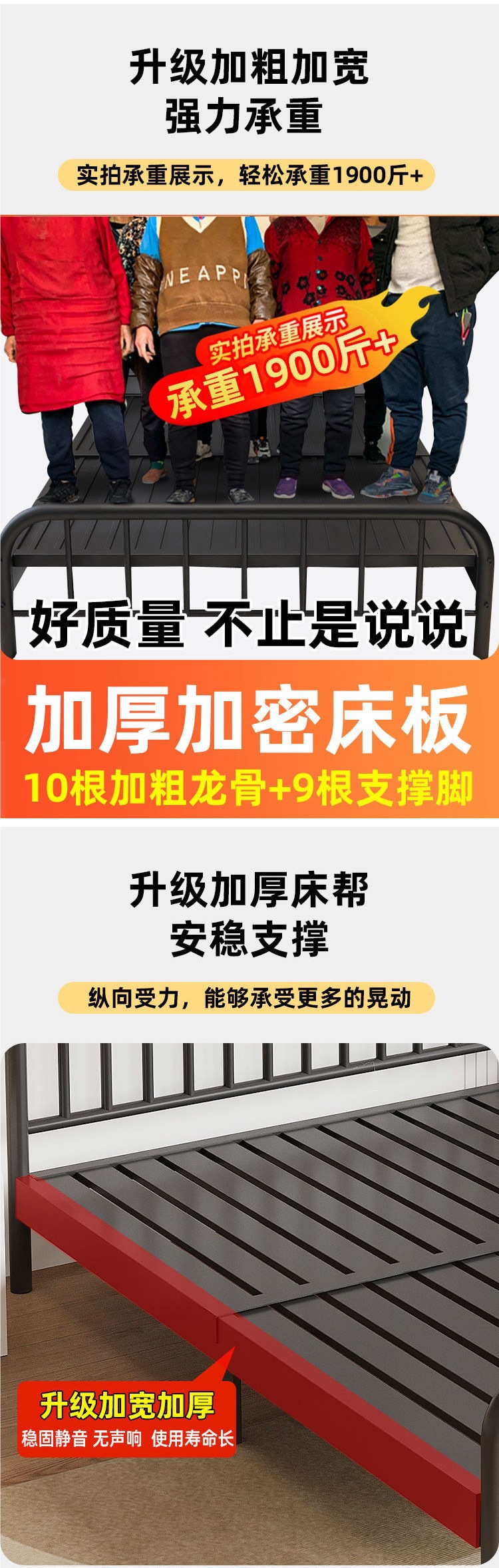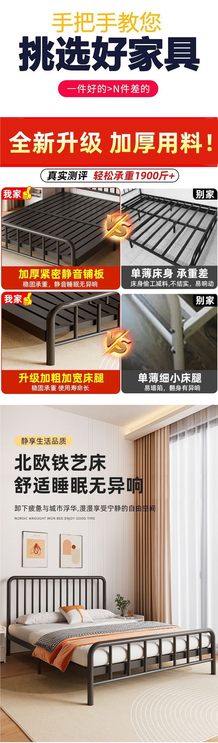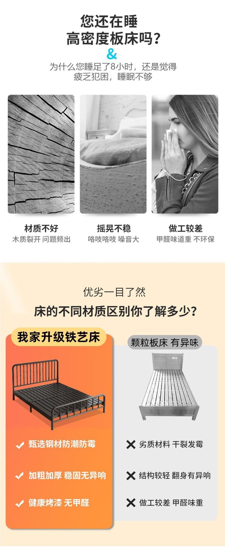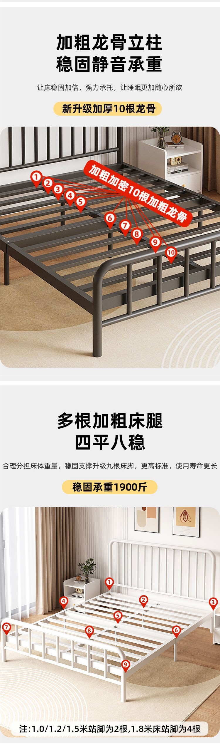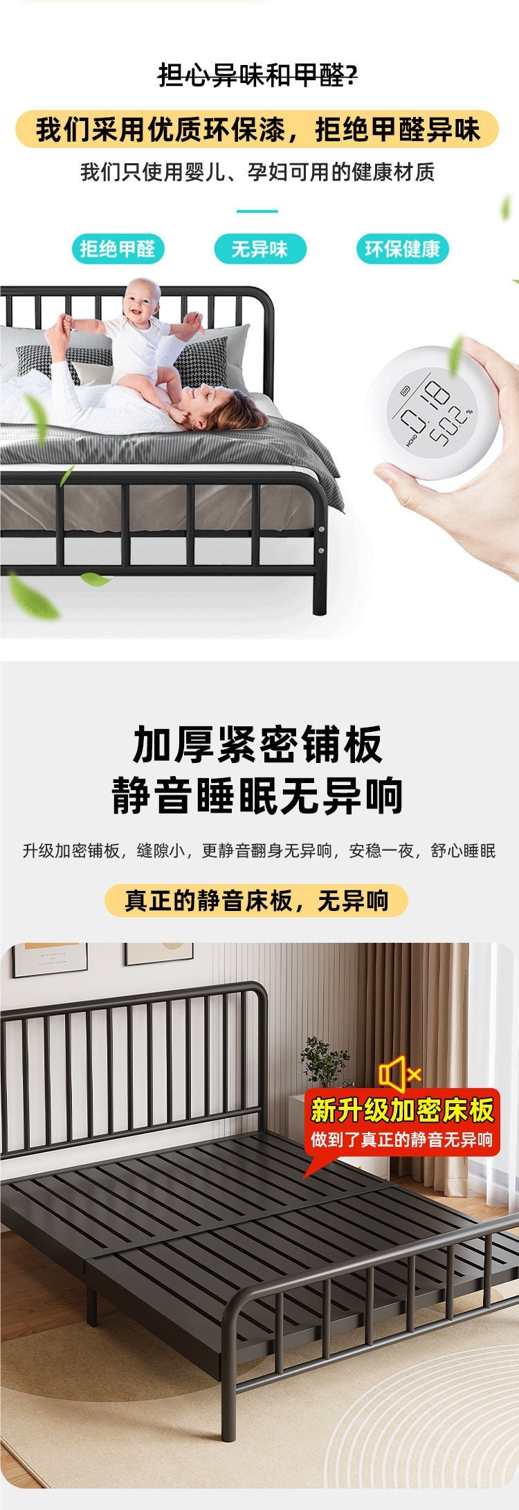 강화 된 두꺼운 철 침대 경제적 인 임대 룸 1.0/1.5/1.8 m 싱글 더블 침대 북유럽 단순스토어 가기