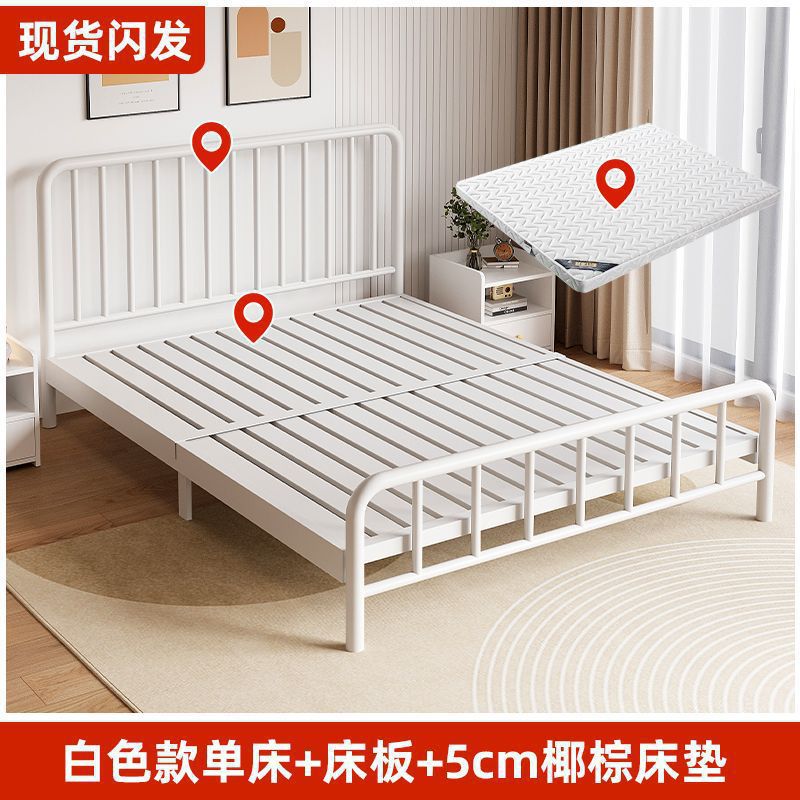 • 화이트 침대 + 코코넛 야자 매트리스 5cm개 업그레이드 [싱글 침대 + 침대 보드]