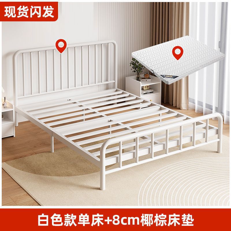 • 화이트 침대 + 코코넛 야자 매트리스 8cm개 업그레이드 [싱글 침대 + 침대 보드]