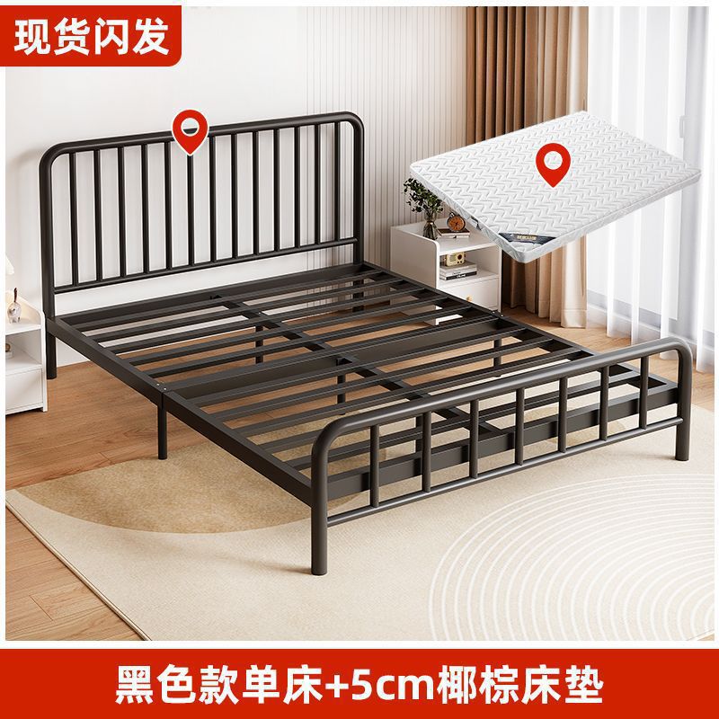• 블랙 침대 + 코코넛 야자 매트리스 5cm개 업그레이드 [싱글 침대]