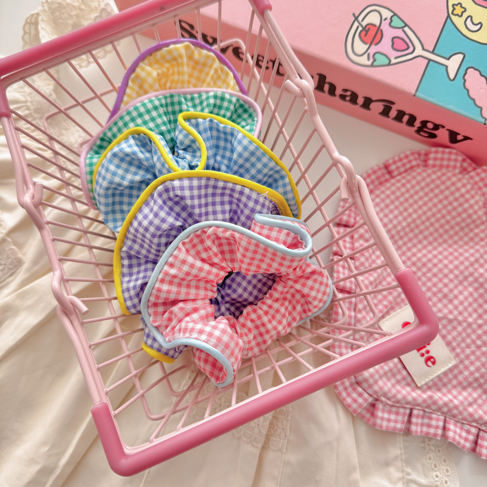 봄 한국식 스몰 사이즈 체크 패브릭 대장 링 신선한 올 매치 소녀의 머리 로프 말꼬리 높은 탄성 헤어 액세서리