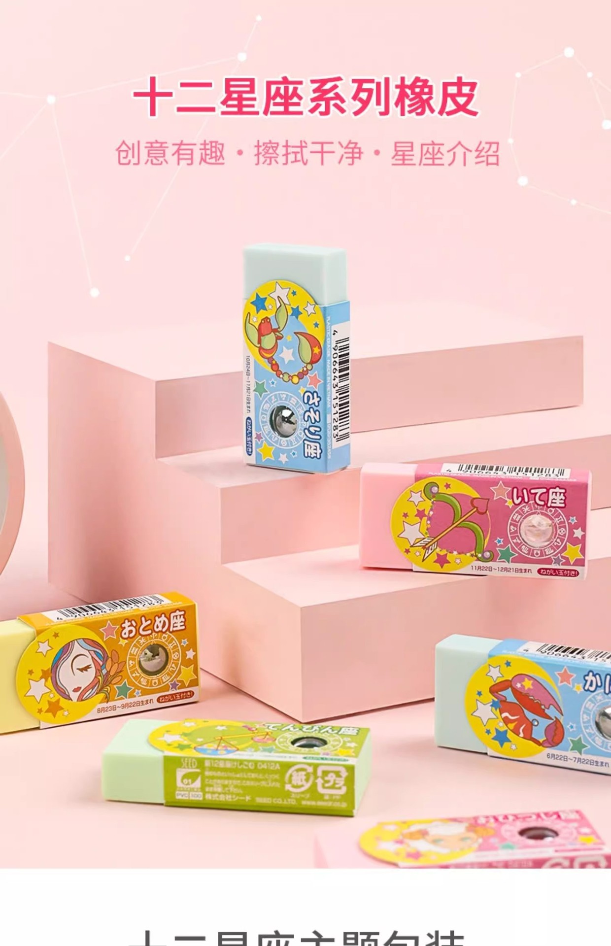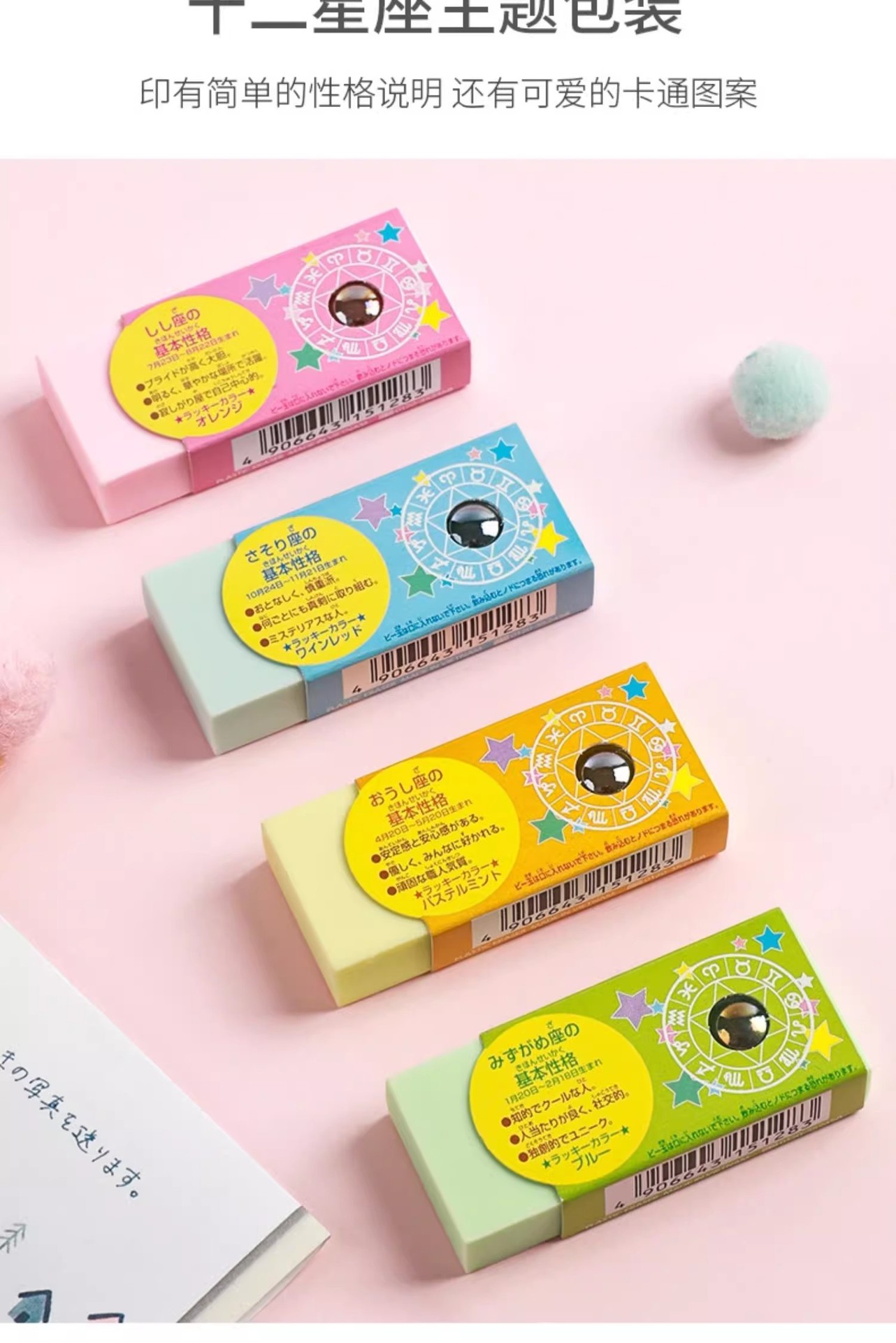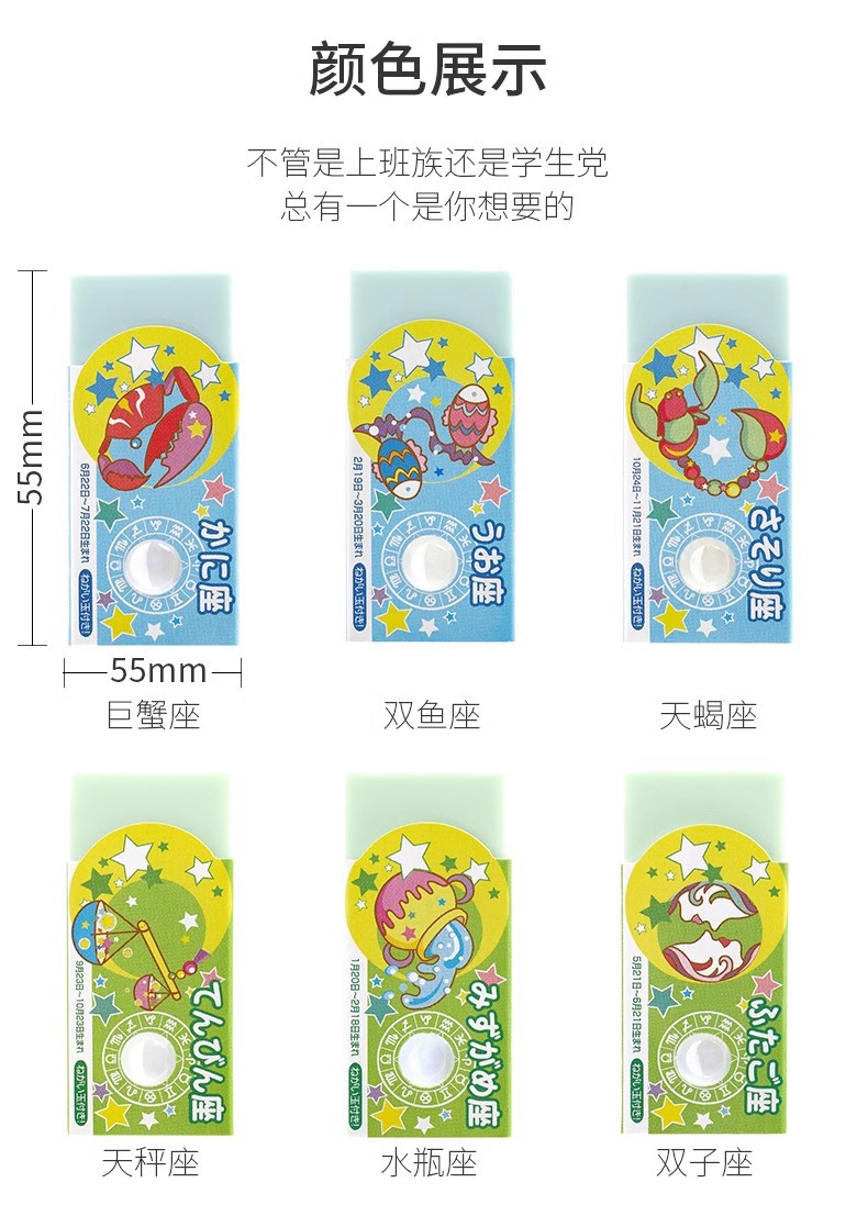 일본 SEED 12 별자리 지우개 초등학교 특별 귀여운 창조적 인 만화는 쉽게 떠날 수 없습니다.스토어 가기