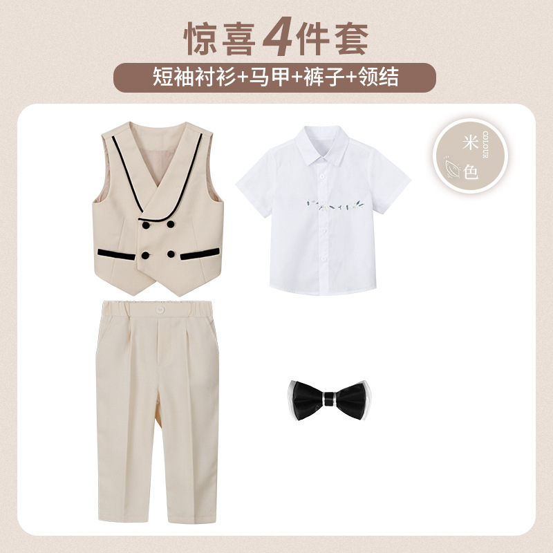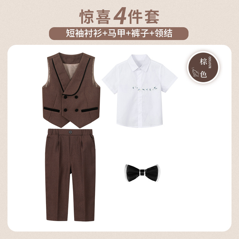 소년 조끼 세트 봄과 여름 새로운 1 년 된 꽃 어린이 결혼식 원피스 어린이 쇼 영국 신사의 작은 세트