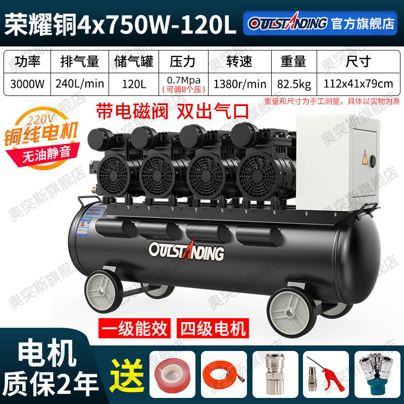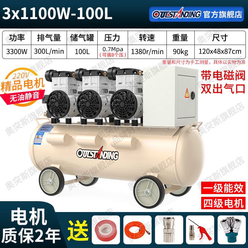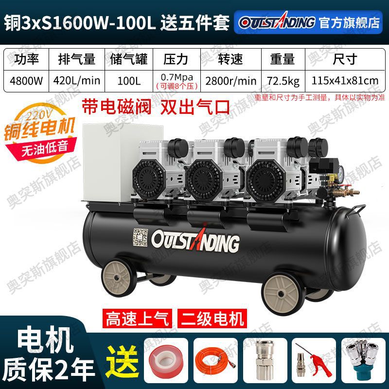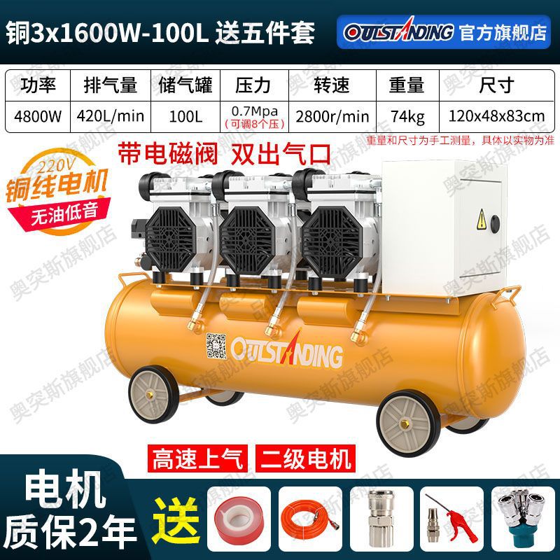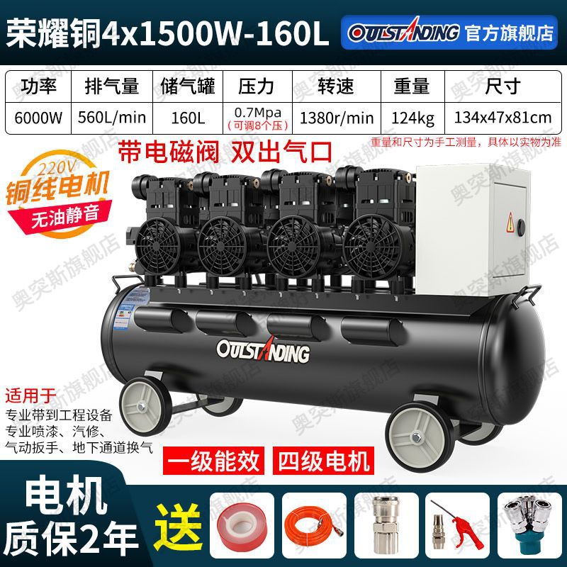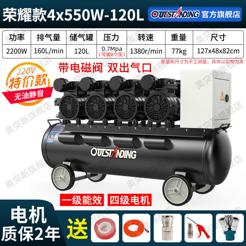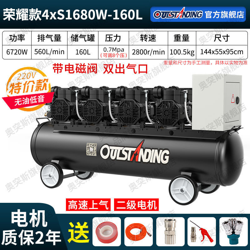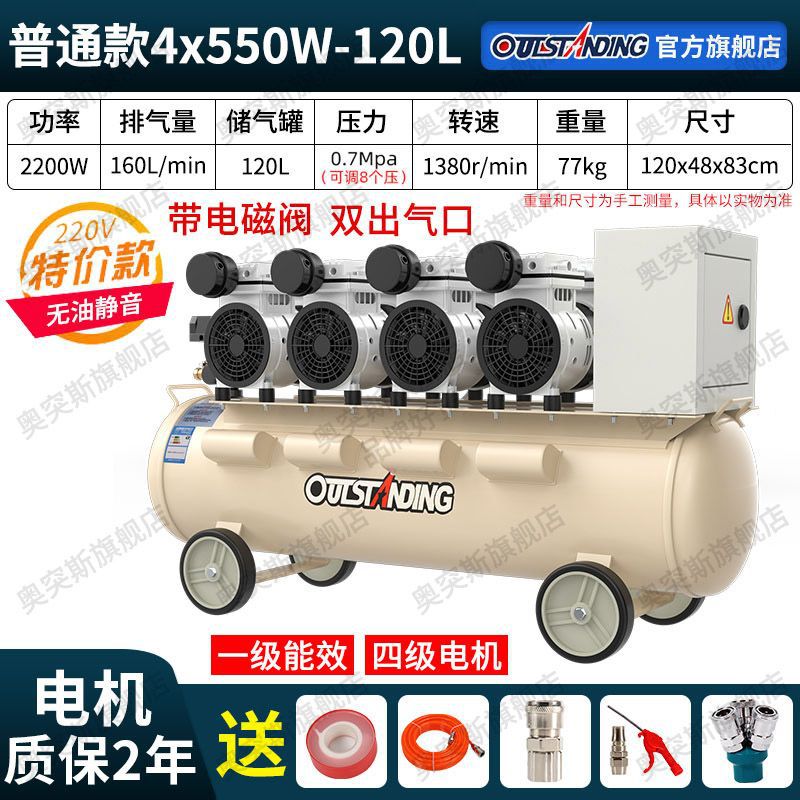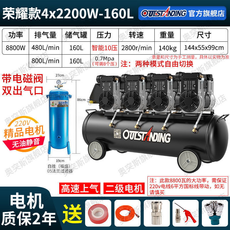 대형 공기 압축기 오일이없는 공기 압축기 고압 공기 펌프 산업 등급 220v 대형 자동 수리 도장스토어 가기