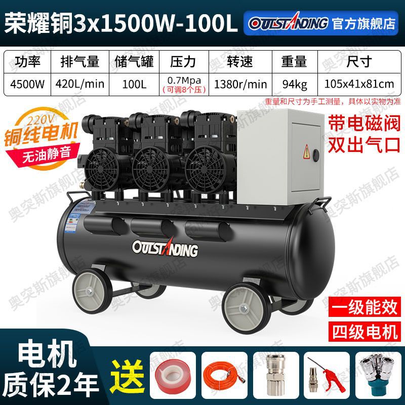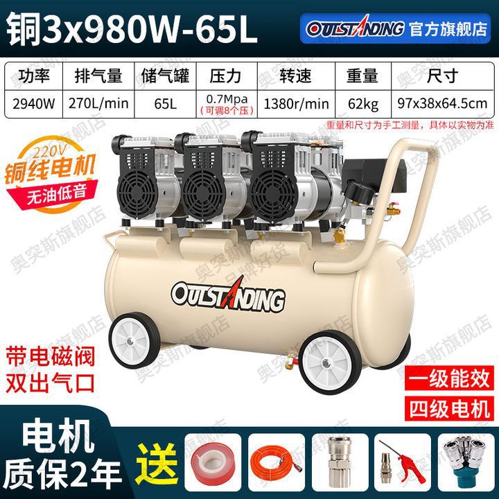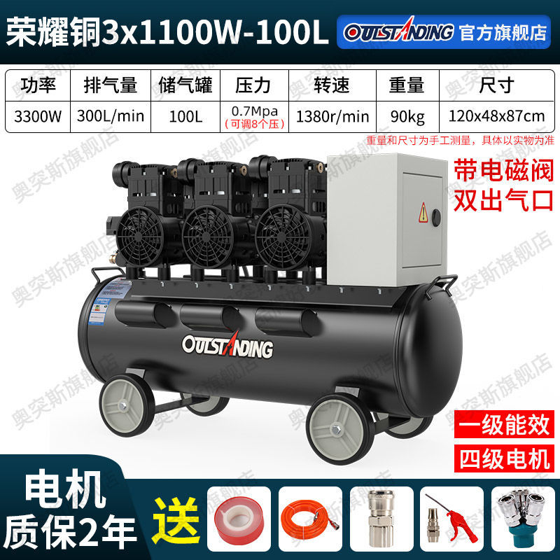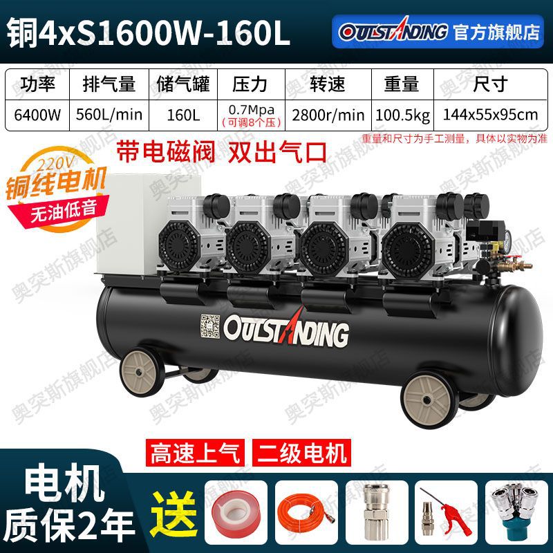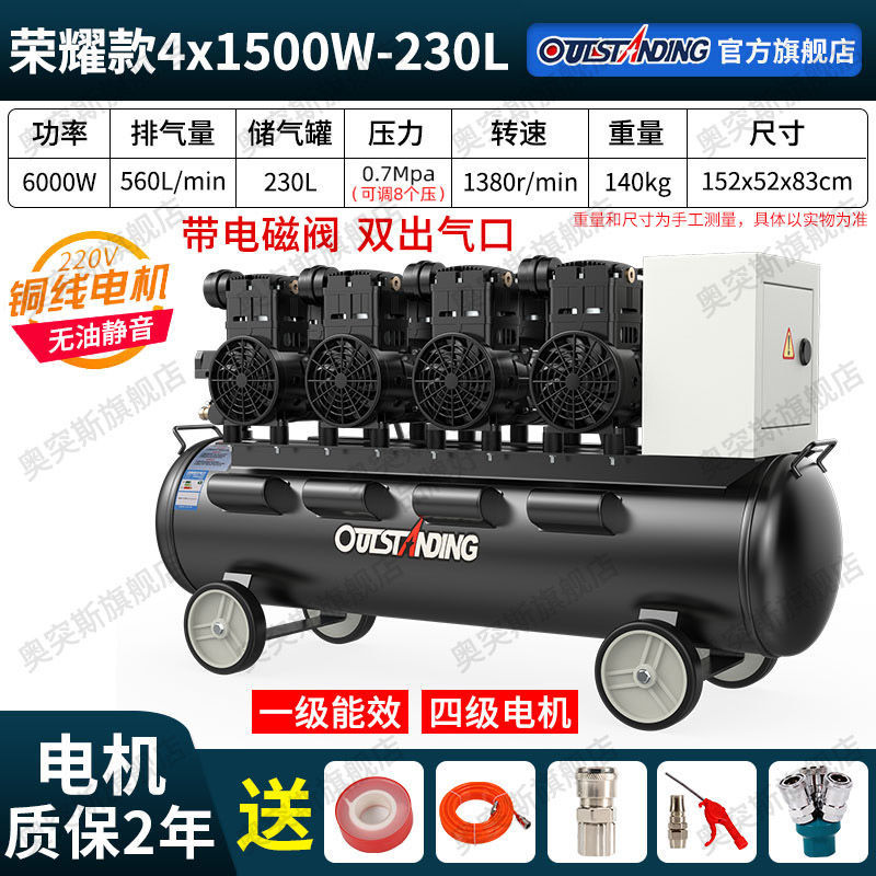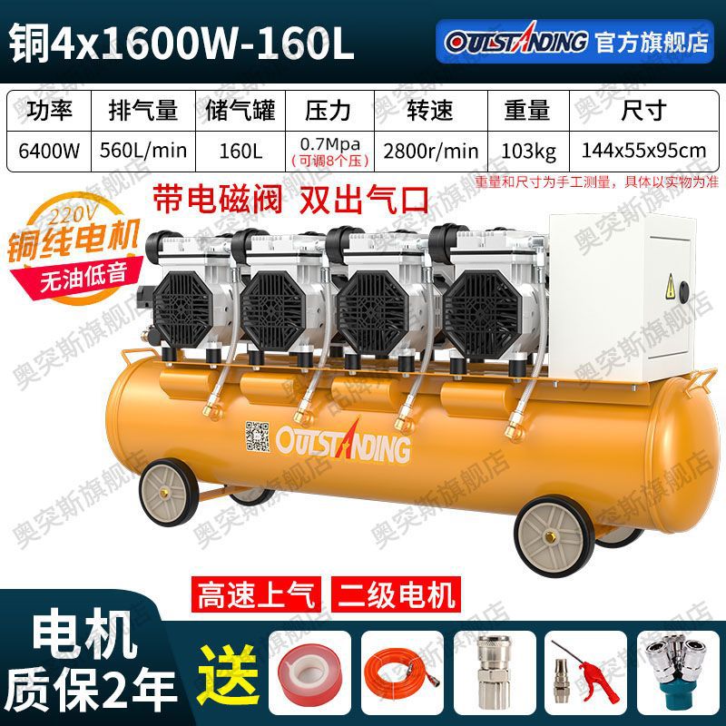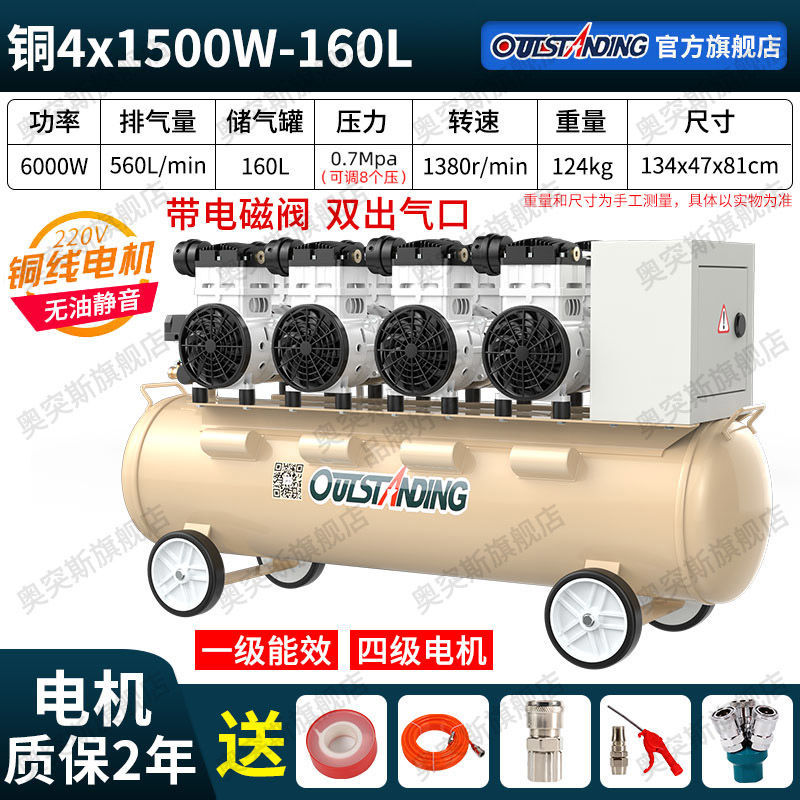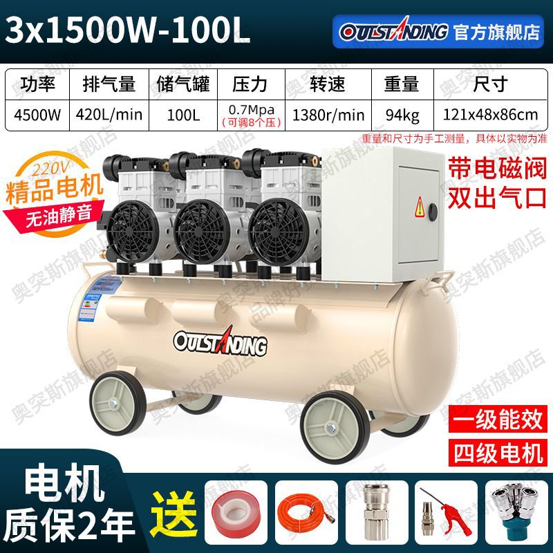 대형 공기 압축기 오일이없는 공기 압축기 고압 공기 펌프 산업 등급 220v 대형 자동 수리 도장스토어 가기