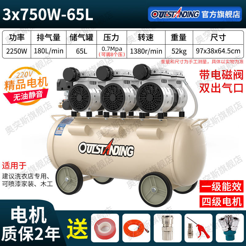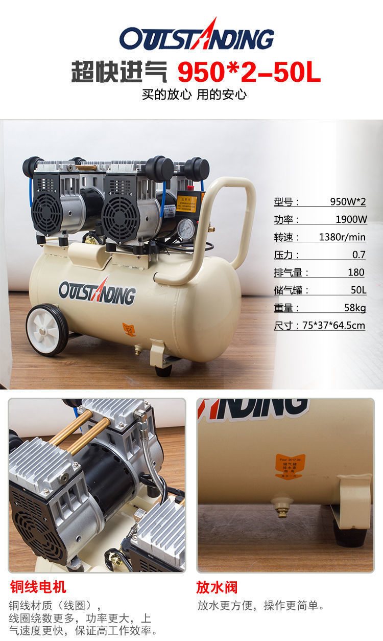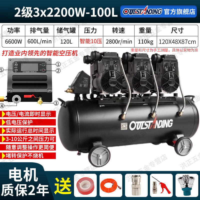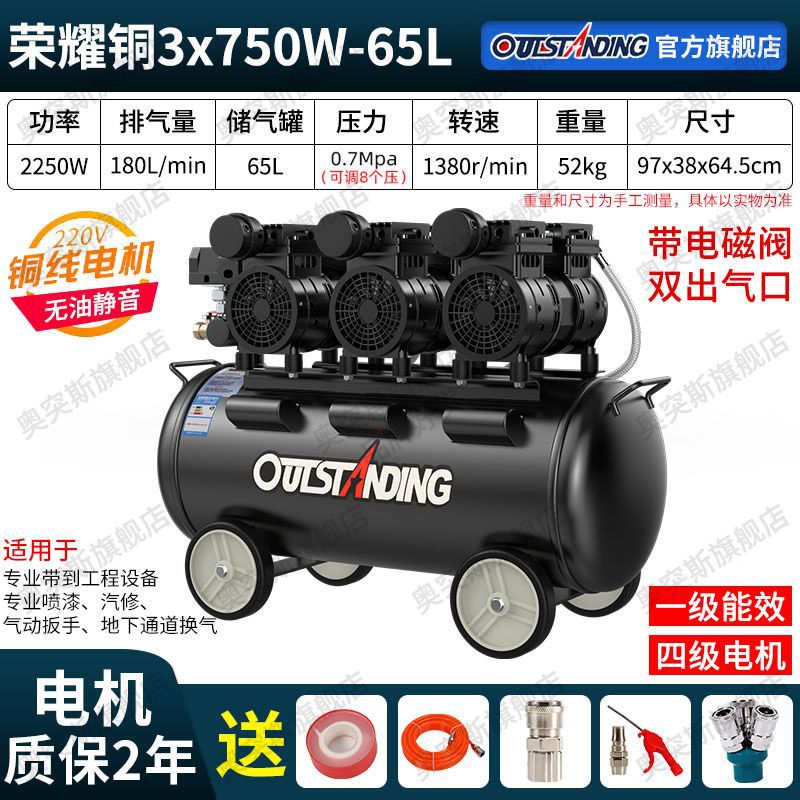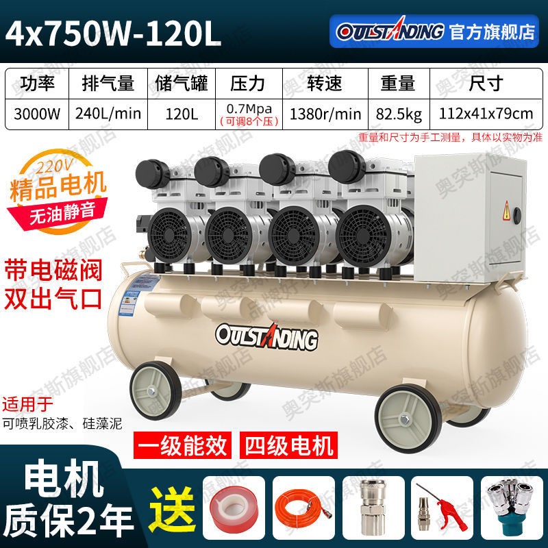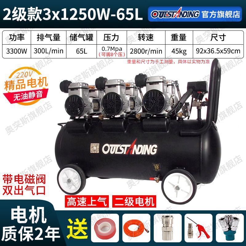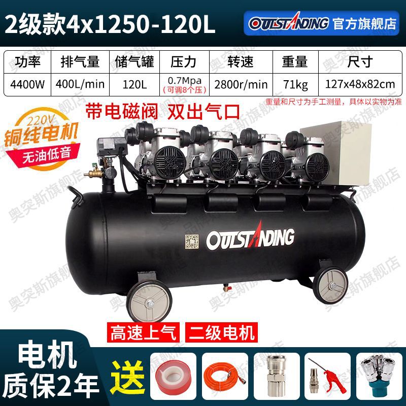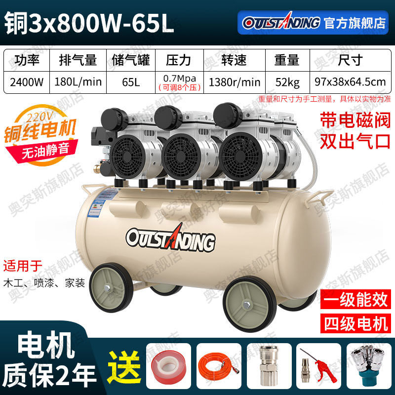 대형 공기 압축기 오일이없는 공기 압축기 고압 공기 펌프 산업 등급 220v 대형 자동 수리 도장스토어 가기