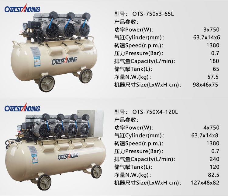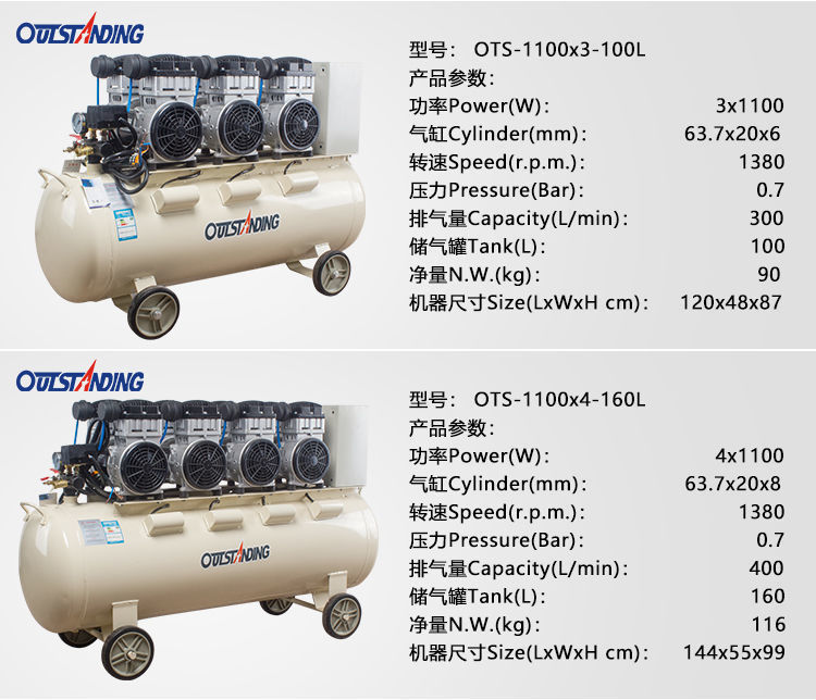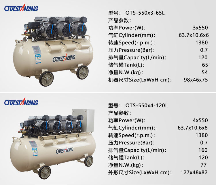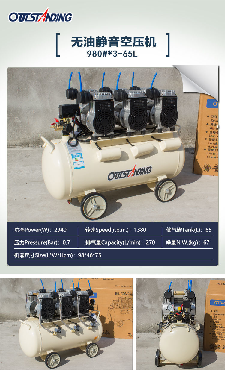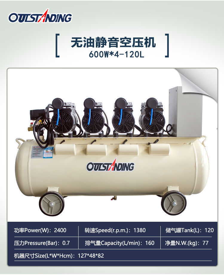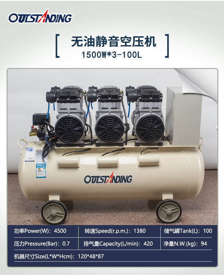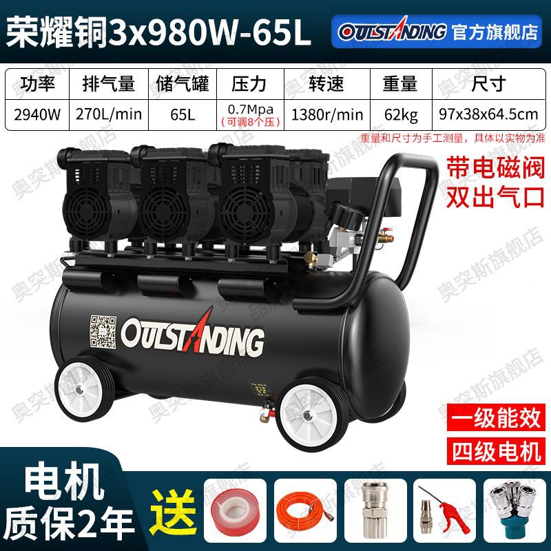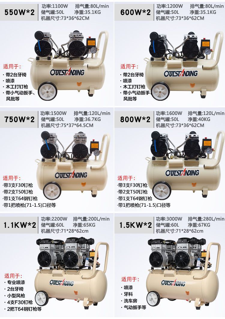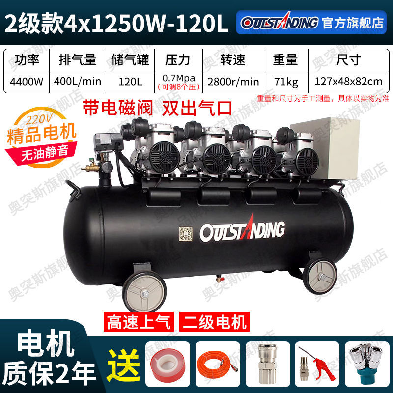 대형 공기 압축기 오일이없는 공기 압축기 고압 공기 펌프 산업 등급 220v 대형 자동 수리 도장스토어 가기