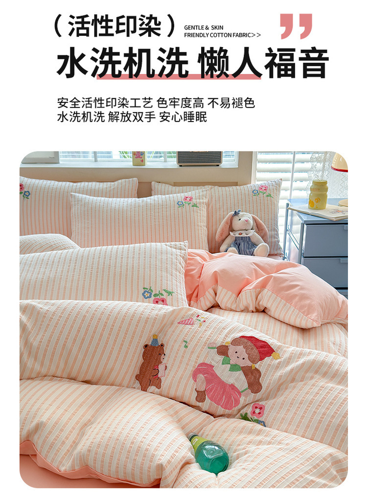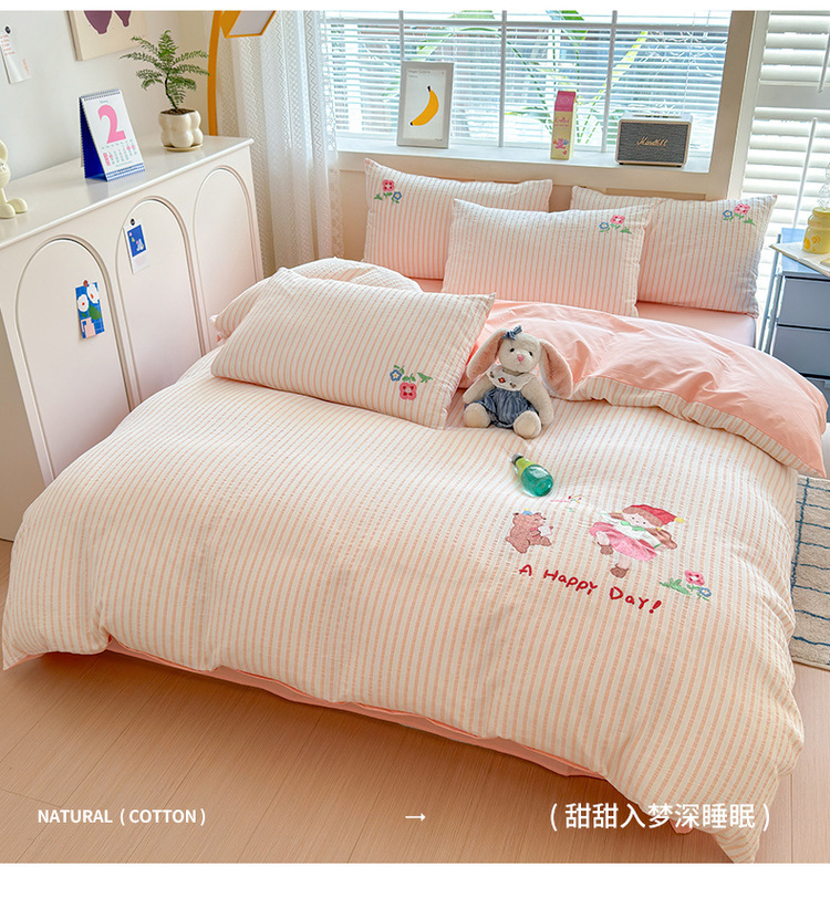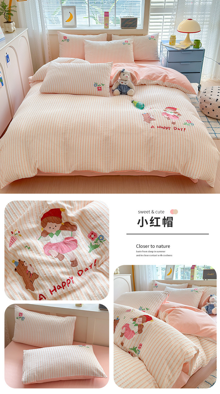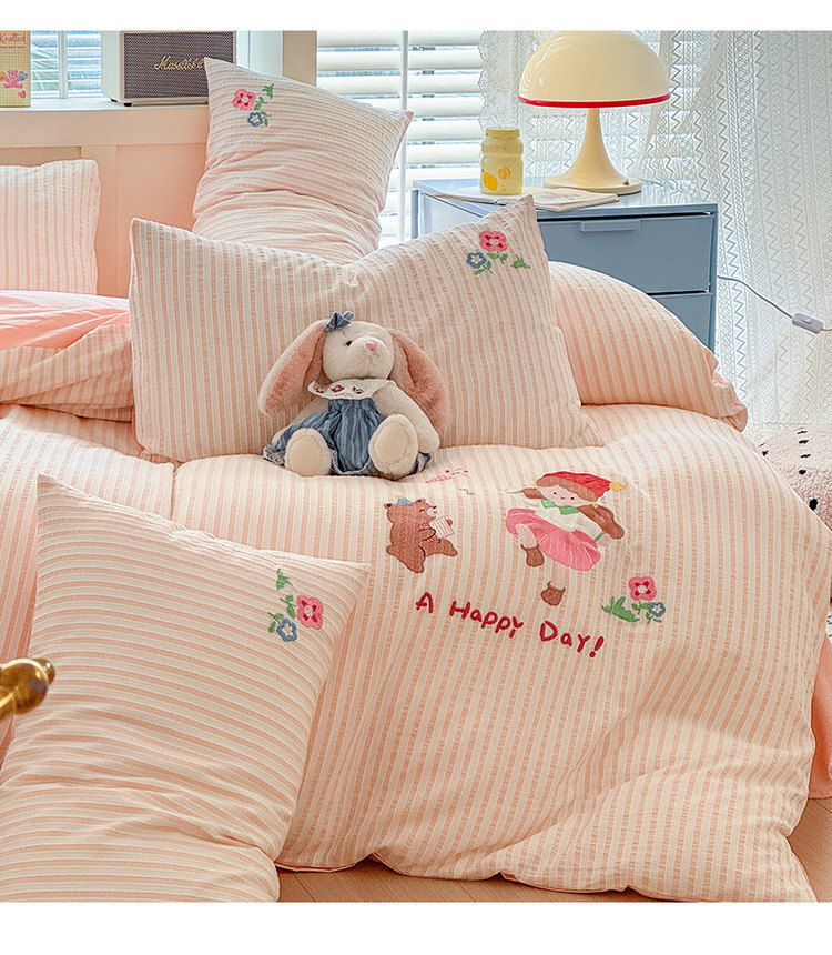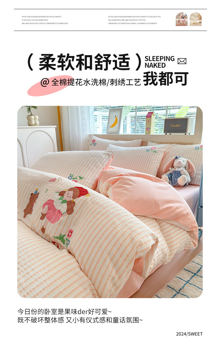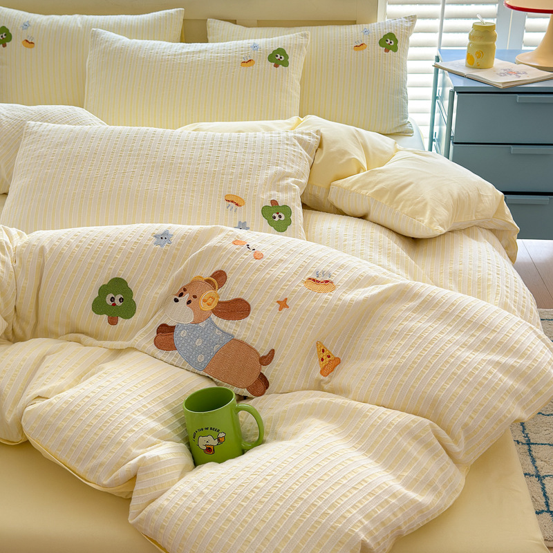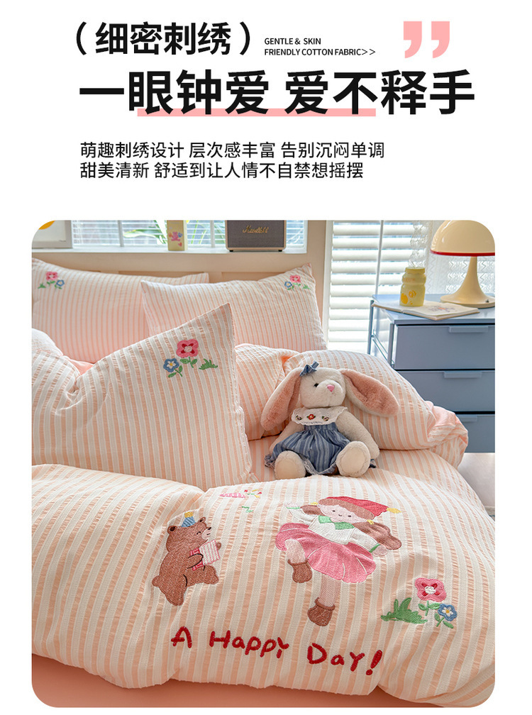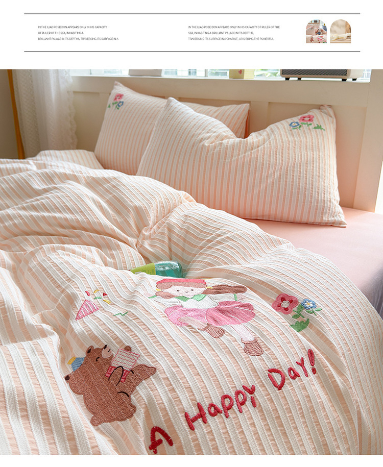 귀여운 만화 100 면 세척 코튼 침대 4 피스 세트 인 스타일 코튼 자카드 퀼트 커버 침대 시트 자수 침대 시트스토어 가기