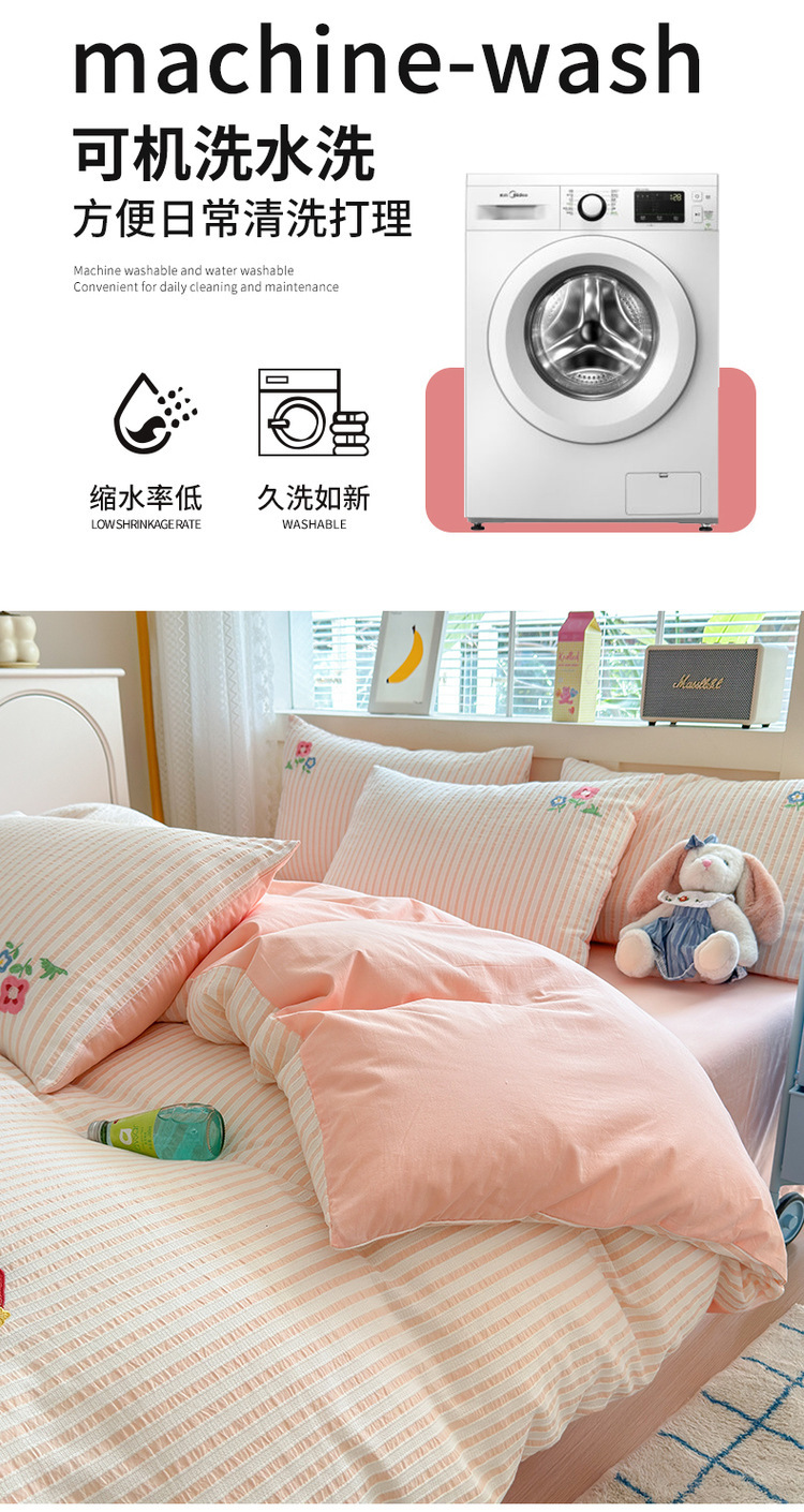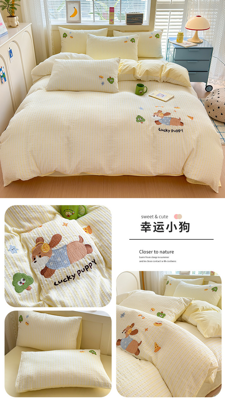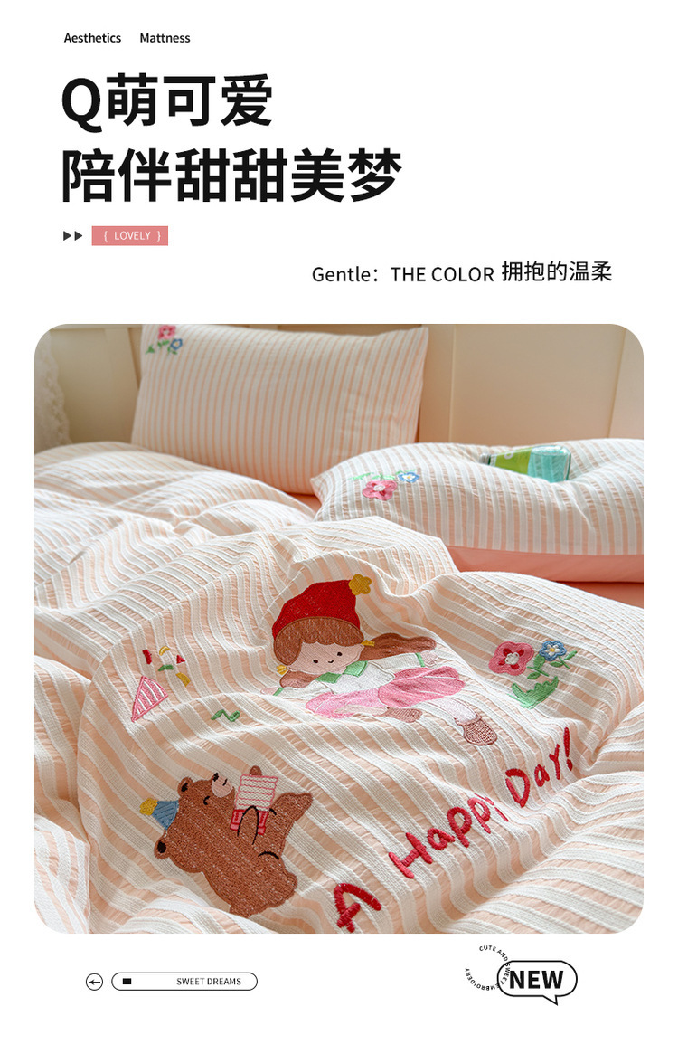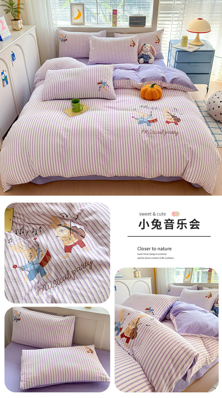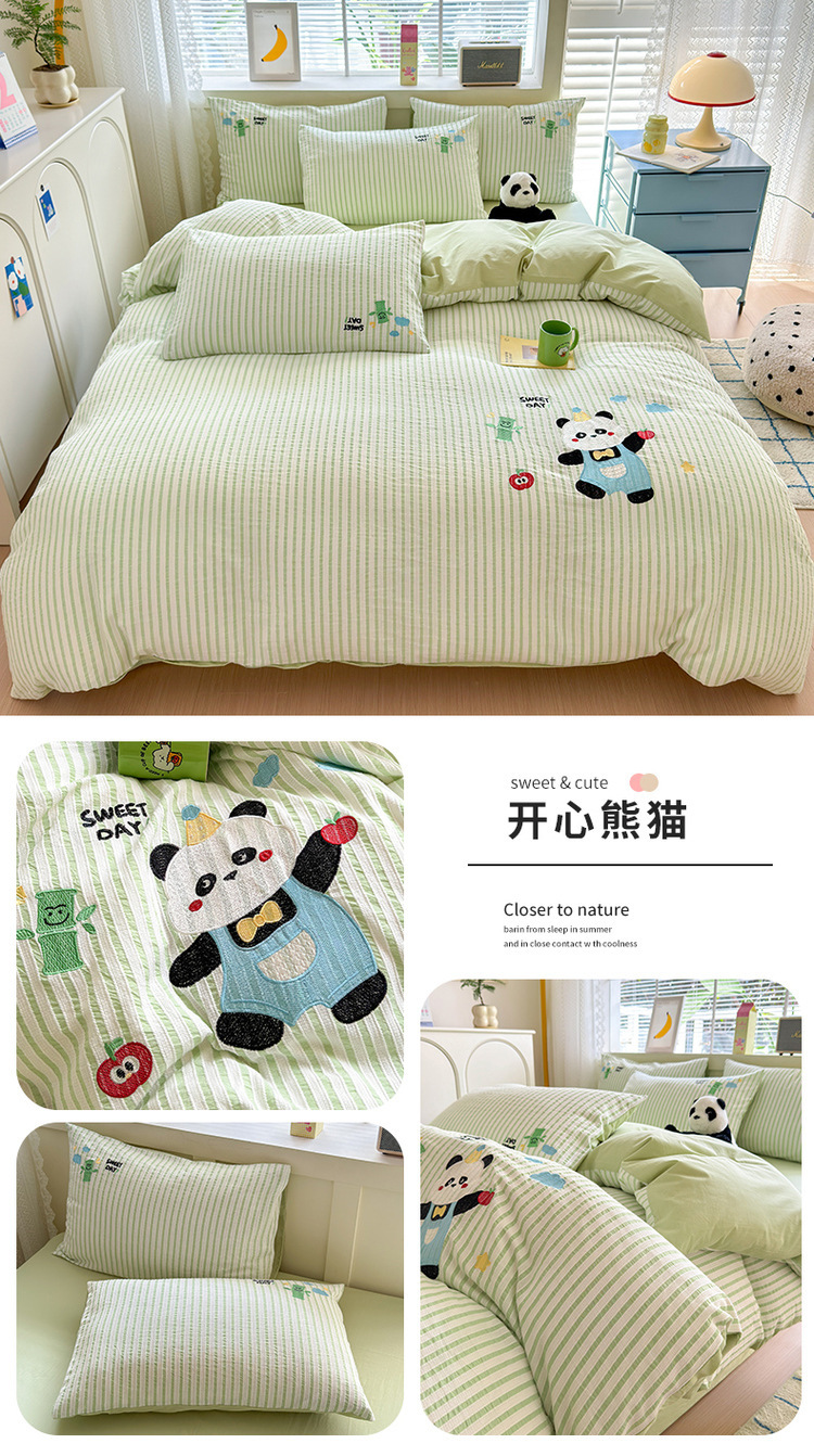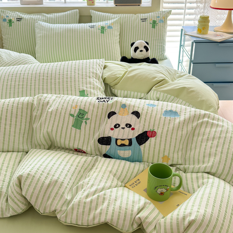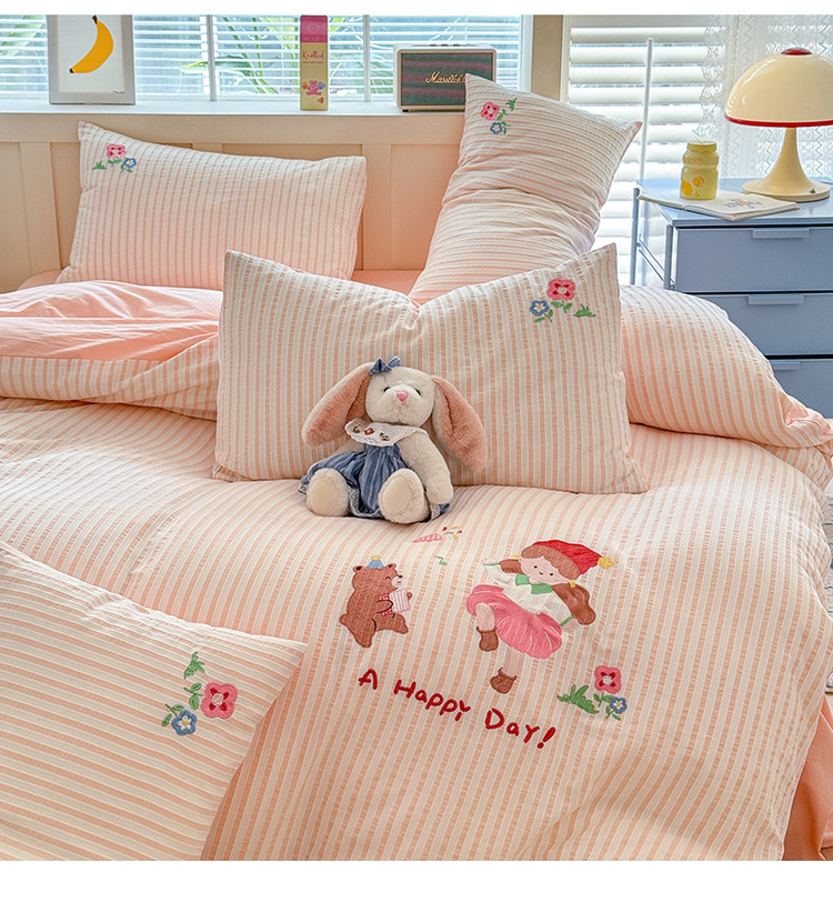 귀여운 만화 100 면 세척 코튼 침대 4 피스 세트 인 스타일 코튼 자카드 퀼트 커버 침대 시트 자수 침대 시트스토어 가기