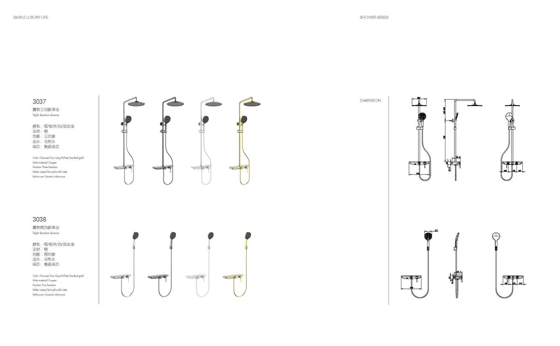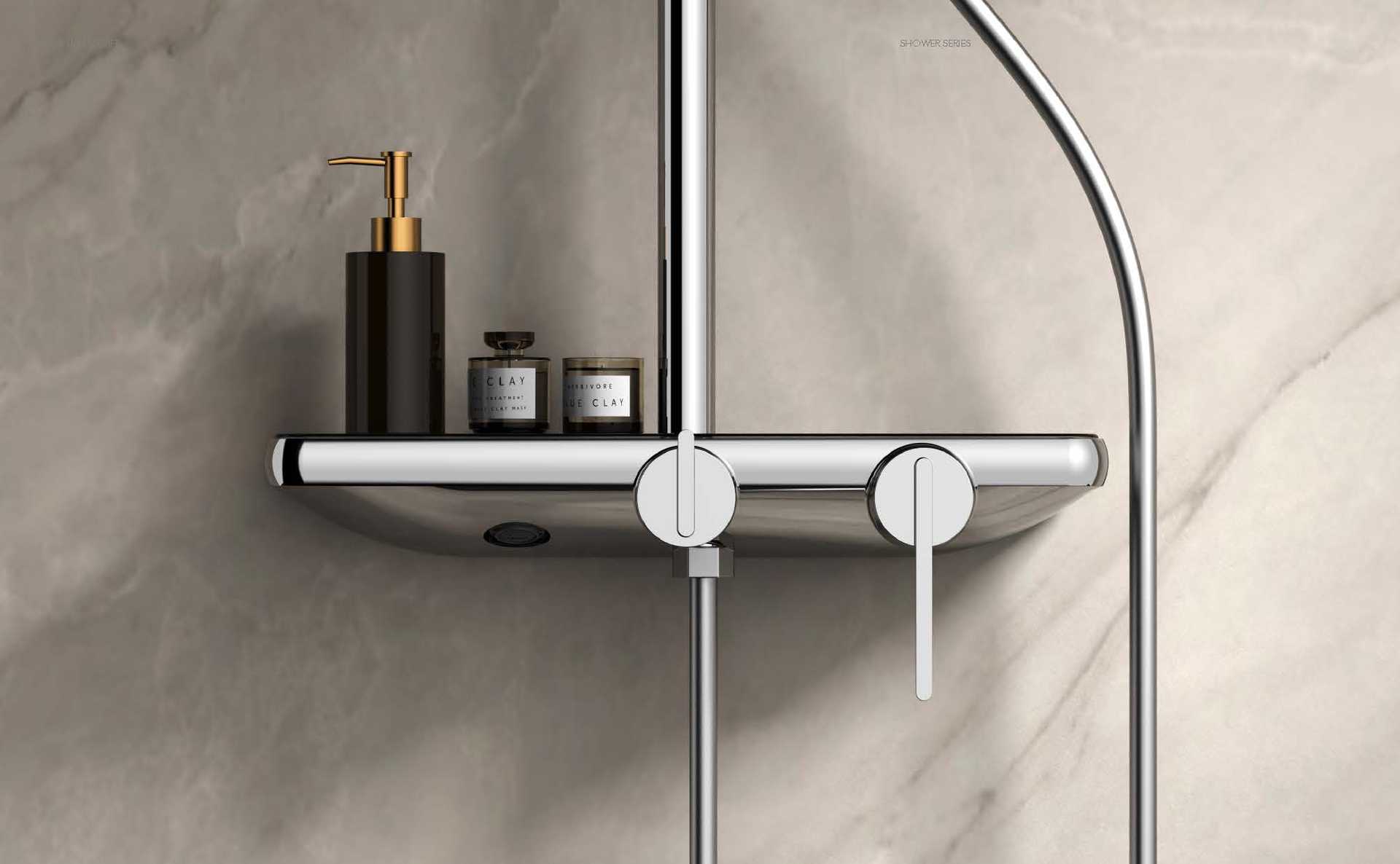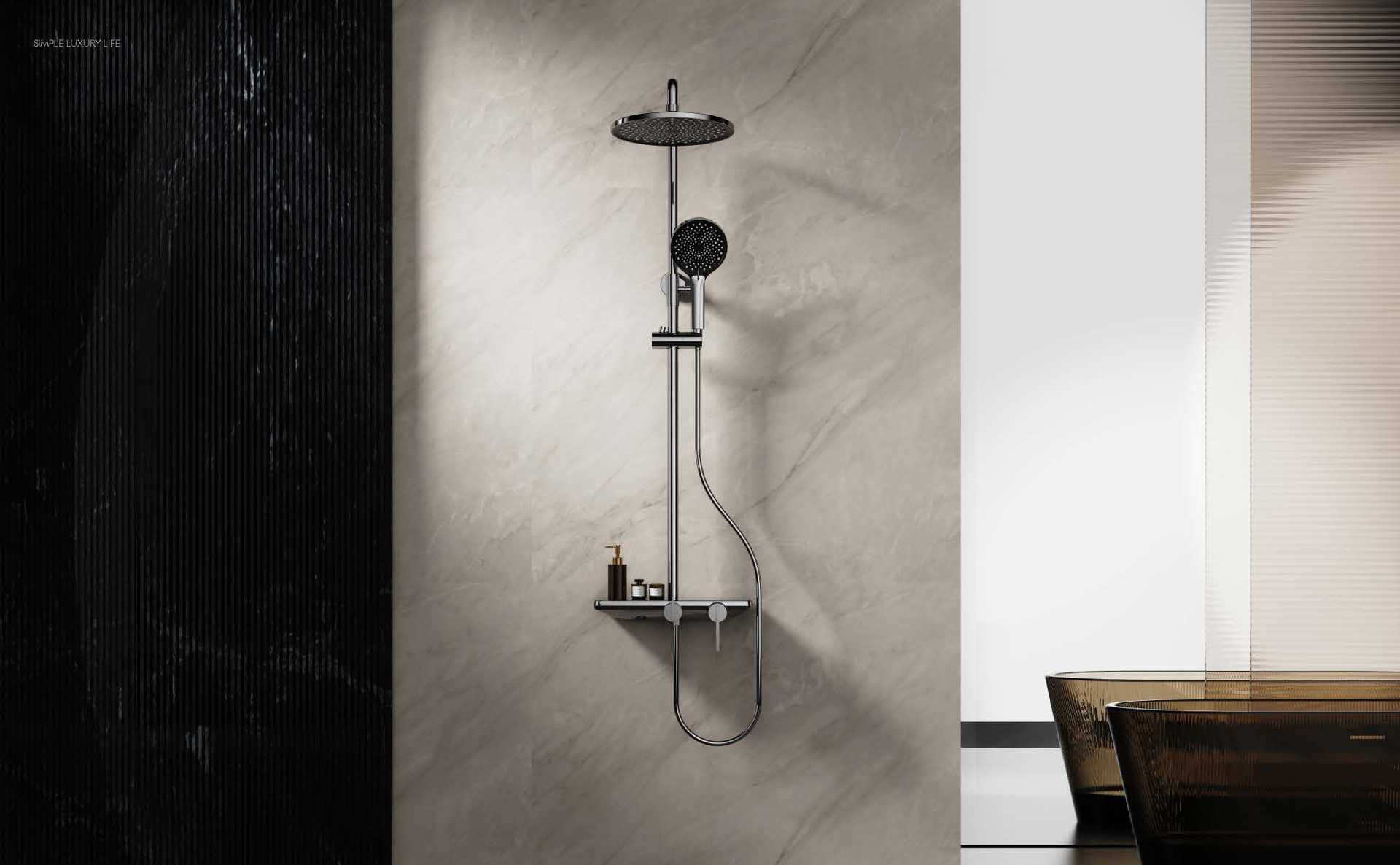 새로운 스타일의 샤워 세트 화이트 샤워 세트 호텔 욕실 황동 랙 샤워 빛과 끈끈한 크롬 도금 샤워
