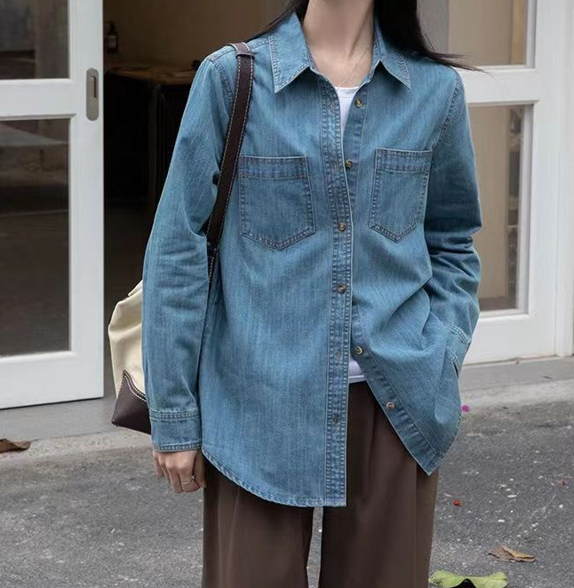 프랑스 레트로 어깨 데님 셔츠 간단한 옷깃 캐주얼 셔츠 패션 통근 느슨한 재킷 봄 새로운스토어 가기