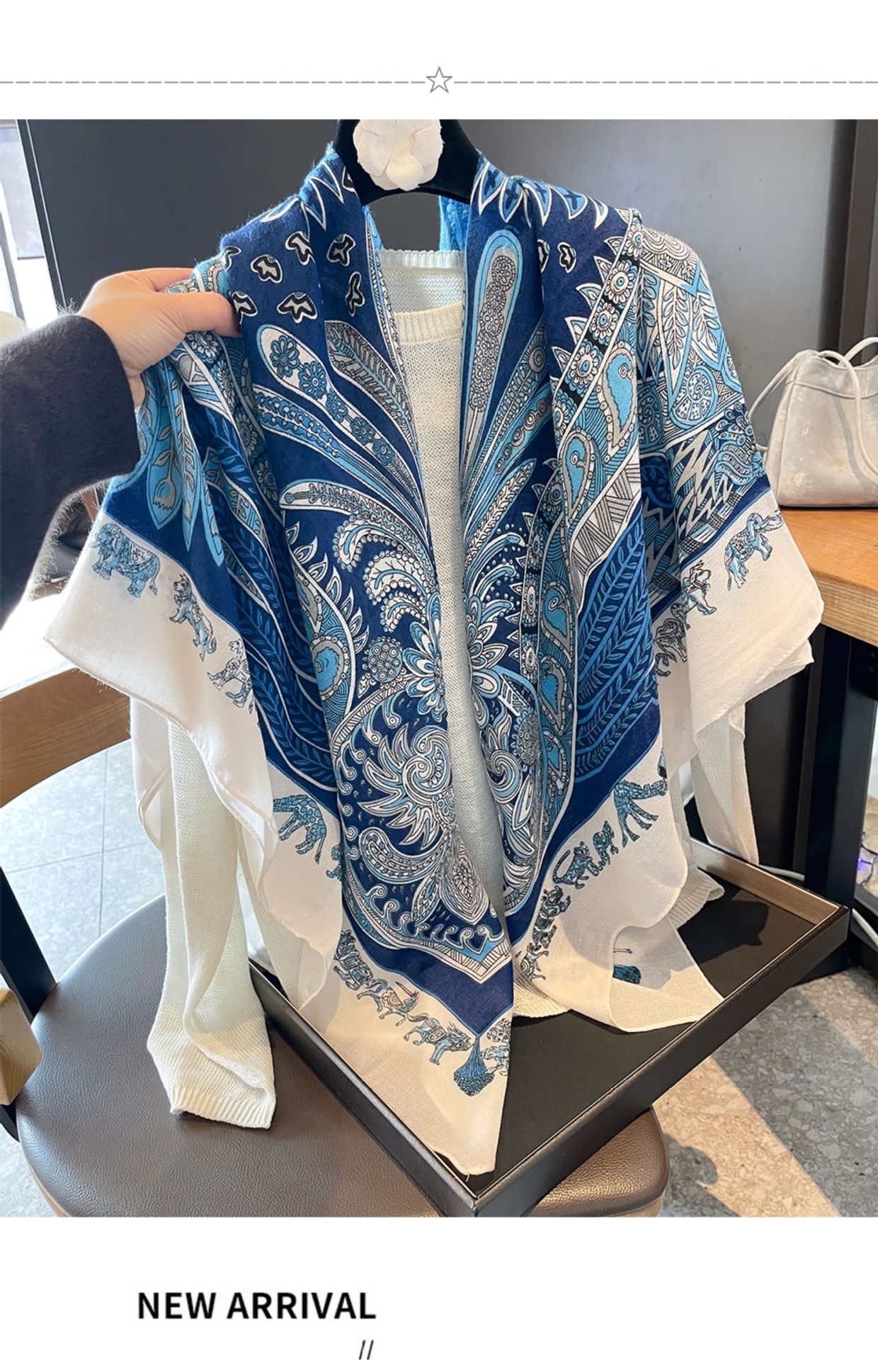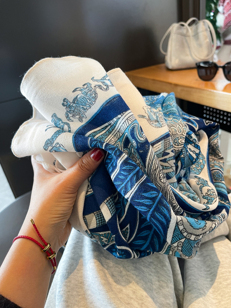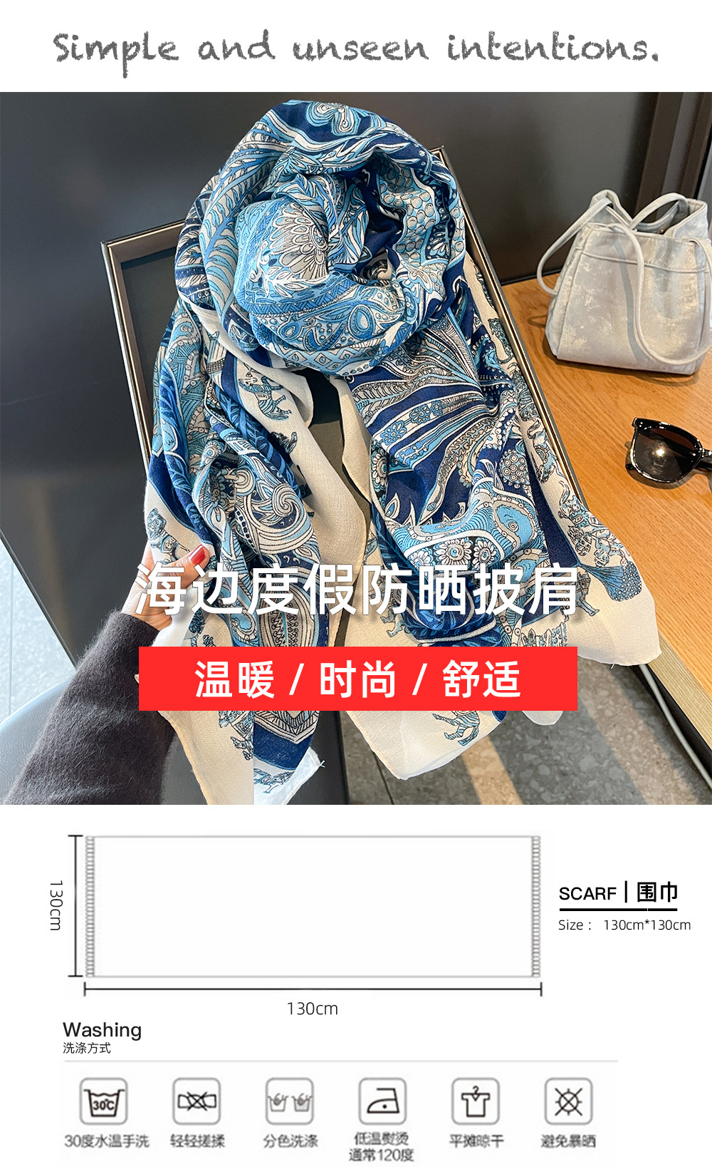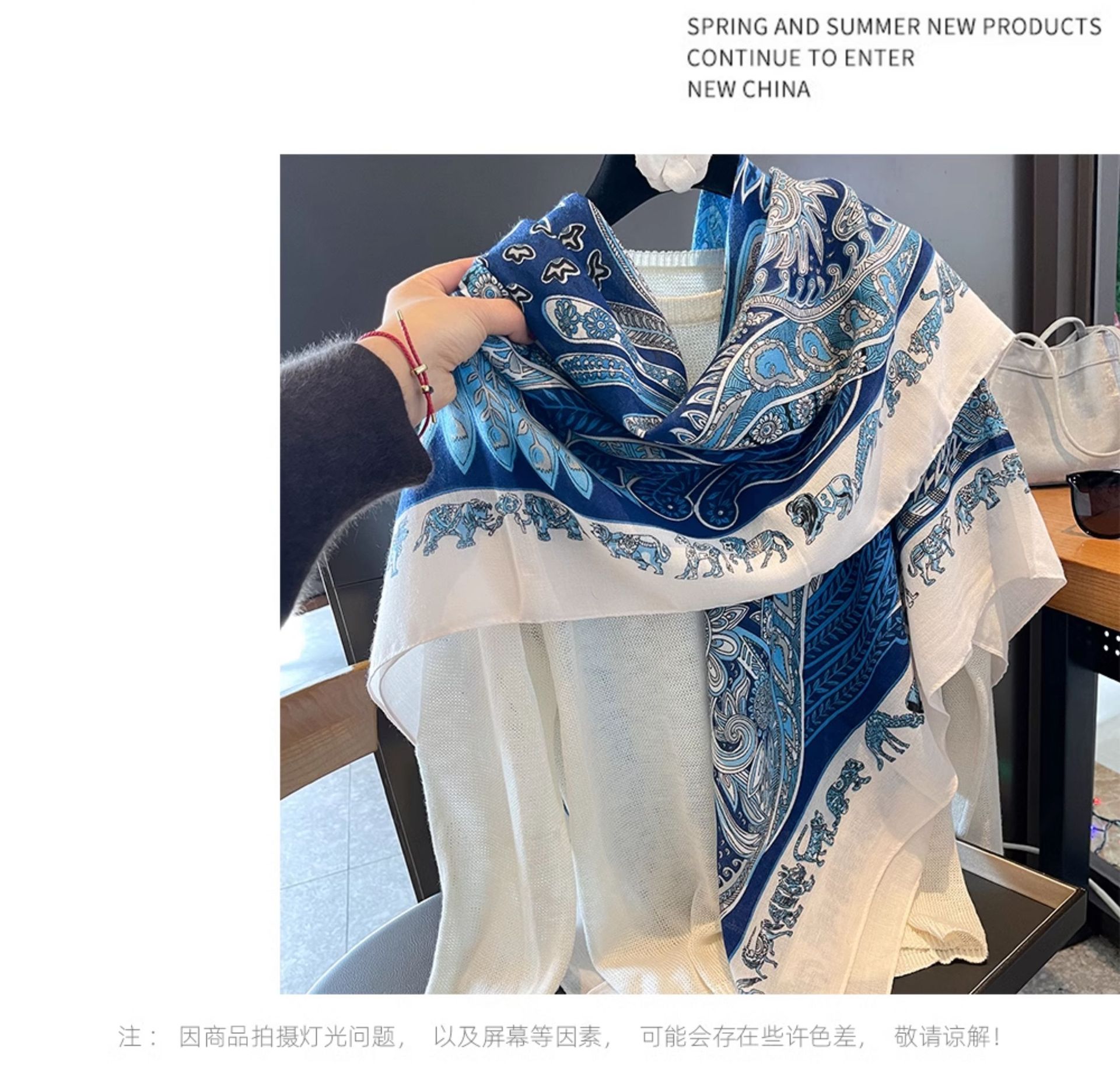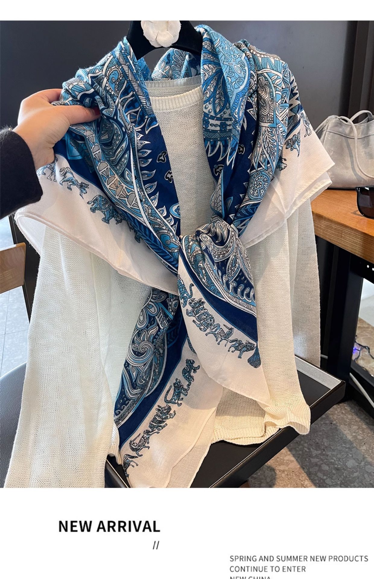 皇家蓝羽亚麻手感围巾女韩版百搭防晒大方巾25春夏空调房披肩两用