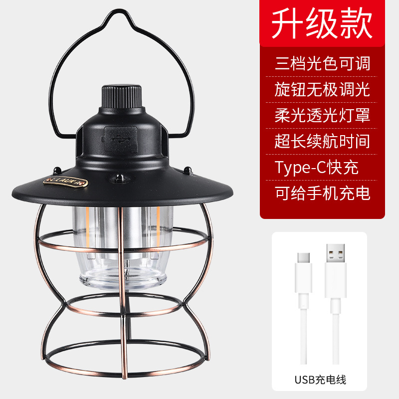 • 레트로 캠핑 램프 - 무한 디밍 - 배터리 수명 6-72H
