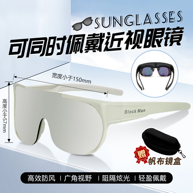 • [근시용 안경 착용 가능] 화이트 프레임 그레이 렌즈, 안경 케이스 포함