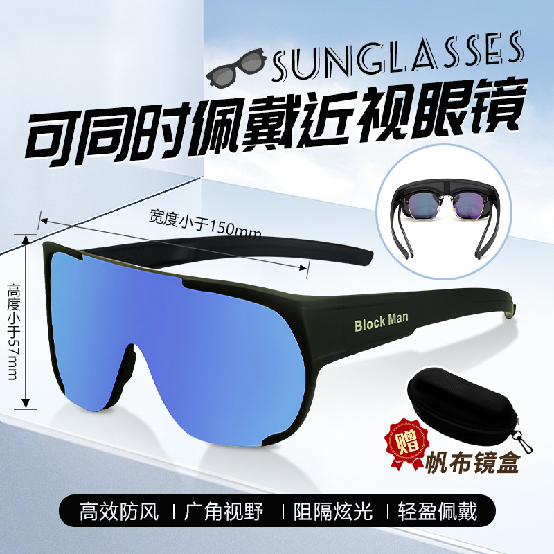 • [근시용 안경 착용 가능] 블랙 프레임 블루 렌즈, 안경 케이스 포함