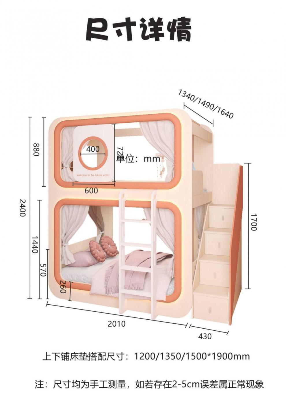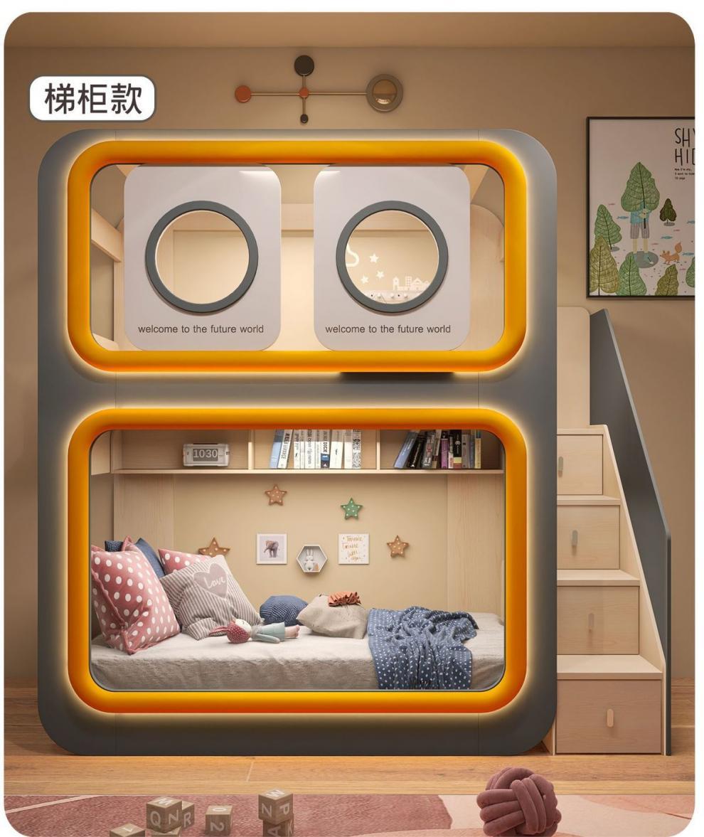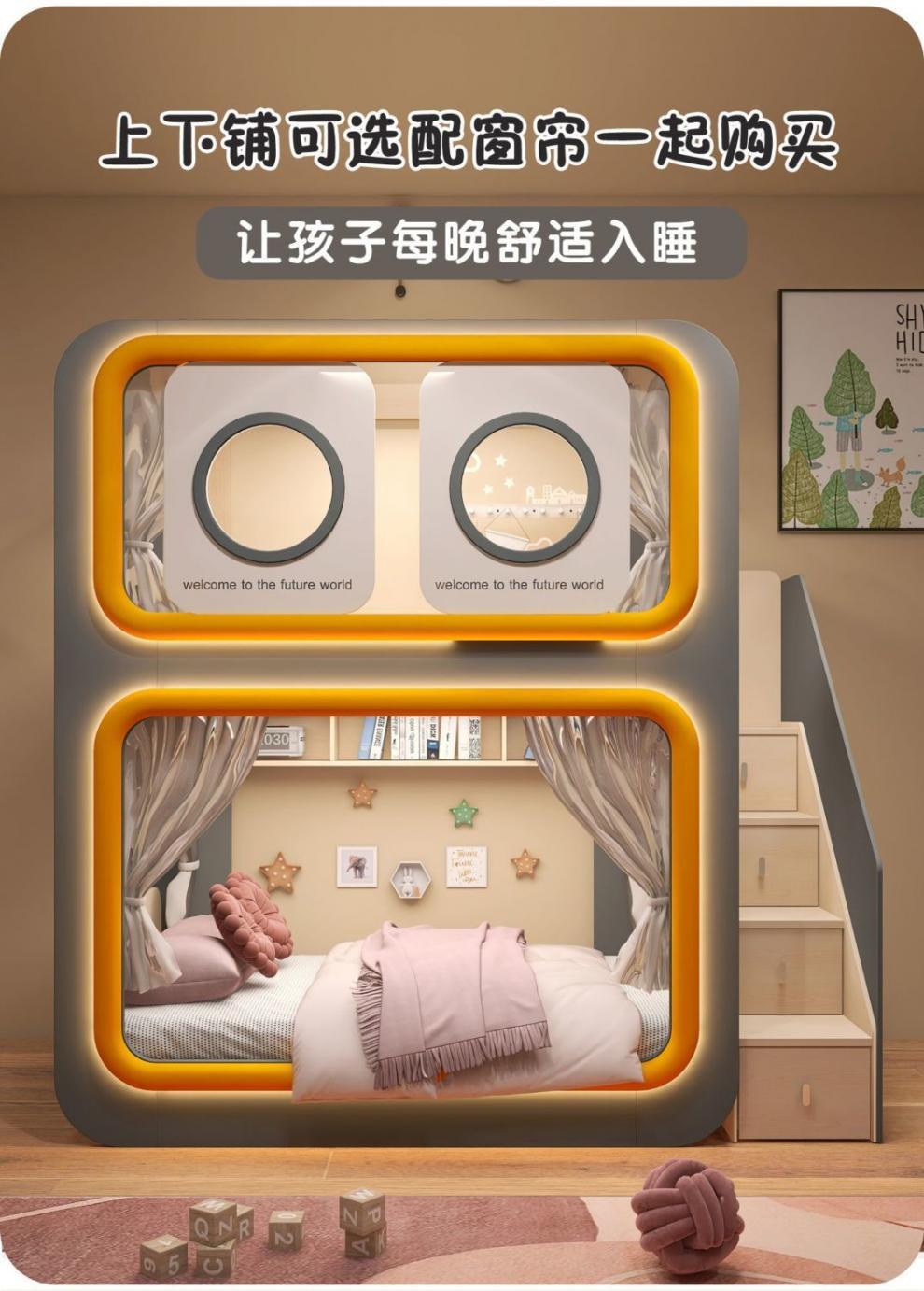 어린이 이층침대, 동일한 너비의 상하단 침대, 캐슬 프린세스 침대, 스페이스 캡슐 이층침대 공장