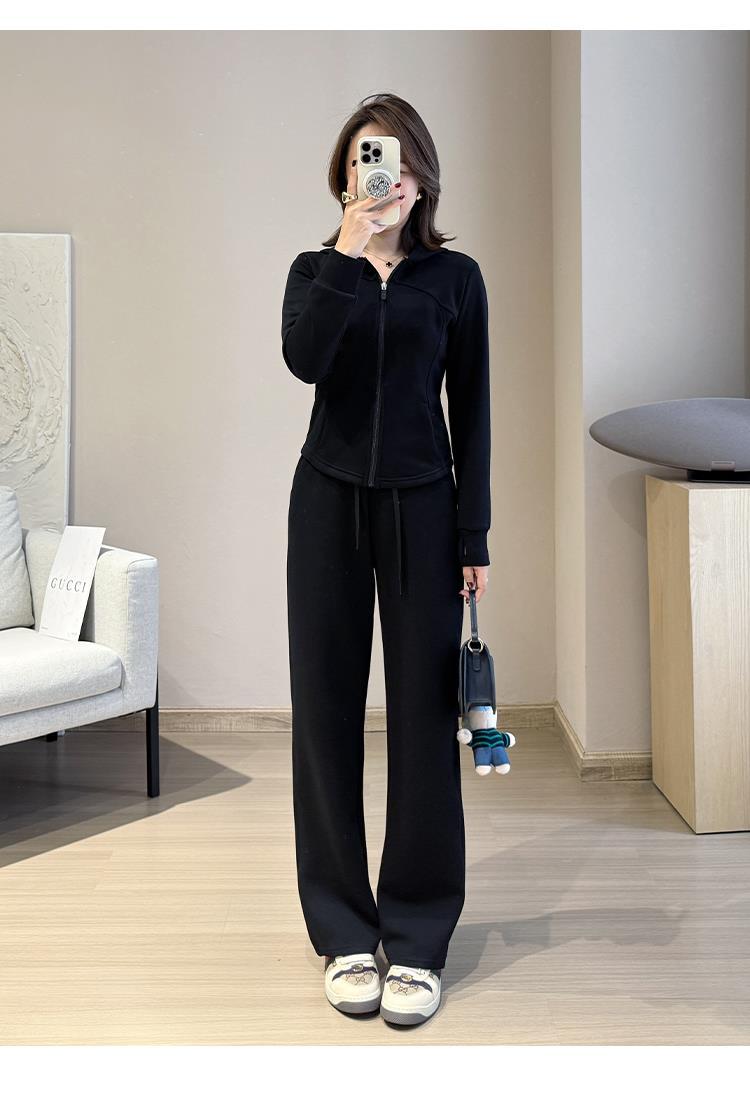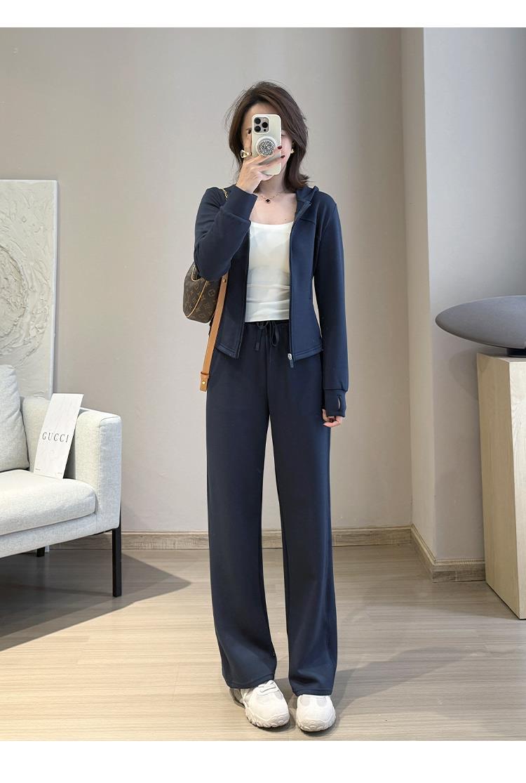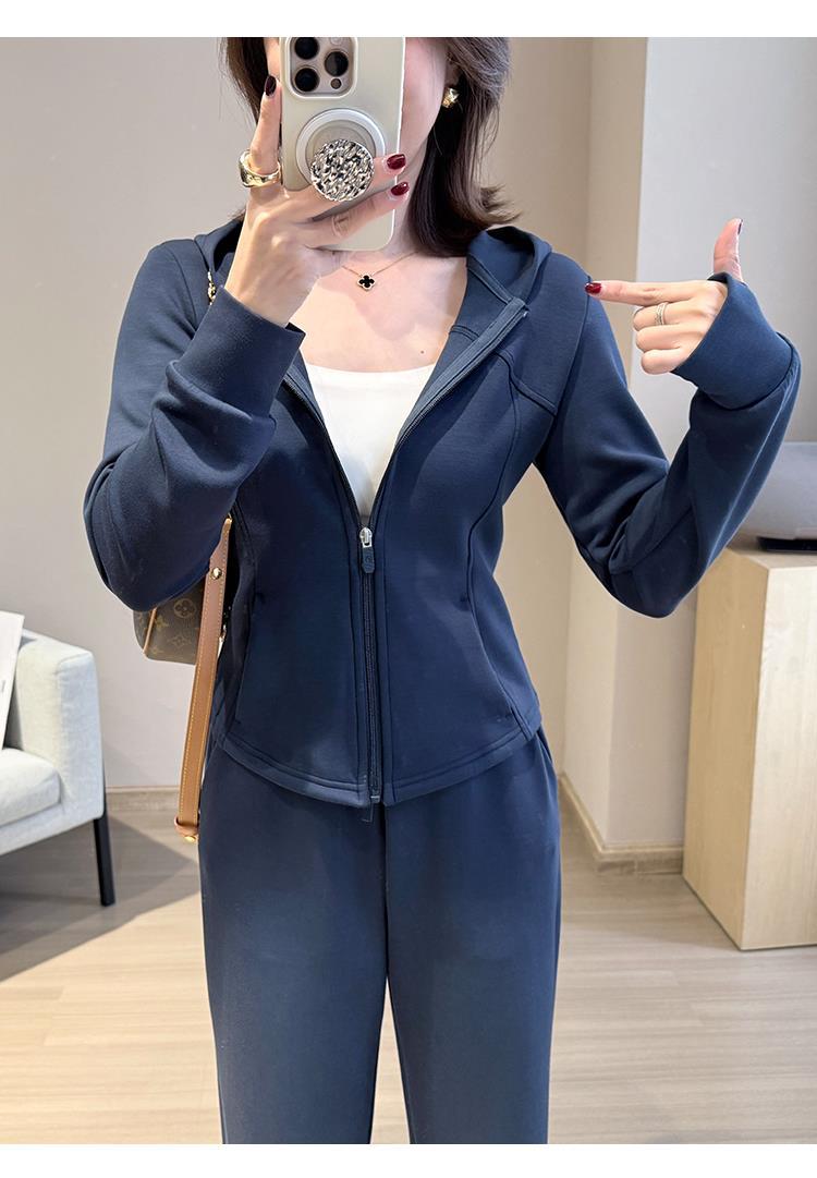 采用内里磨毛空气层面料,云感纤腰 空气层套装 挺阔有型