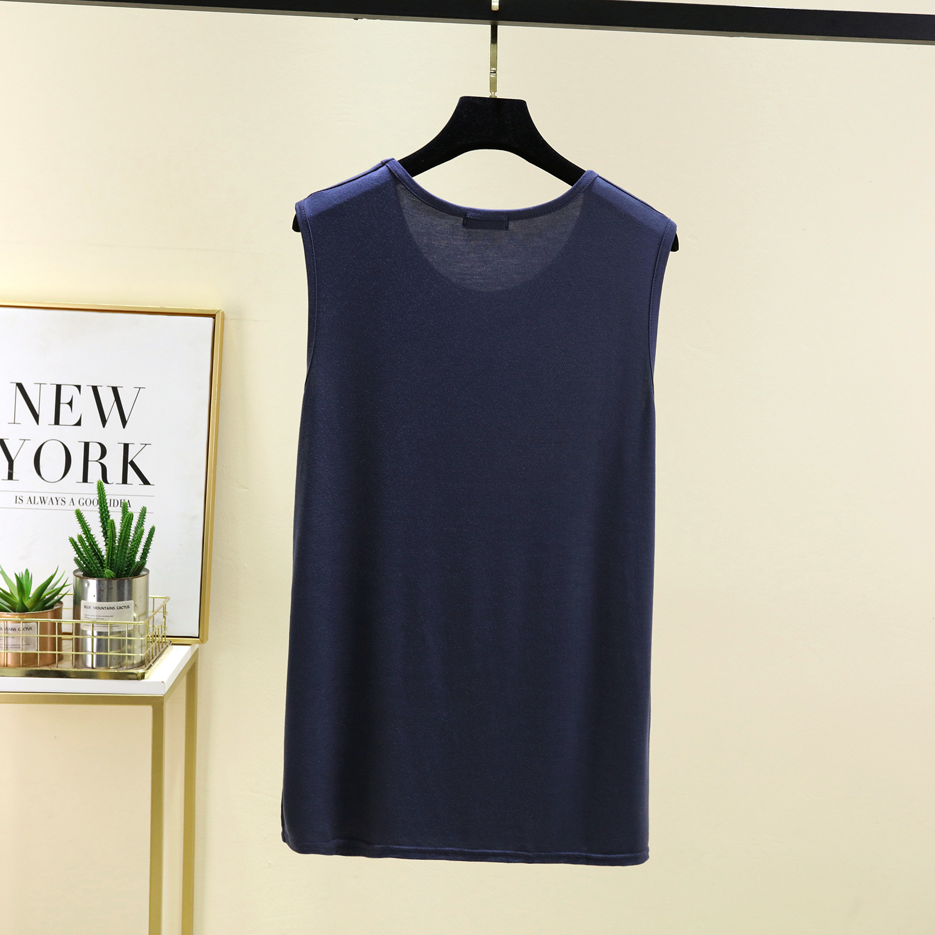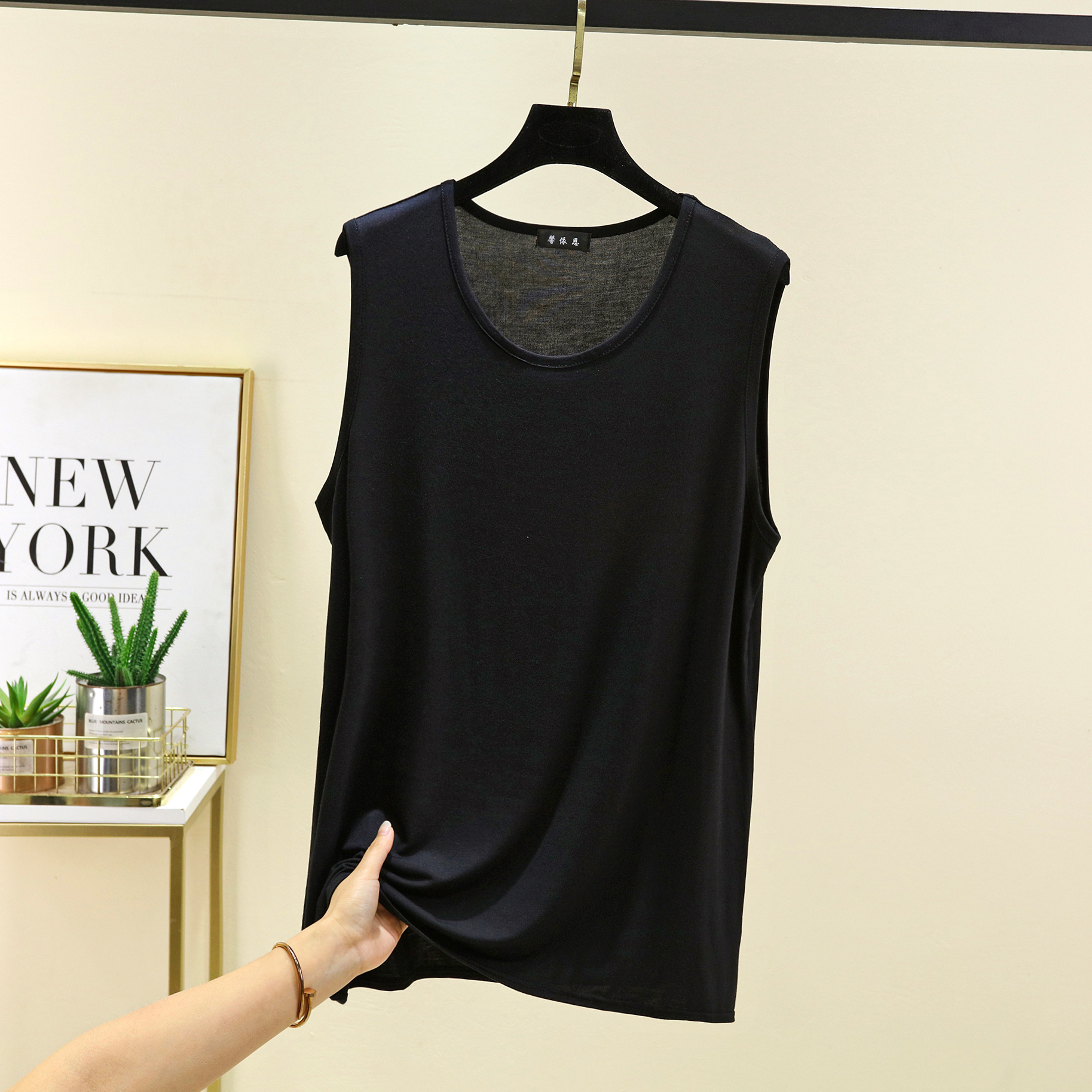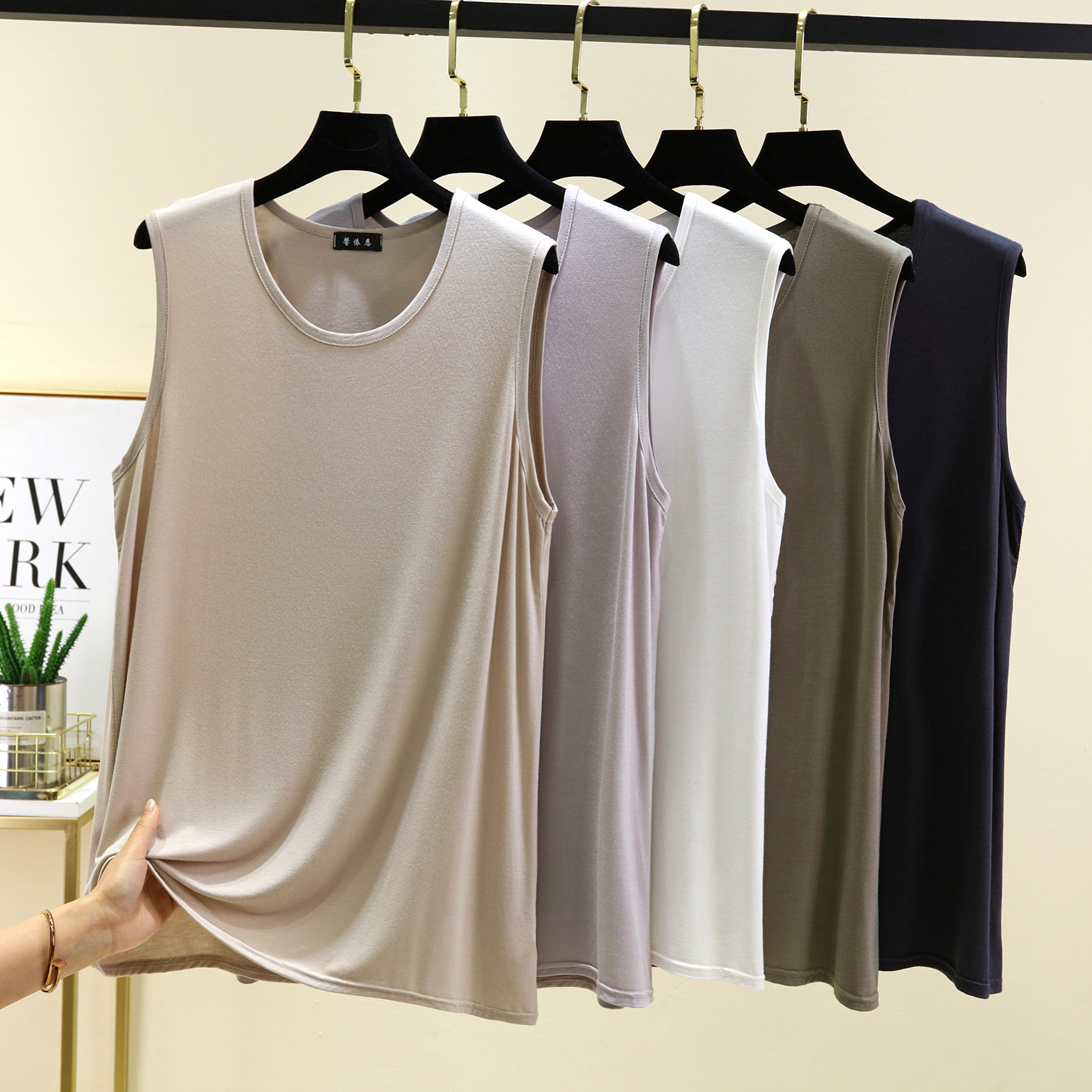 모달 루즈 조끼 남성 여름 새로운 솔리드 컬러 캐주얼 편안한 라운드 넥 원활한 바닥 탑스토어 가기