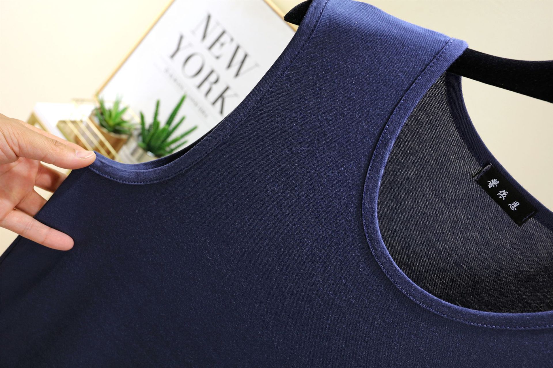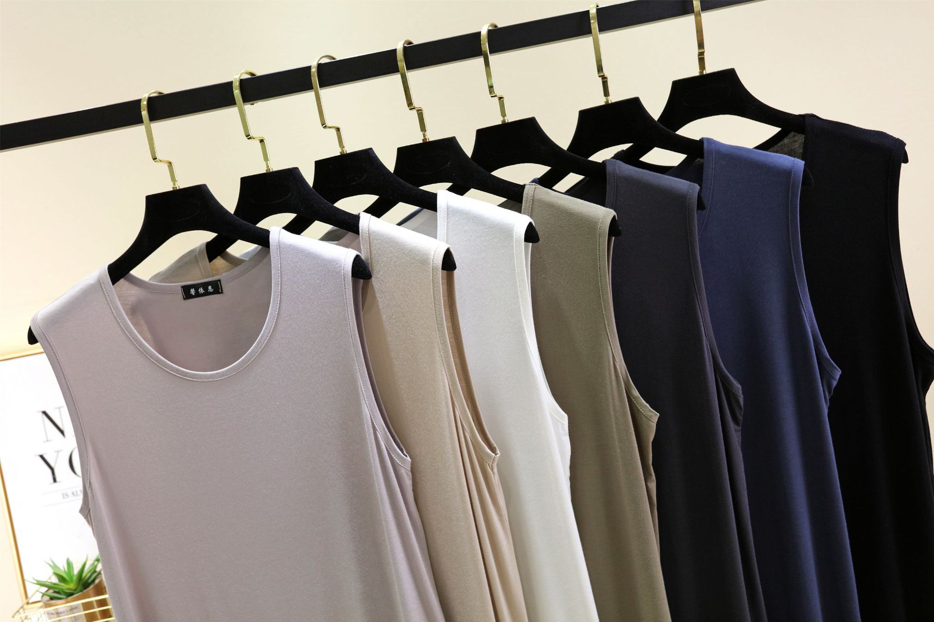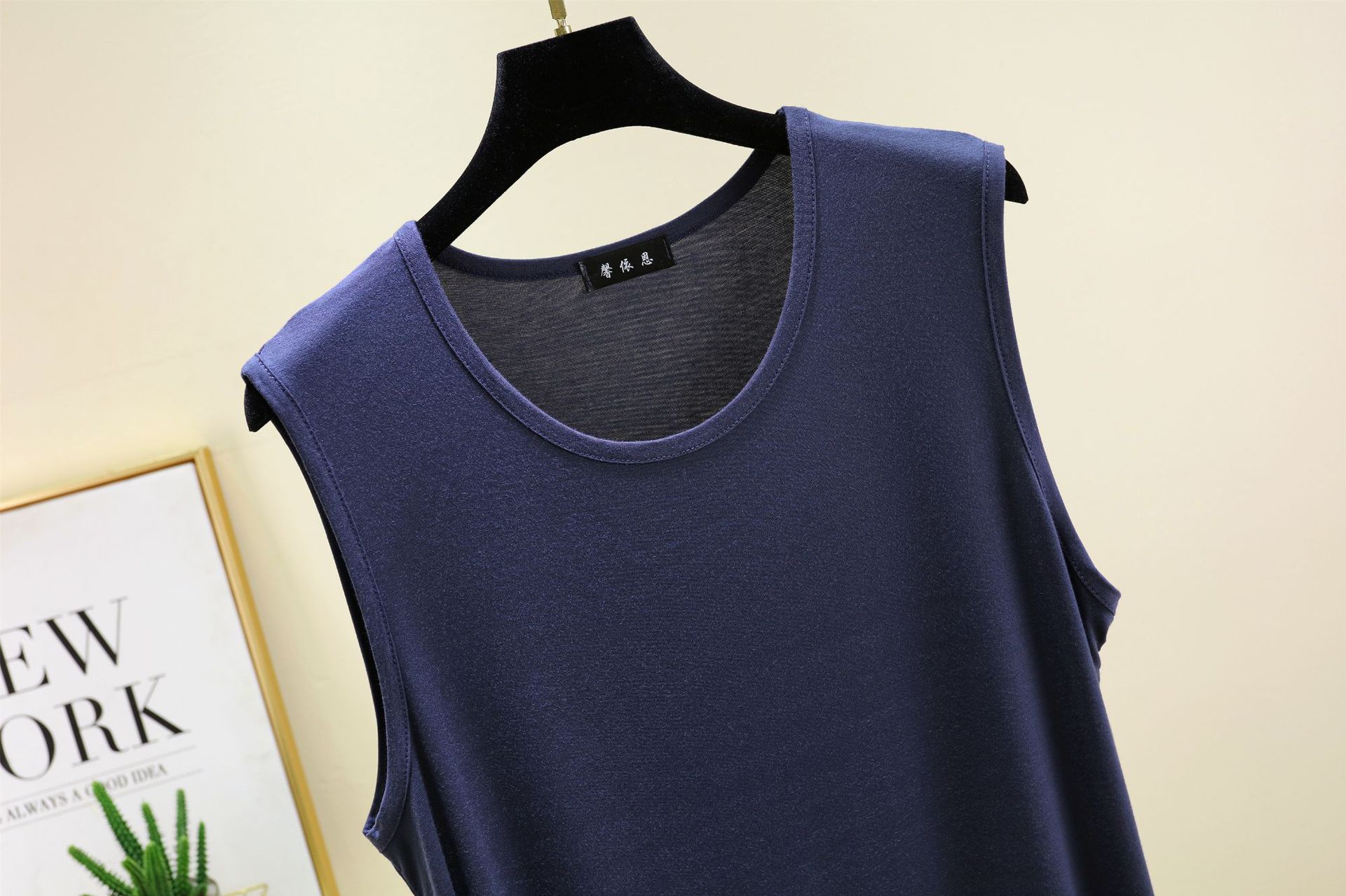 모달 루즈 조끼 남성 여름 새로운 솔리드 컬러 캐주얼 편안한 라운드 넥 원활한 바닥 탑스토어 가기