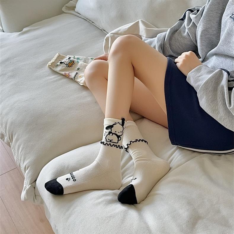 봄과 가을 새로운 도착 강아지 시리즈 귀여운 Vigor 소녀 양말 일본 스타일 만화 Ins 스타일 미드 양말스토어 가기