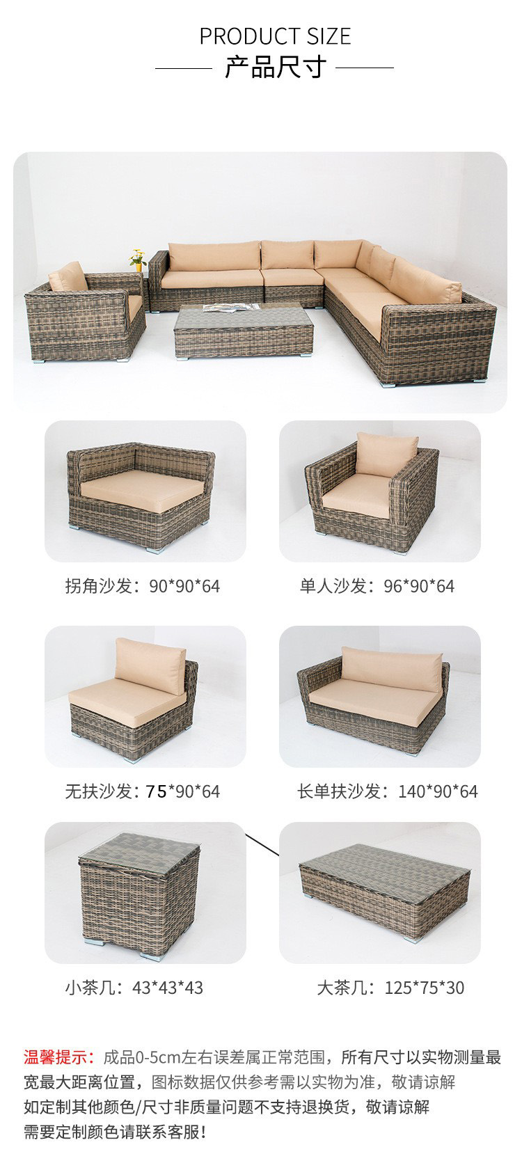 야외 레저용 PE 라탄 소파 세트 정원 파티오 소파 세트 라탄 소파 7종 세트 발코니 야외용스토어 가기