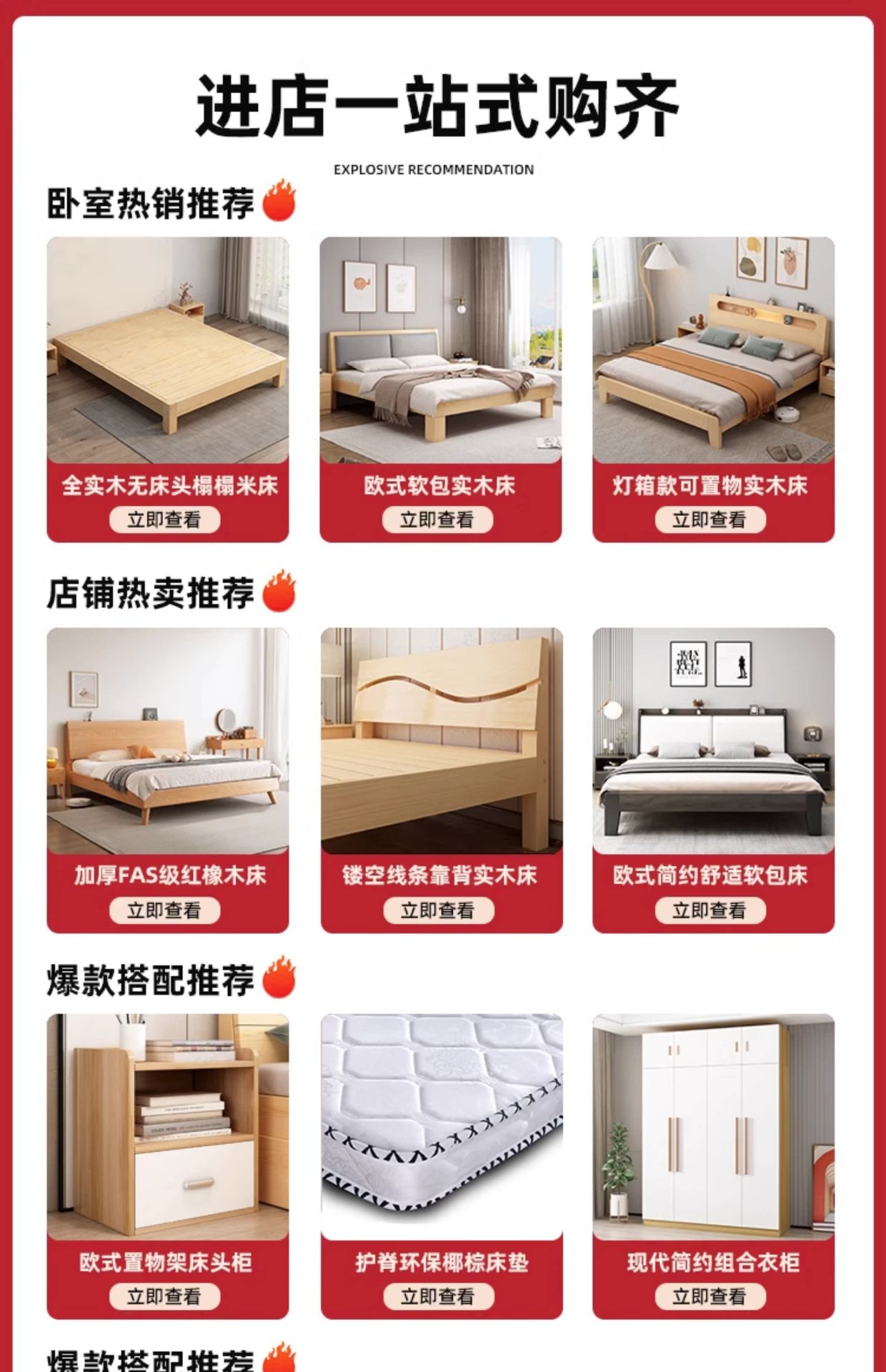 实木床1.5米床架双人床经济型现代简约1.8出租房简易单人床1.2m全스토어 가기
