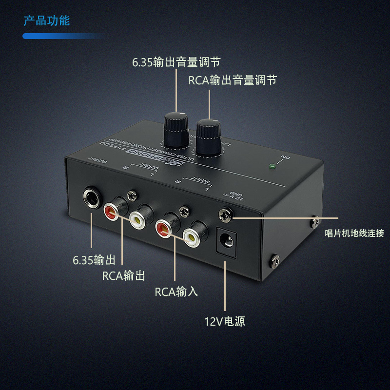 PP500 레코드 플레이어 사전 증폭기 비닐 턴테이블 증폭기 사전 노래 다이얼 볼륨 제어