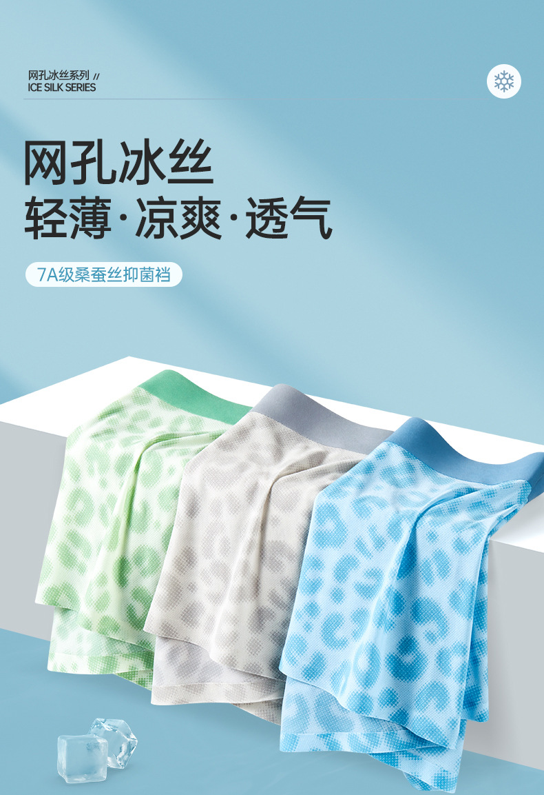 초박형 아이스 실크 남성 속옷 여름 통기성 빠른 건조 복서 나일론 인쇄 메쉬 섹시한 복서 도매